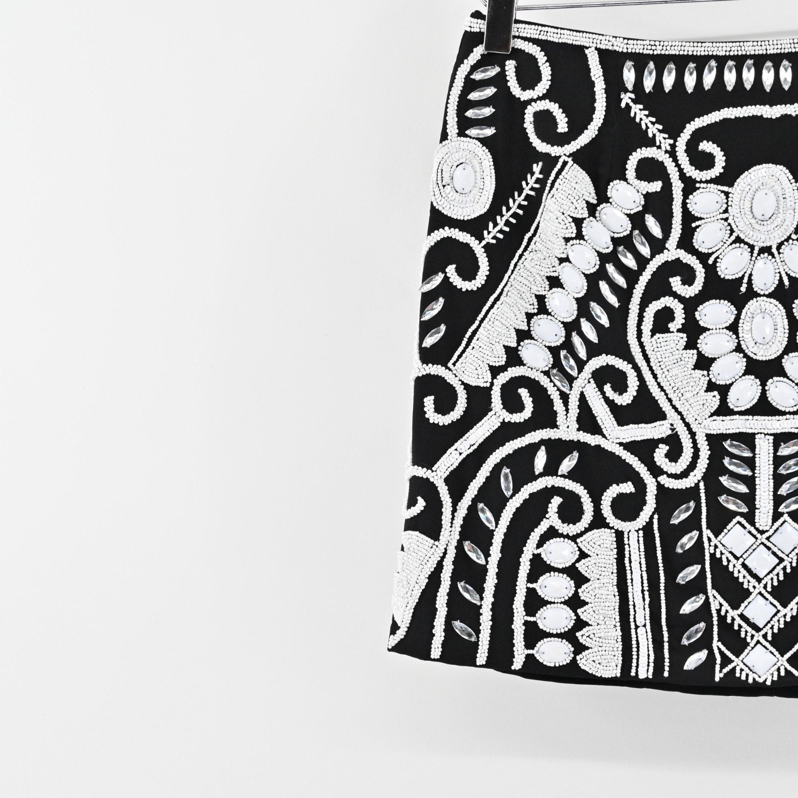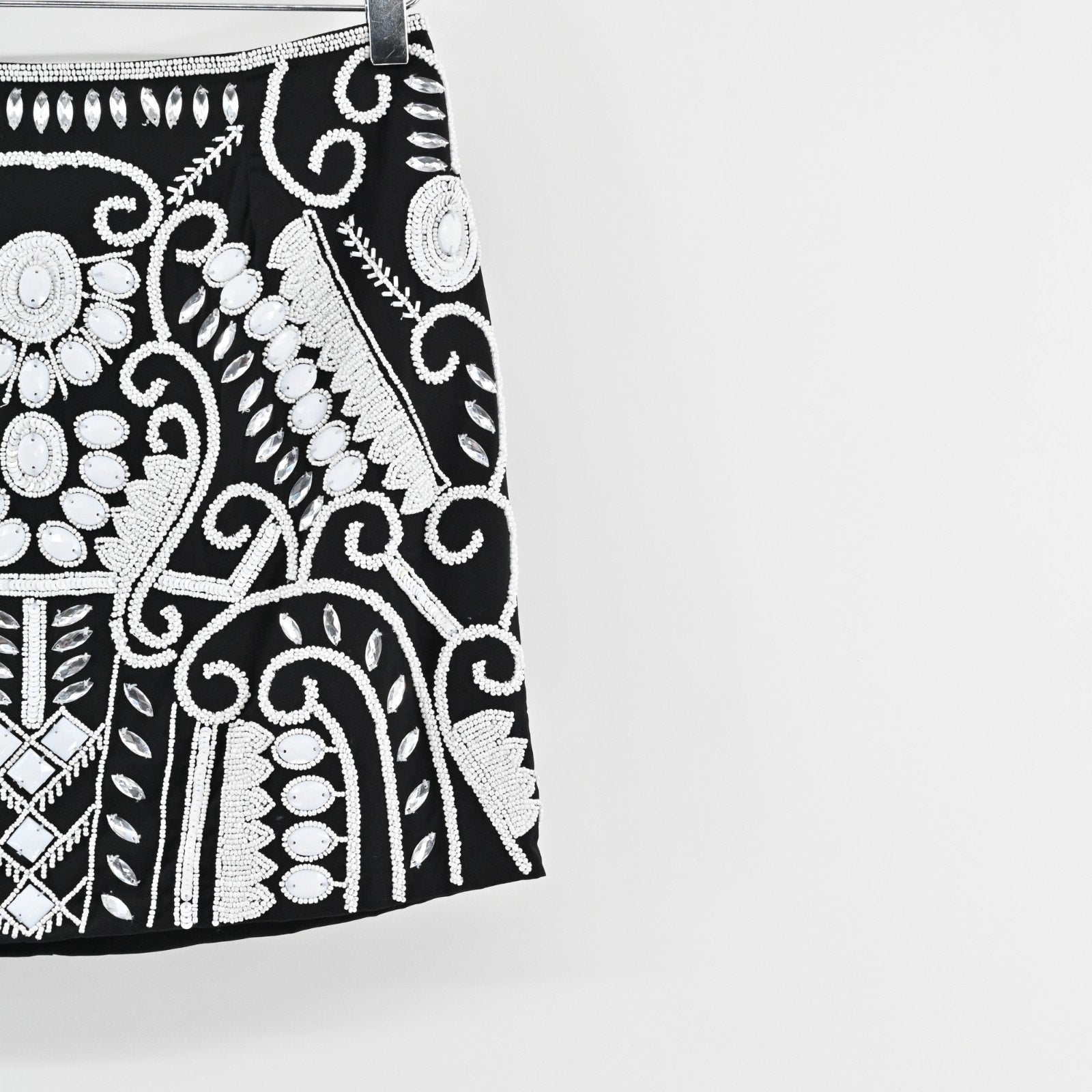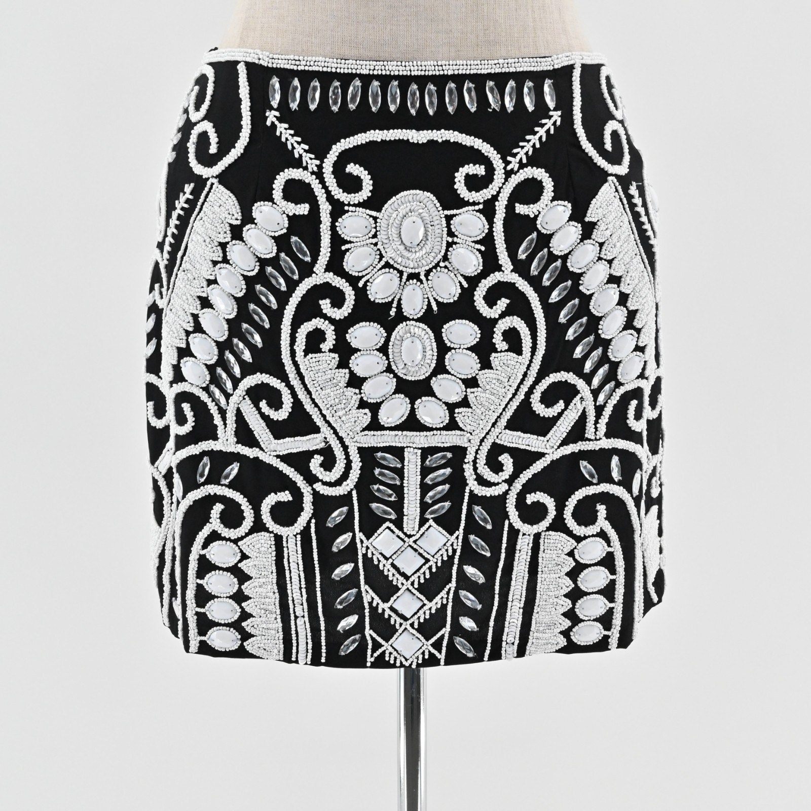 Alexis Womens Beaded Mini Skirt Size S Black White Rhinestone Embellished Luxe