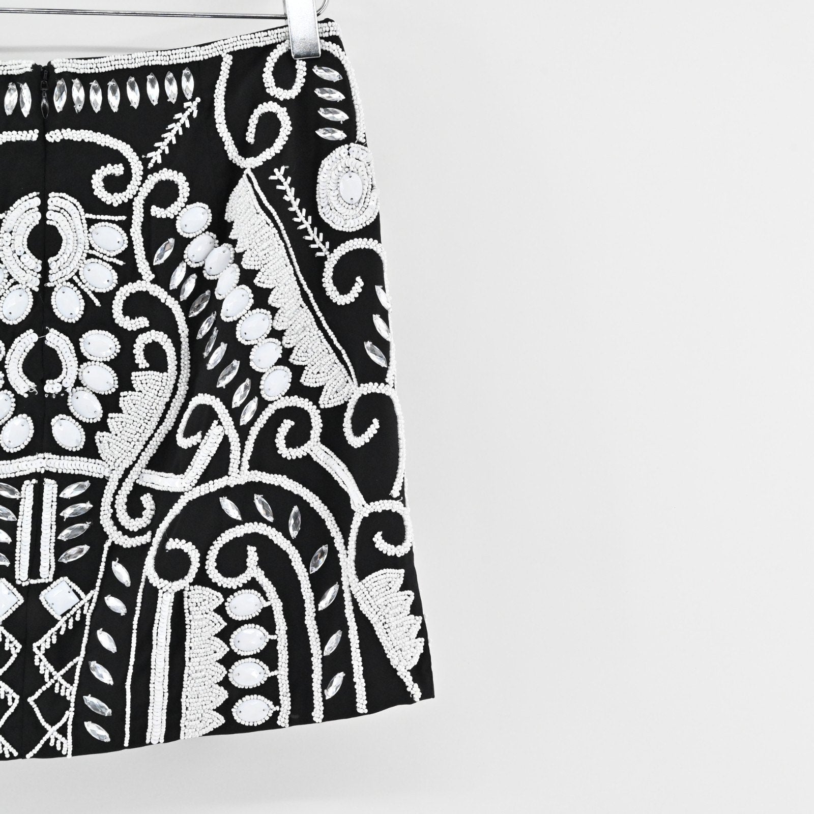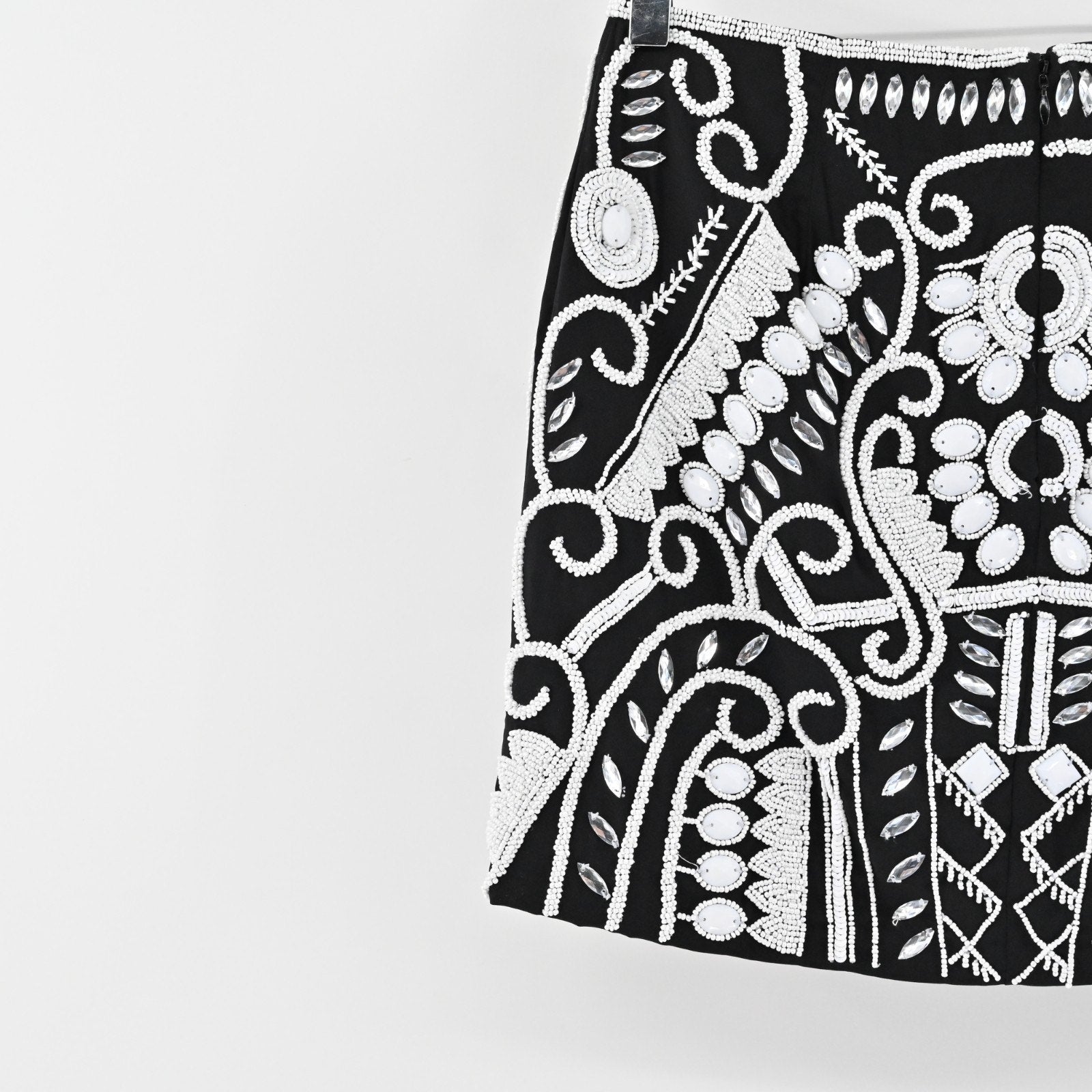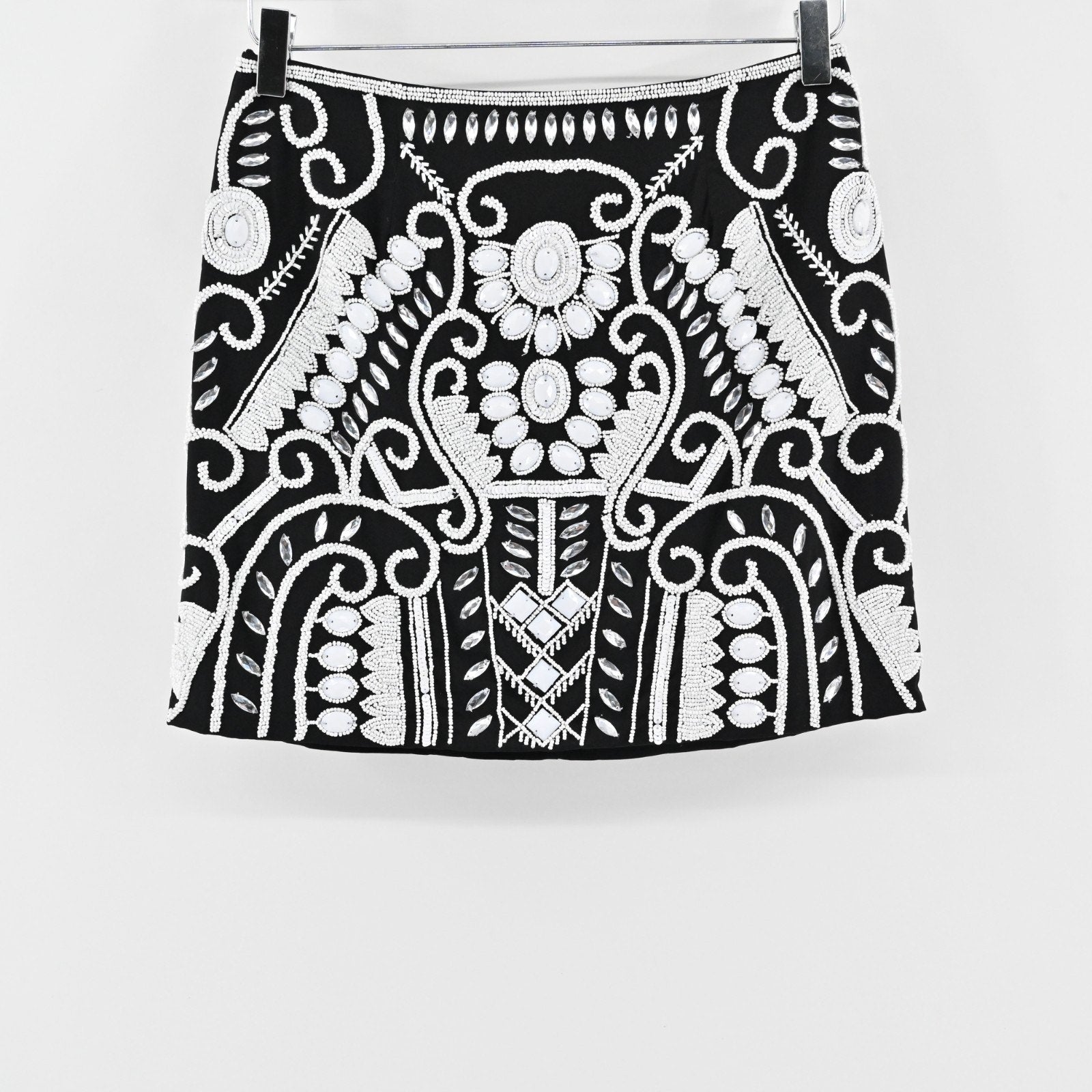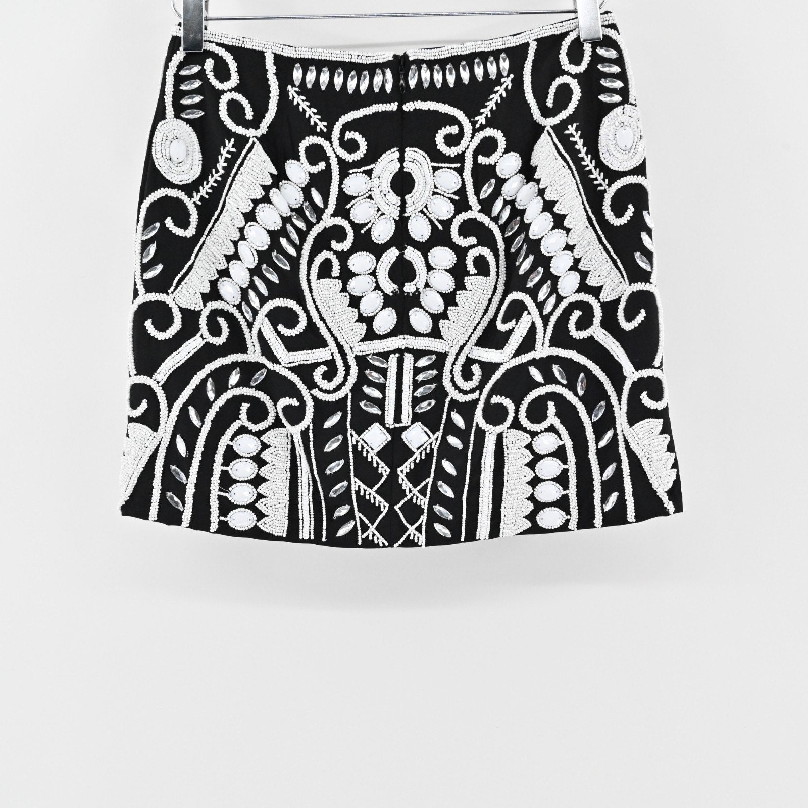 Alexis Womens Beaded Mini Skirt Size S Black White Rhinestone Embellished Luxe