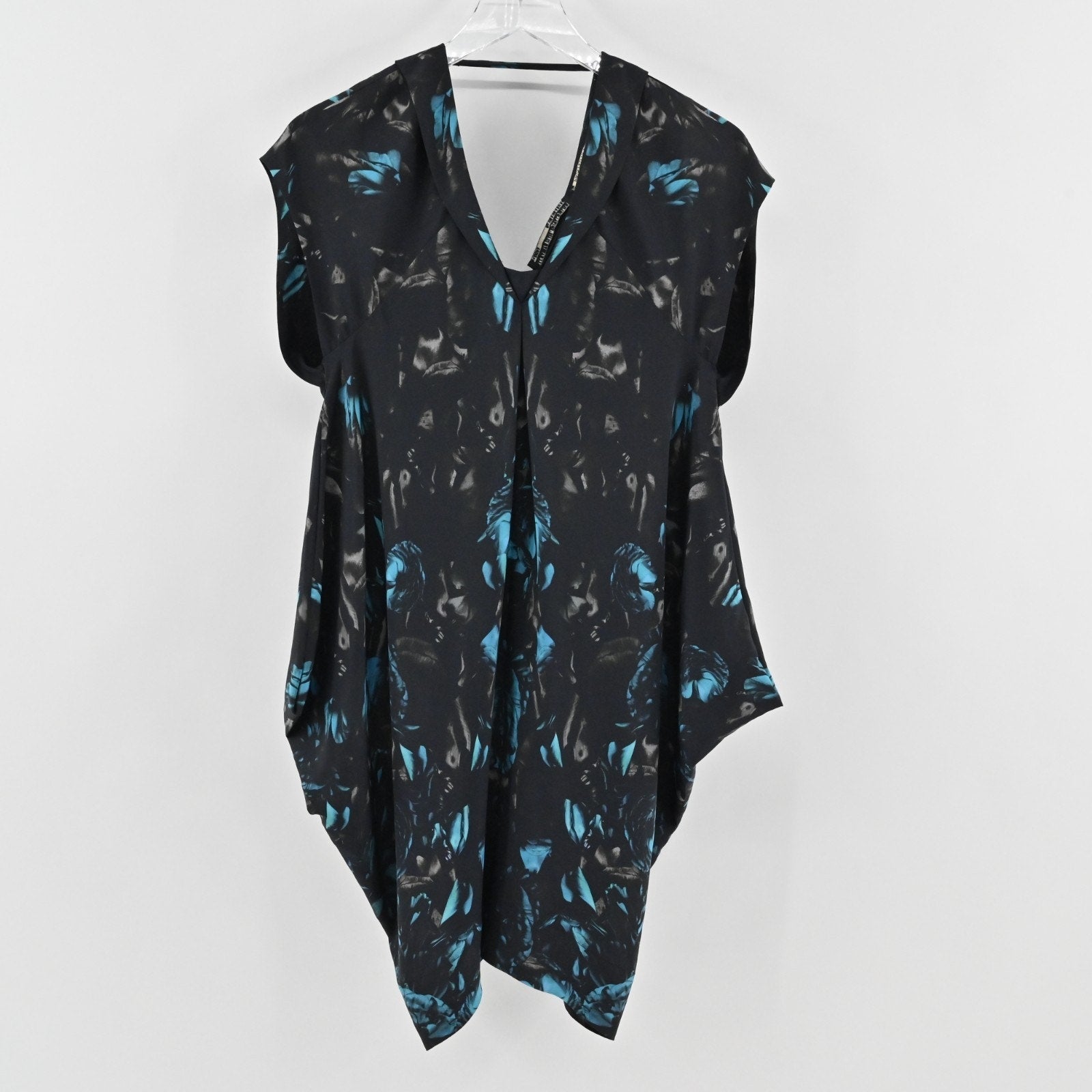 Allsaints Opium Oriana Dress Size 4 Blue Black Abstract Print Asymmetric Mini