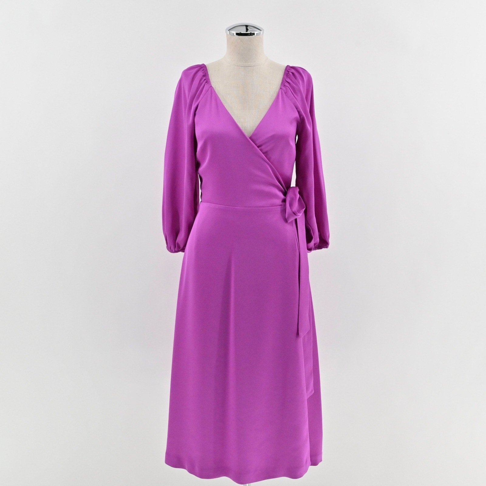 Ann Taylor Purple Wrap Midi Dress Size 0P Romantic Wedding Guest Lilac Feminine