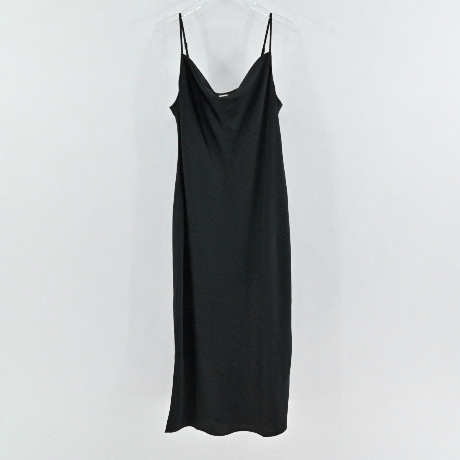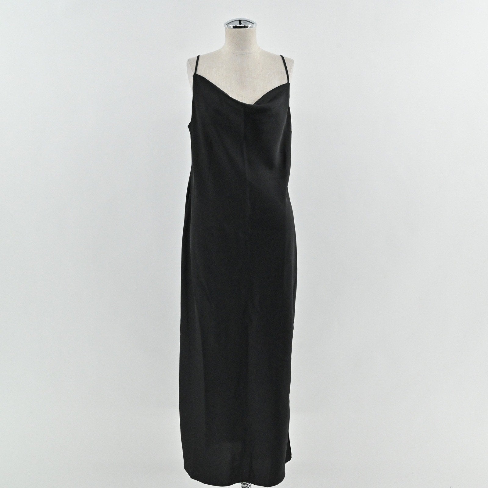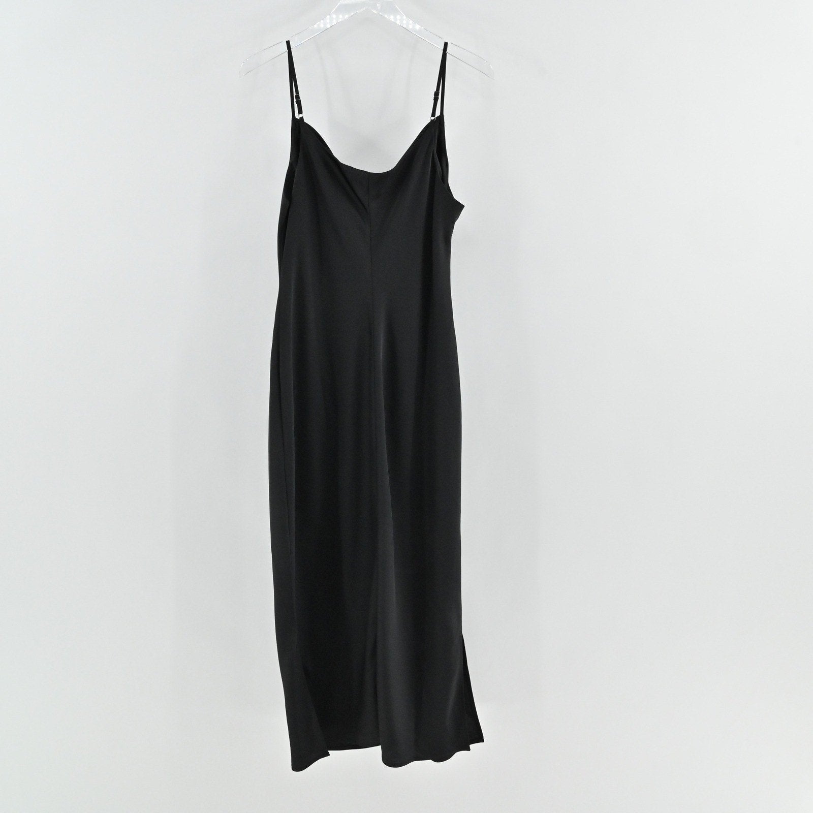 Anne Klein Midi Slip Dress Sz 12 Black Whimsigoth Dark Romantic Satin Cowl Neck