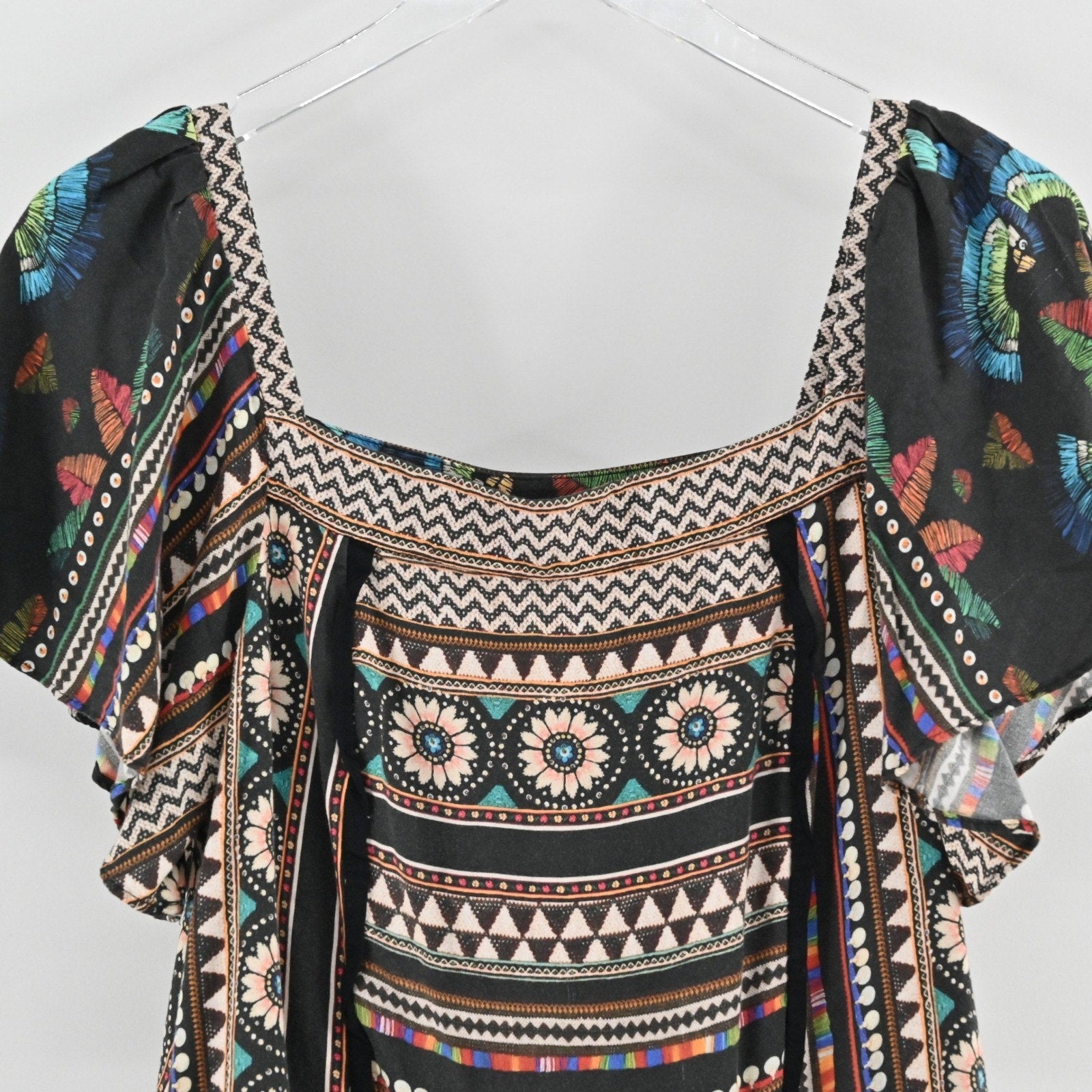 Anthropologie Farm Rio Nicolasa Blouse Size L Flutter Sleeve Boho Butterfly Top