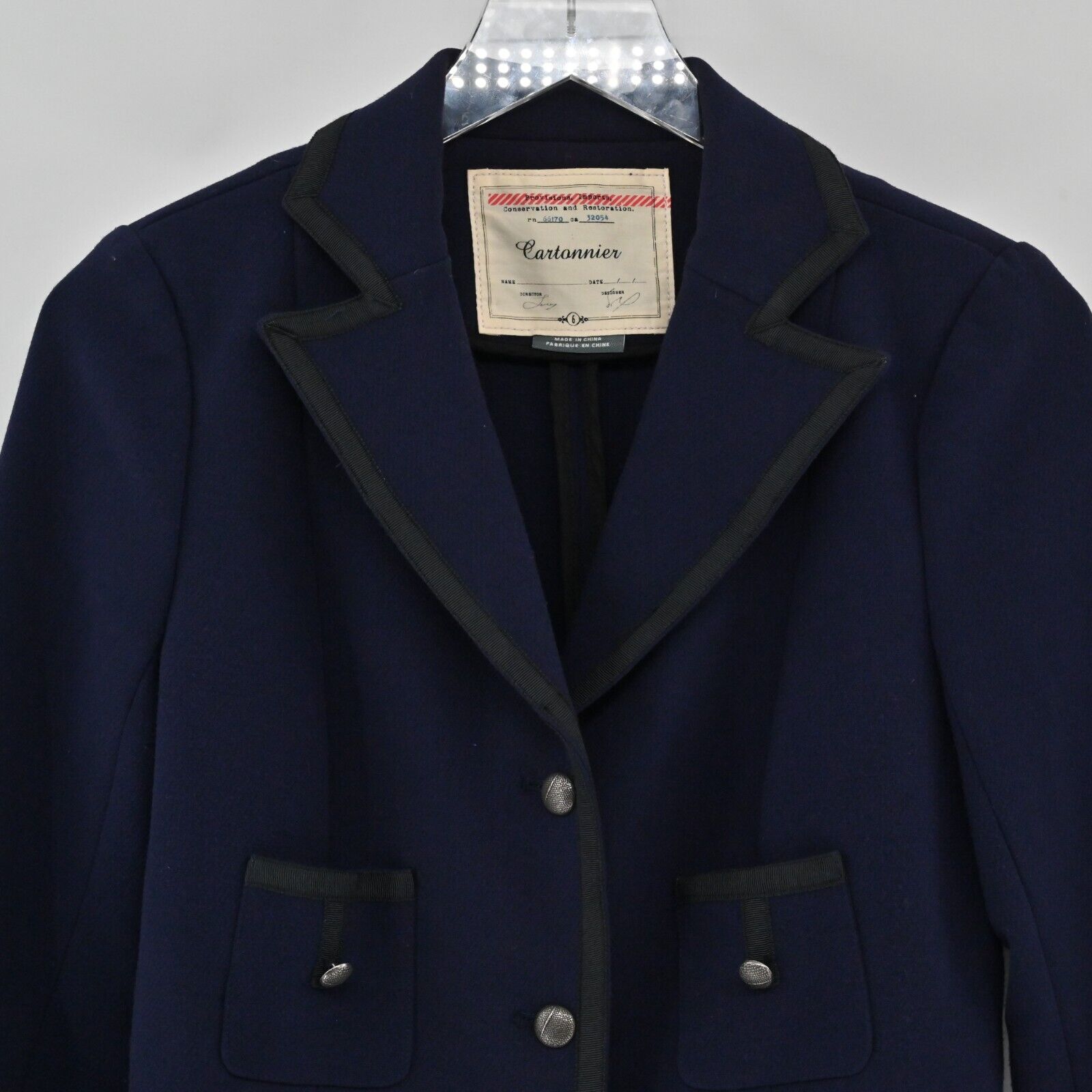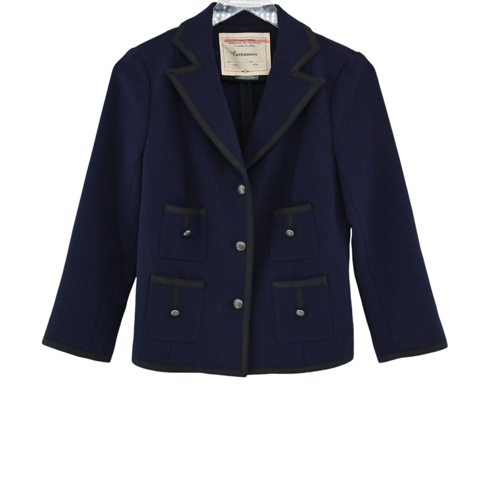 ANTHROPOLOGIE Jacket Womens Size 6 Cartonnier Navy Black Trim Pocket Long Sleeve
