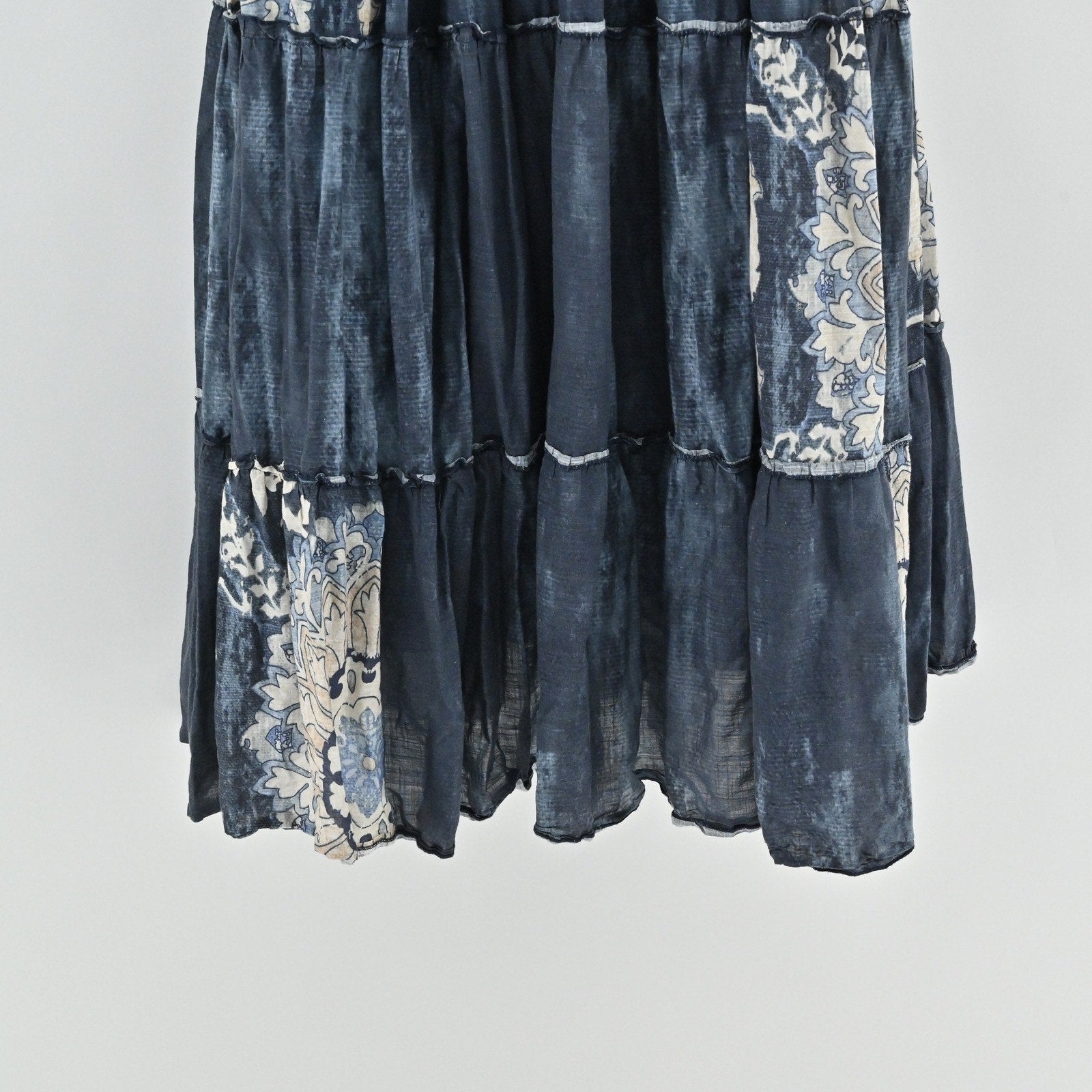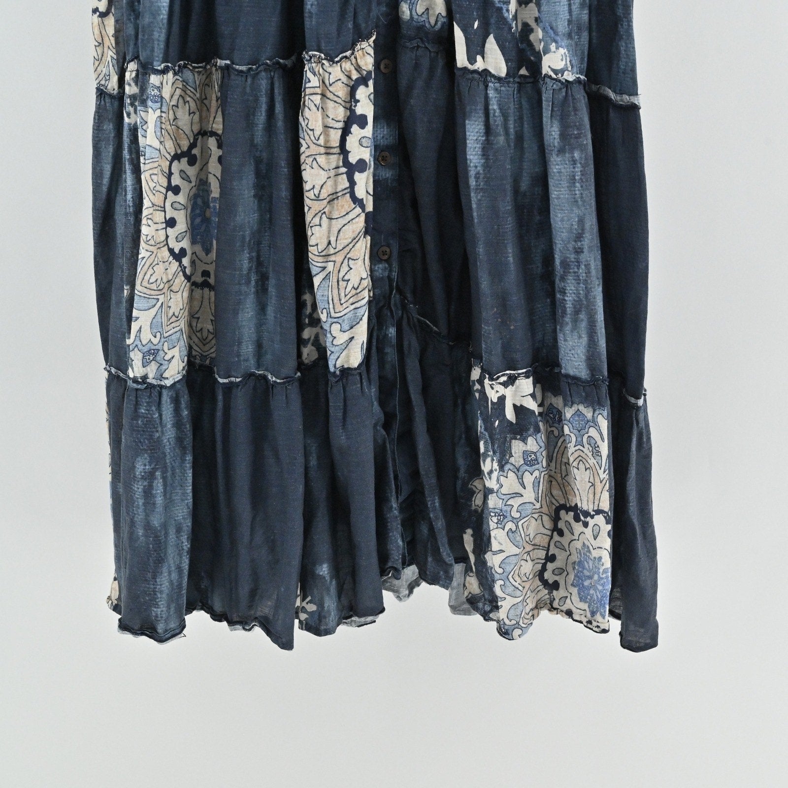 Anthropologie Let Me Be Puff Sleeve Patchwork Shirt Dress Sz XL Tiered Midi Boho