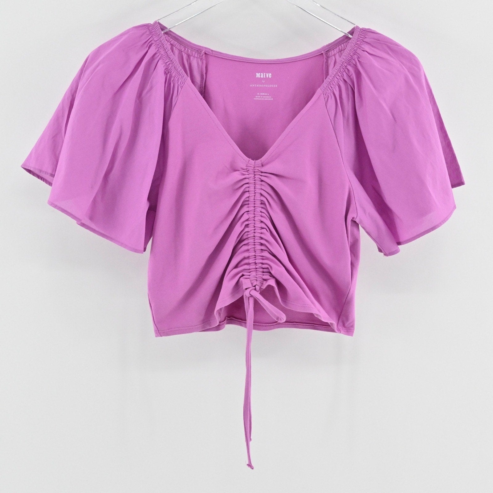 Anthropologie Maeve Womens Flutter Sleeve Top Size XS Lilac Coquette Blouse