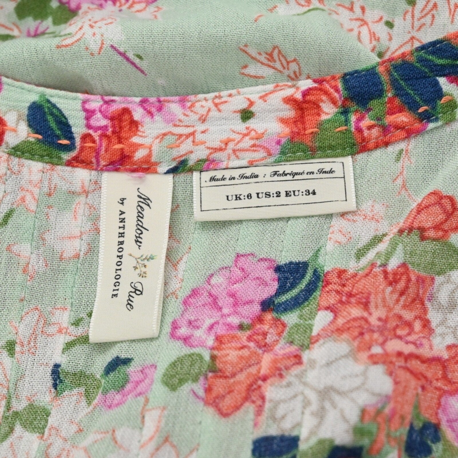 Anthropologie MEADOW RUE Womens Top Size 2 Whimsical Sleeveless Green Floral
