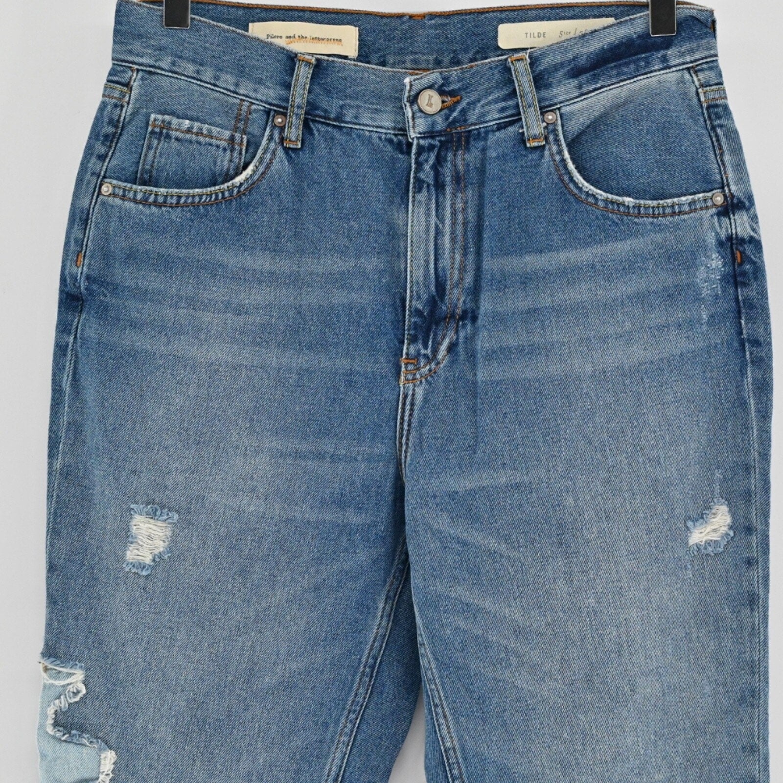 ANTHROPOLOGIE Pilcro Letterpress Womens Tilde Jeans Sz 28 High Rise Boho Patch
