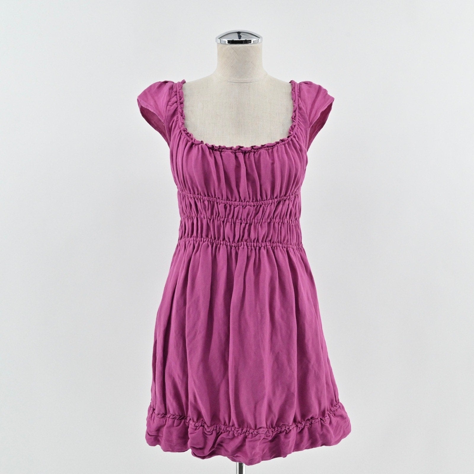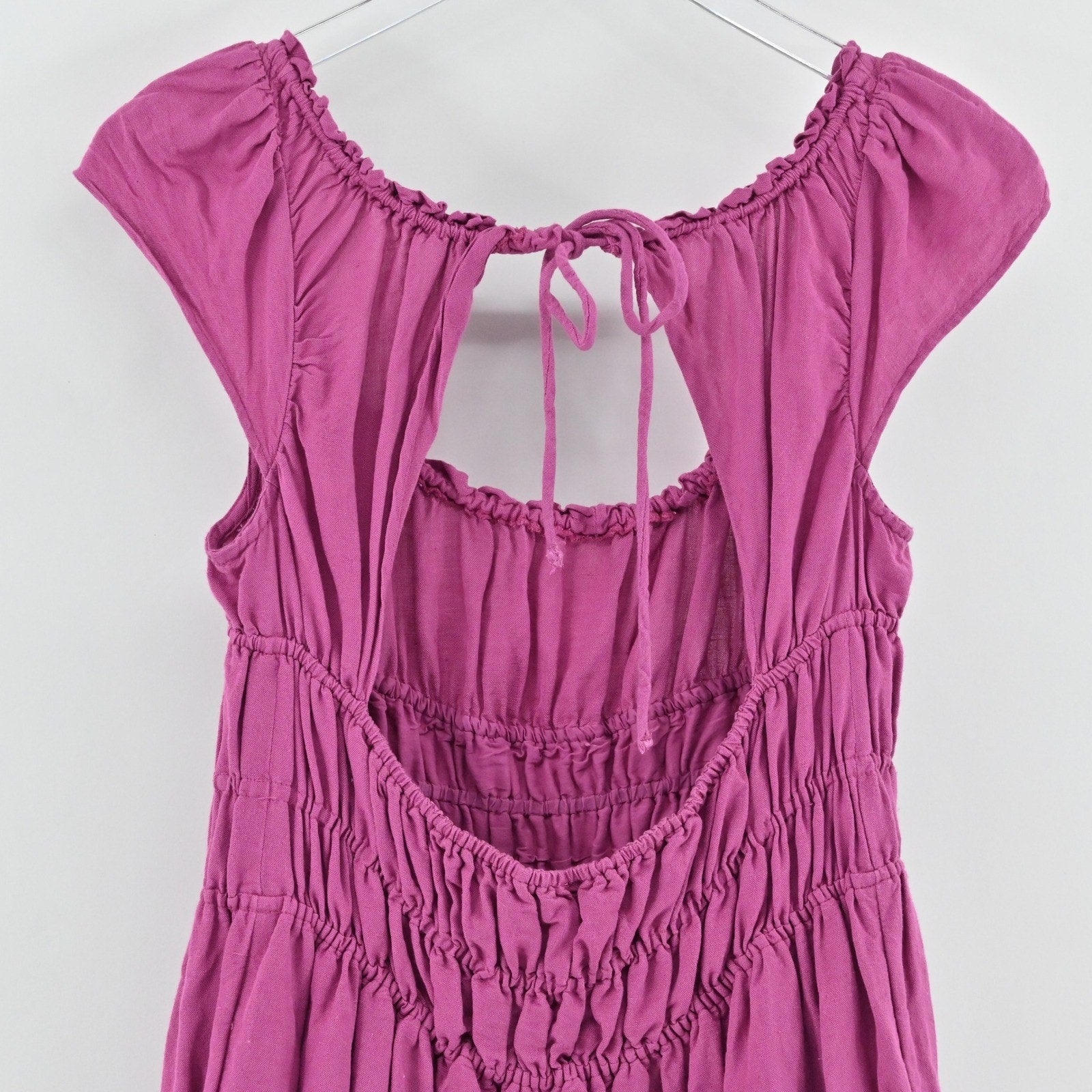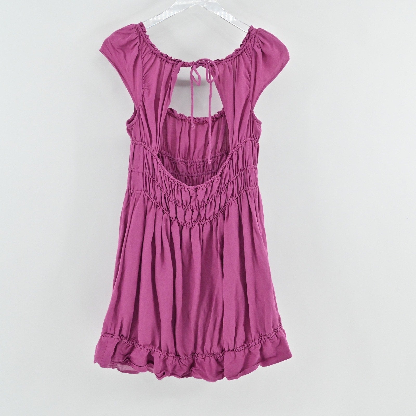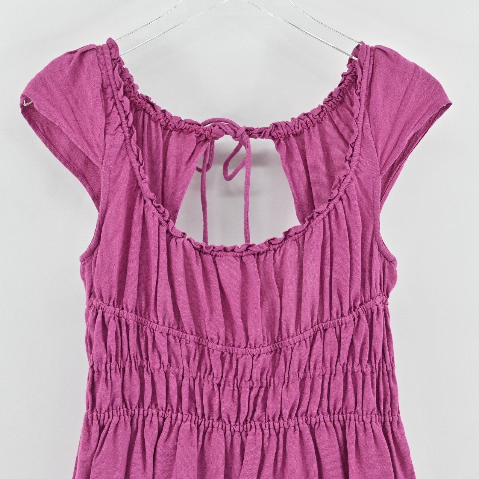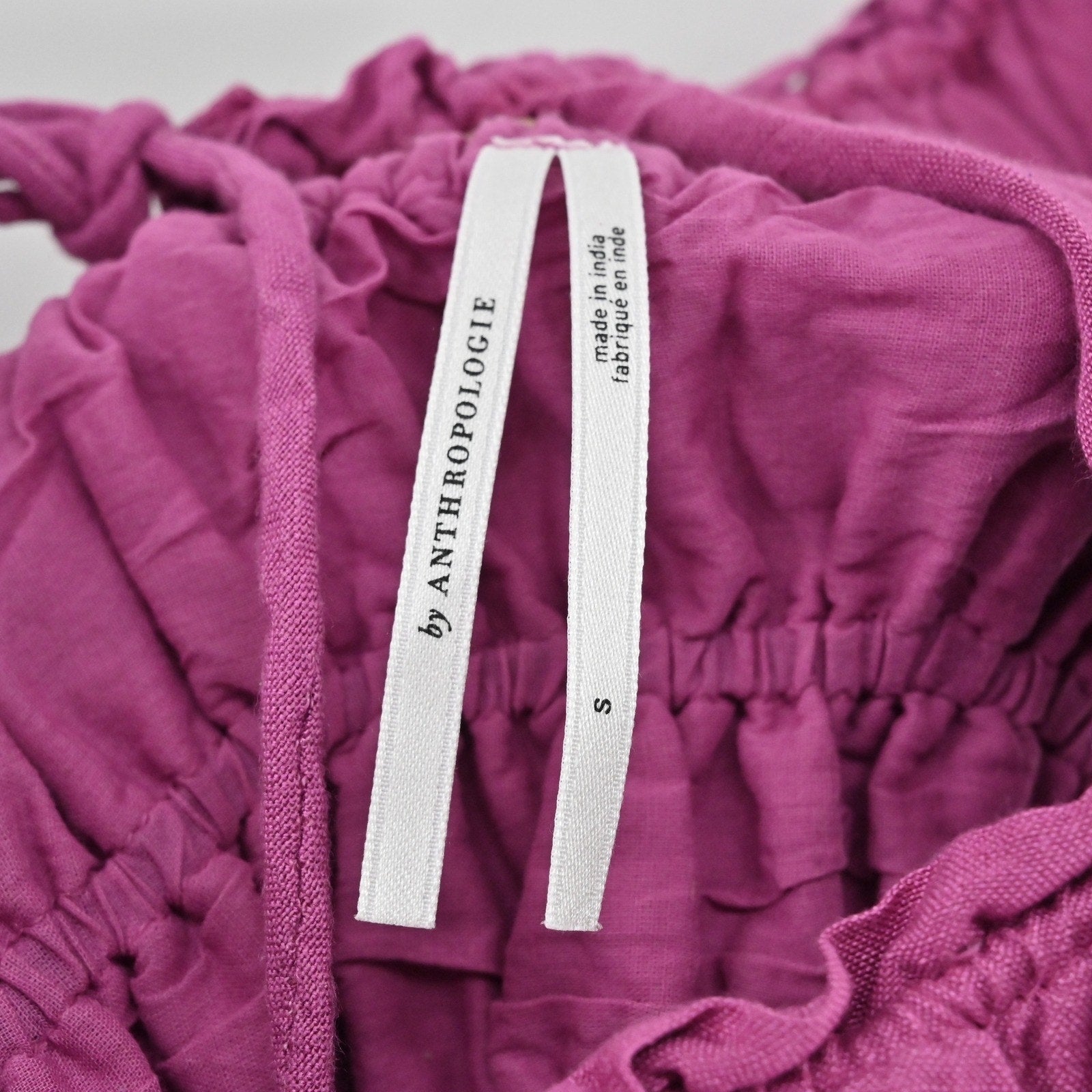 Anthropologie Smocked Waist Mini Dress Dress Size S Linen Tie Back Ruffle Mini