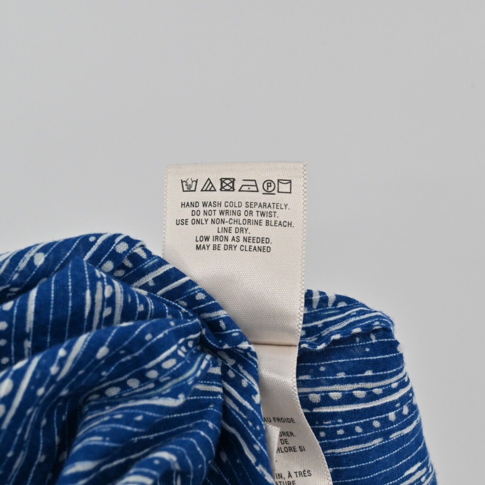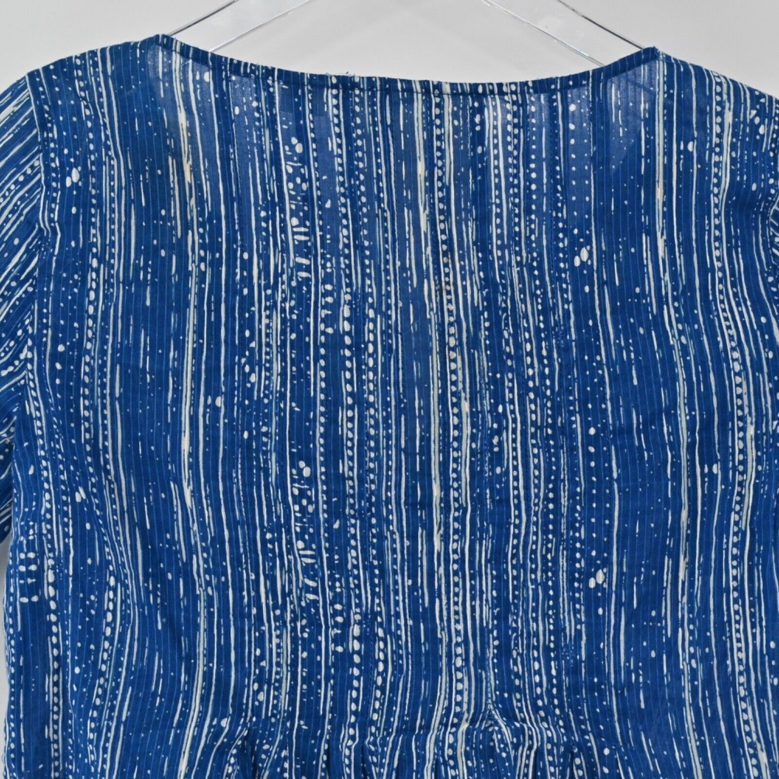 MAEVE by ANTHROPOLOGIE Top Women's Size 0 Blue & White Stripe Polka Dot Print 100% Cotton Split V-neck Short Sleeve Pleated Orchid Island Pullover Bohemian Boho Beach Vacation Retro