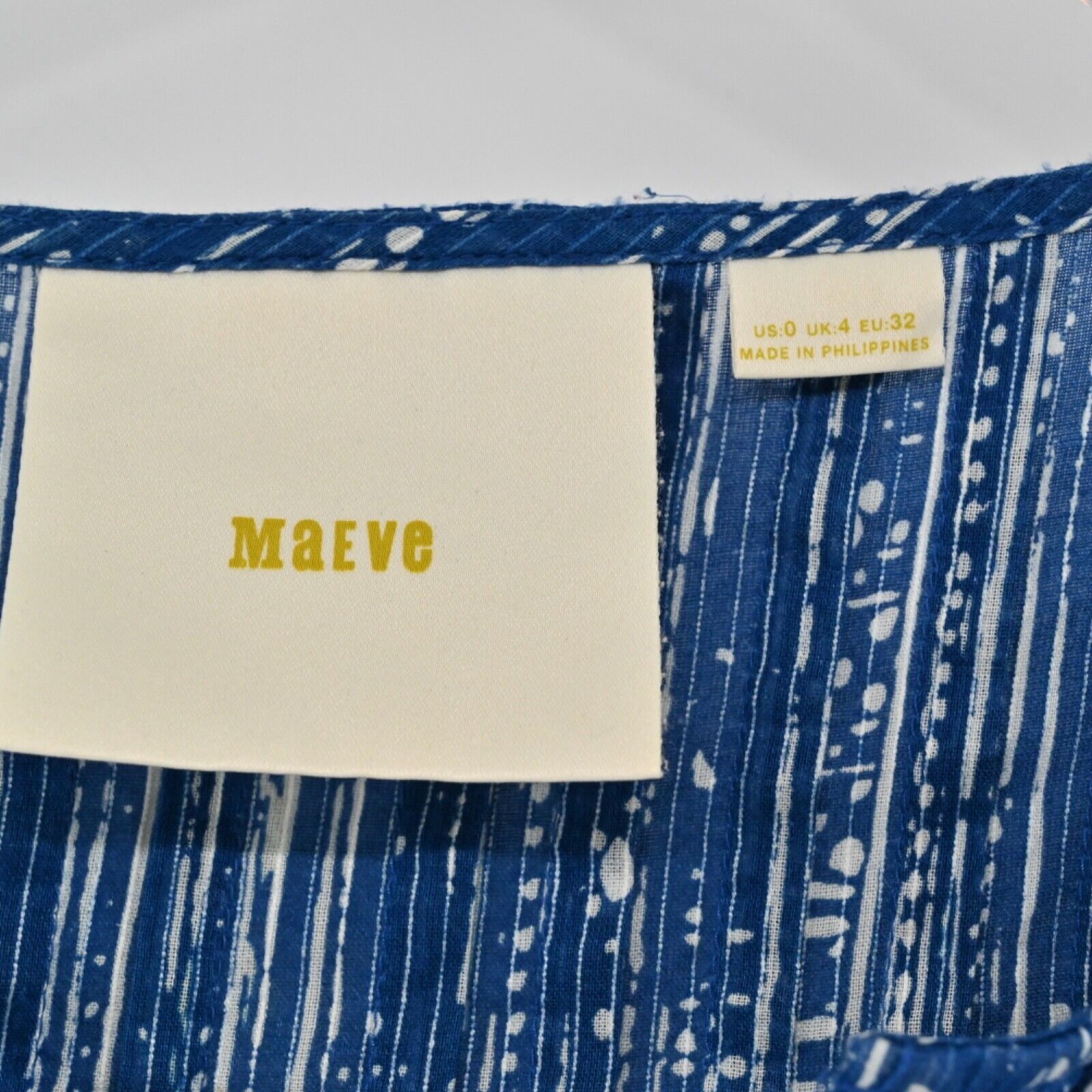 ANTHROPOLOGIE Top Womens Size 0 MAEVE Blue Stripe 100% Cotton Orchid Island Boho