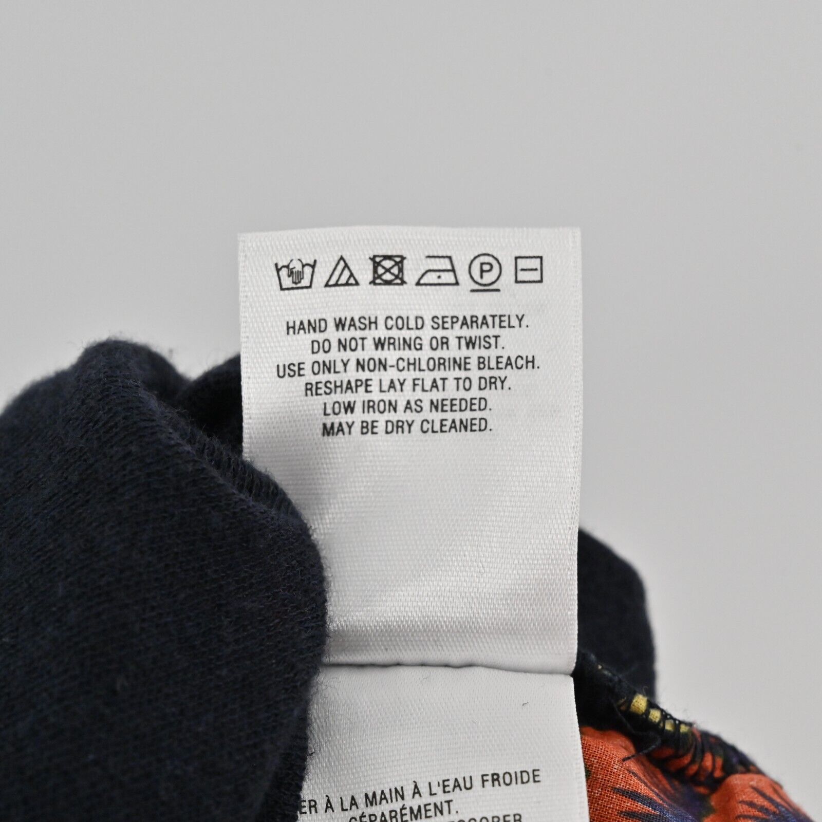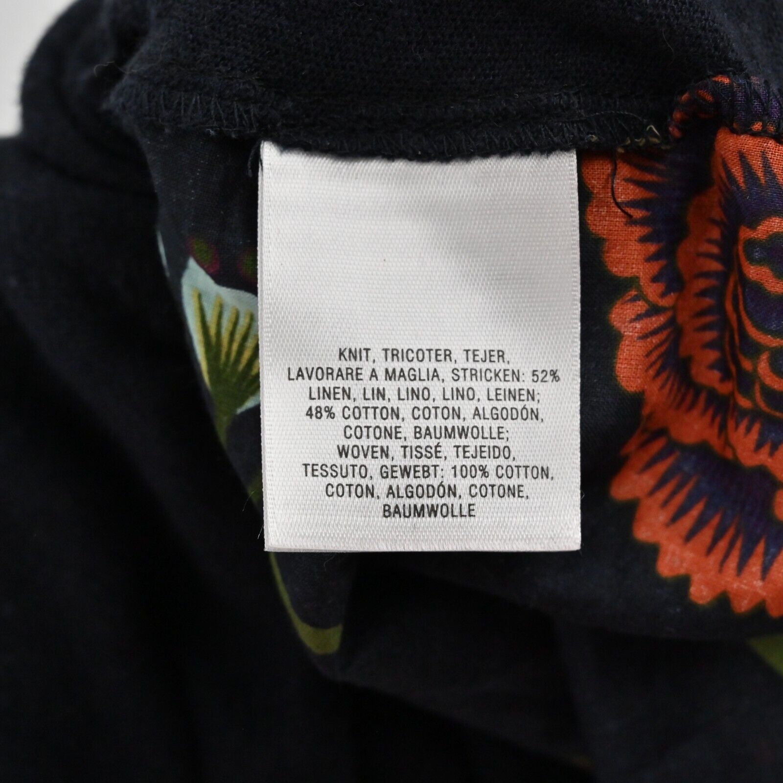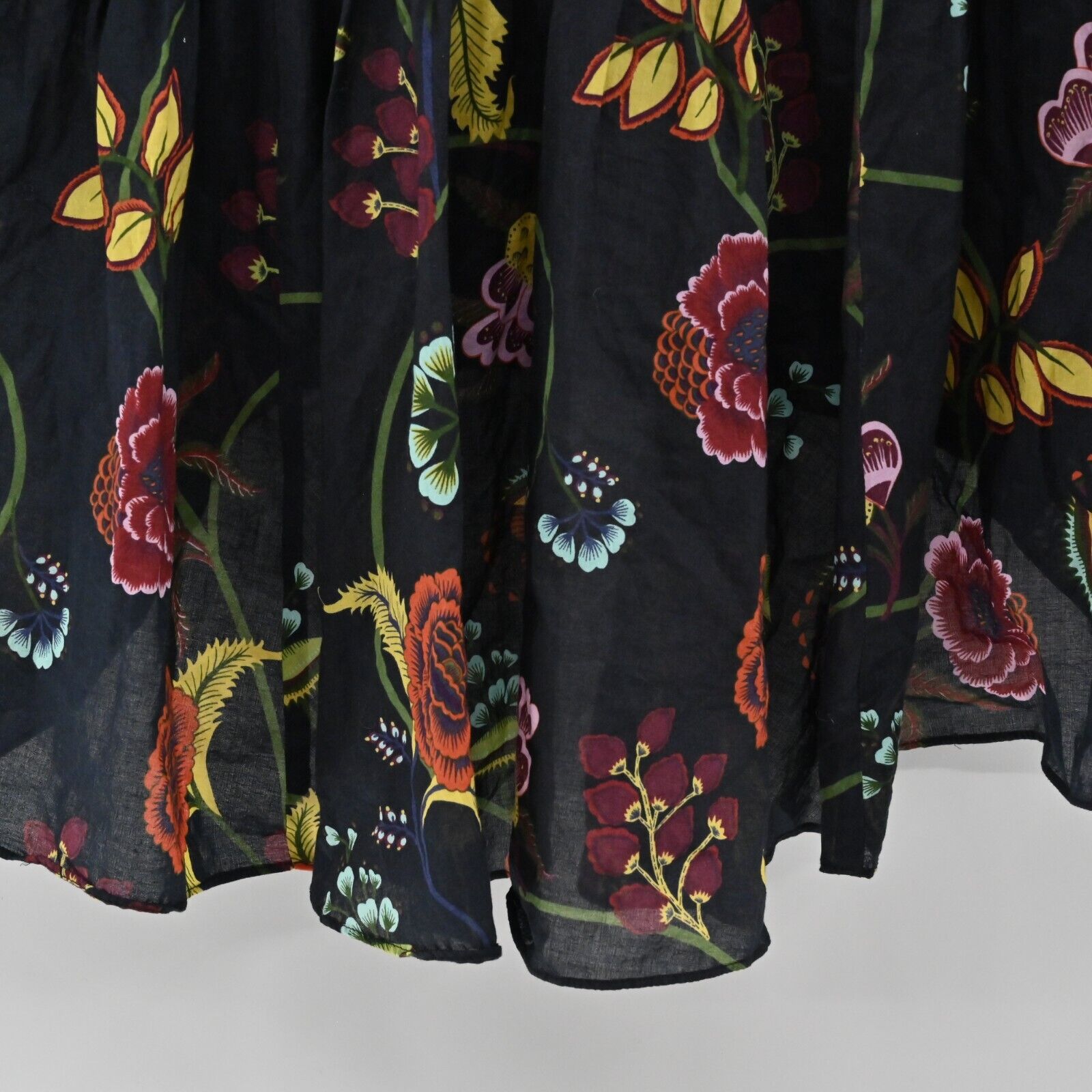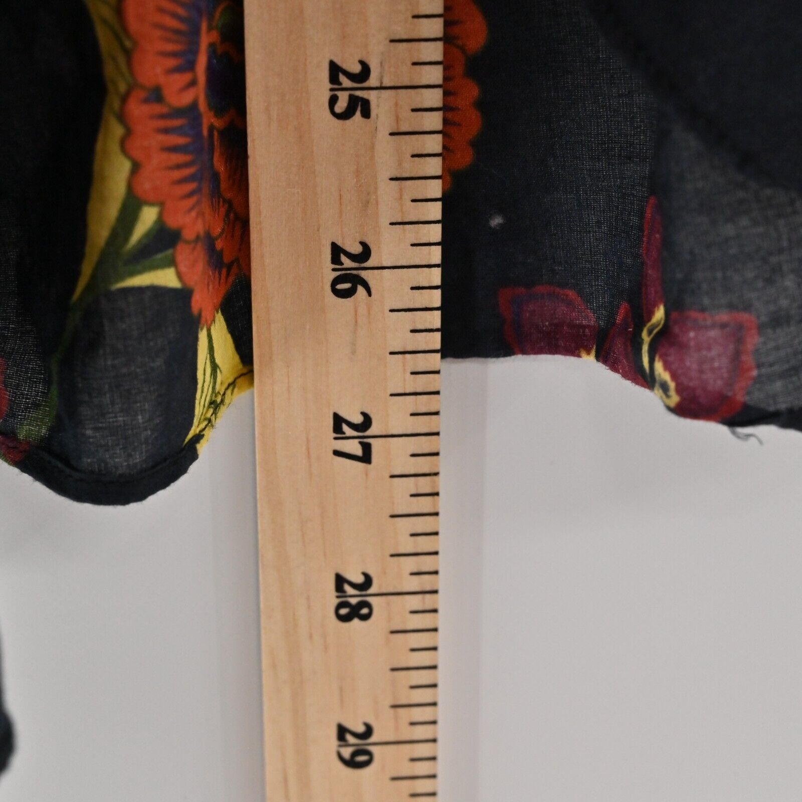ANTHROPOLOGIE Top Women's Size Small Deletta Silver Fern Floral Navy High Low Peplum Contrast Blouse Linen Blend Flowy Relaxed Fit Boho BohoChic Bohemian Coastal Vacation Casual Chic Flower Short Sleeve Lightweight Multicolor
