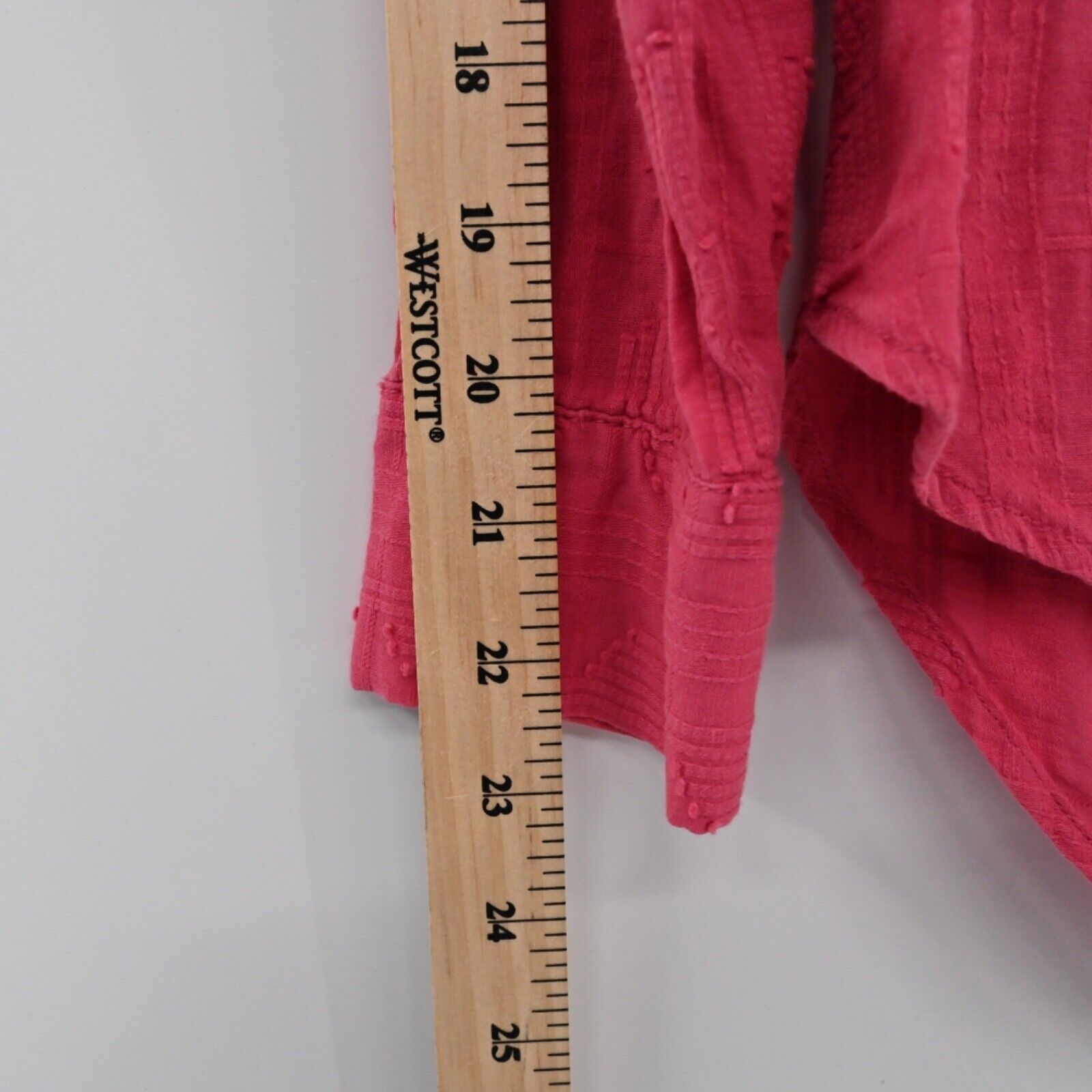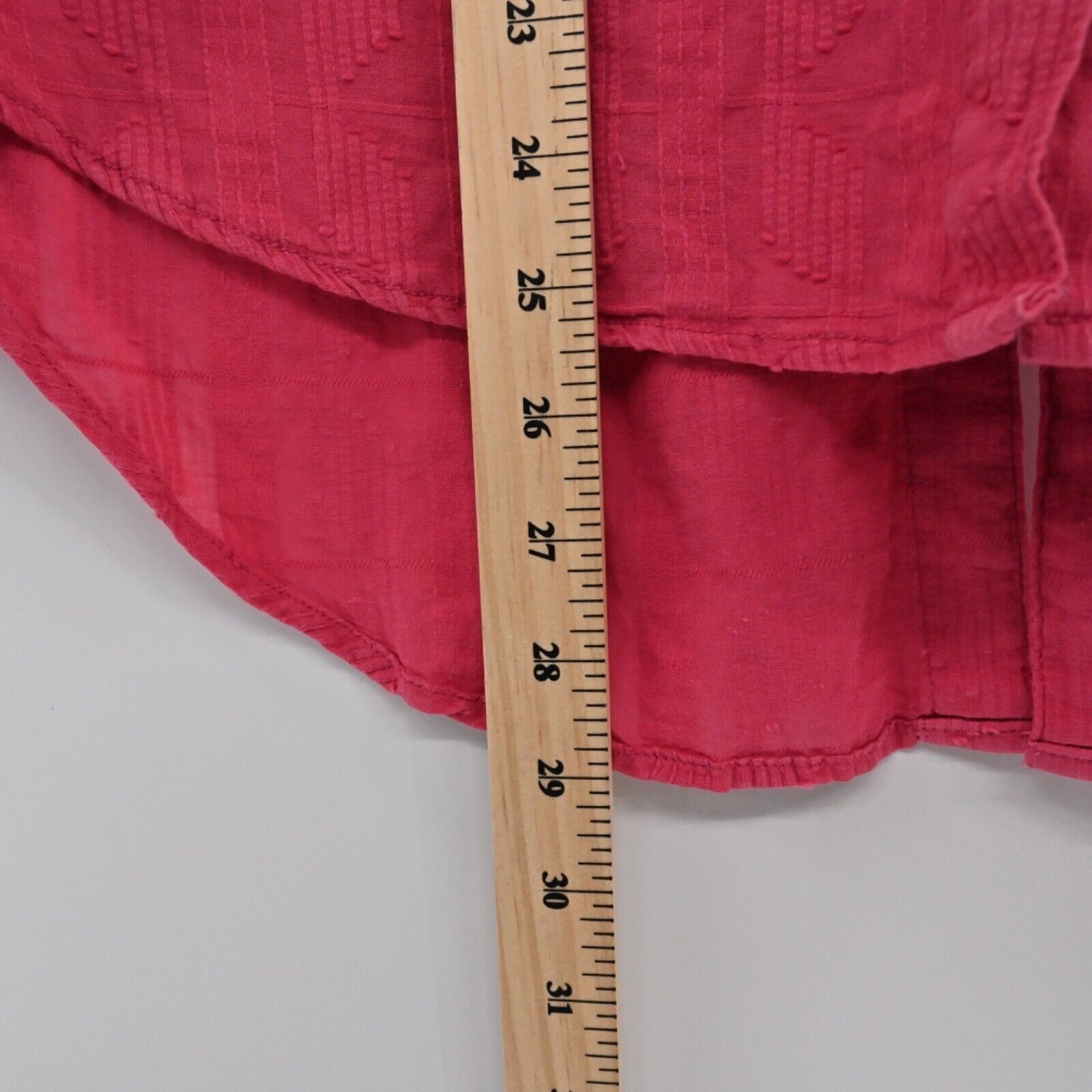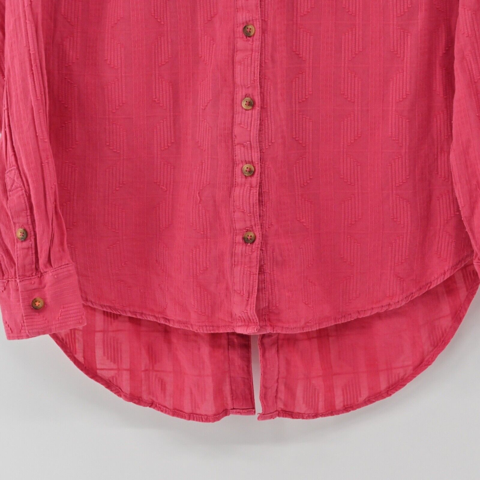 ANTHROPOLOGIE PILCRO Top Women's Size Small Pink Southwestern Texture Pattern 100% Cotton The Theresa Lace Up Back Detail Button Up Long Sleeve Button Cuff Chest Pocket Long Back Hem Bohemian Boho Western