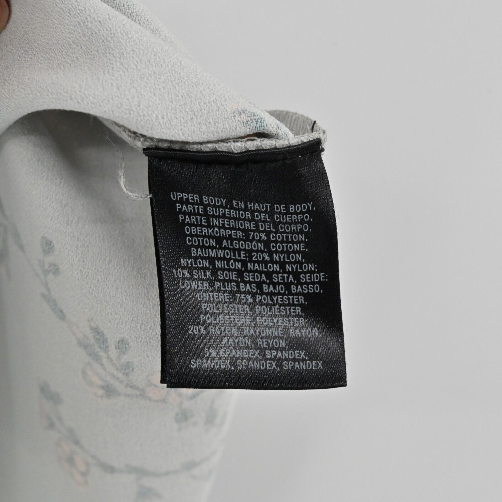 MOTH ANTHROPOLOGIE Top Women's Size XS Blouse Gardenia Multicolor Floral Grey Gray Peplum Contrast Trim Elevated Basic Casual Vacation Spring Summer Preppy Softgirl Garden Tea Party