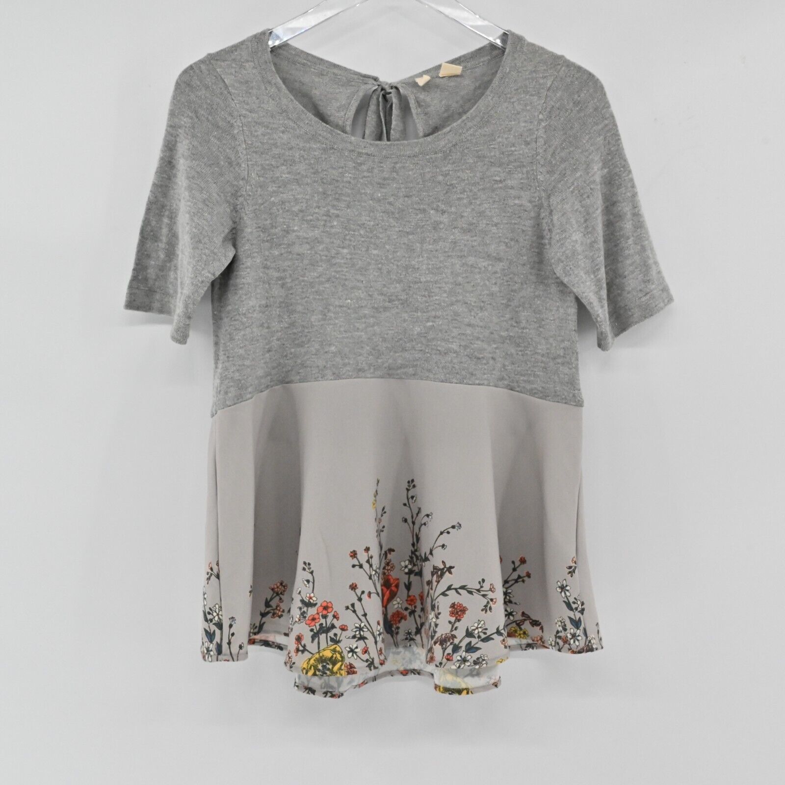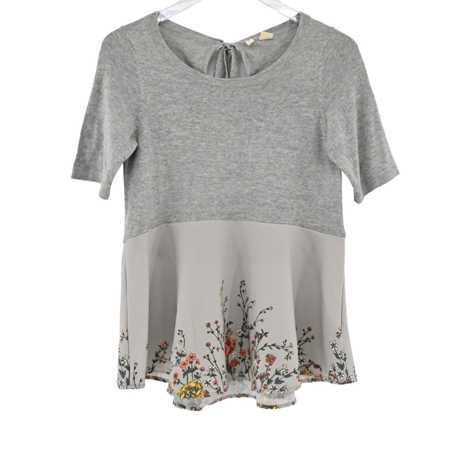 ANTHROPOLOGIE Top Womens Sz XS MOTH Blouse Gardenia Floral Grey Peplum Contrast