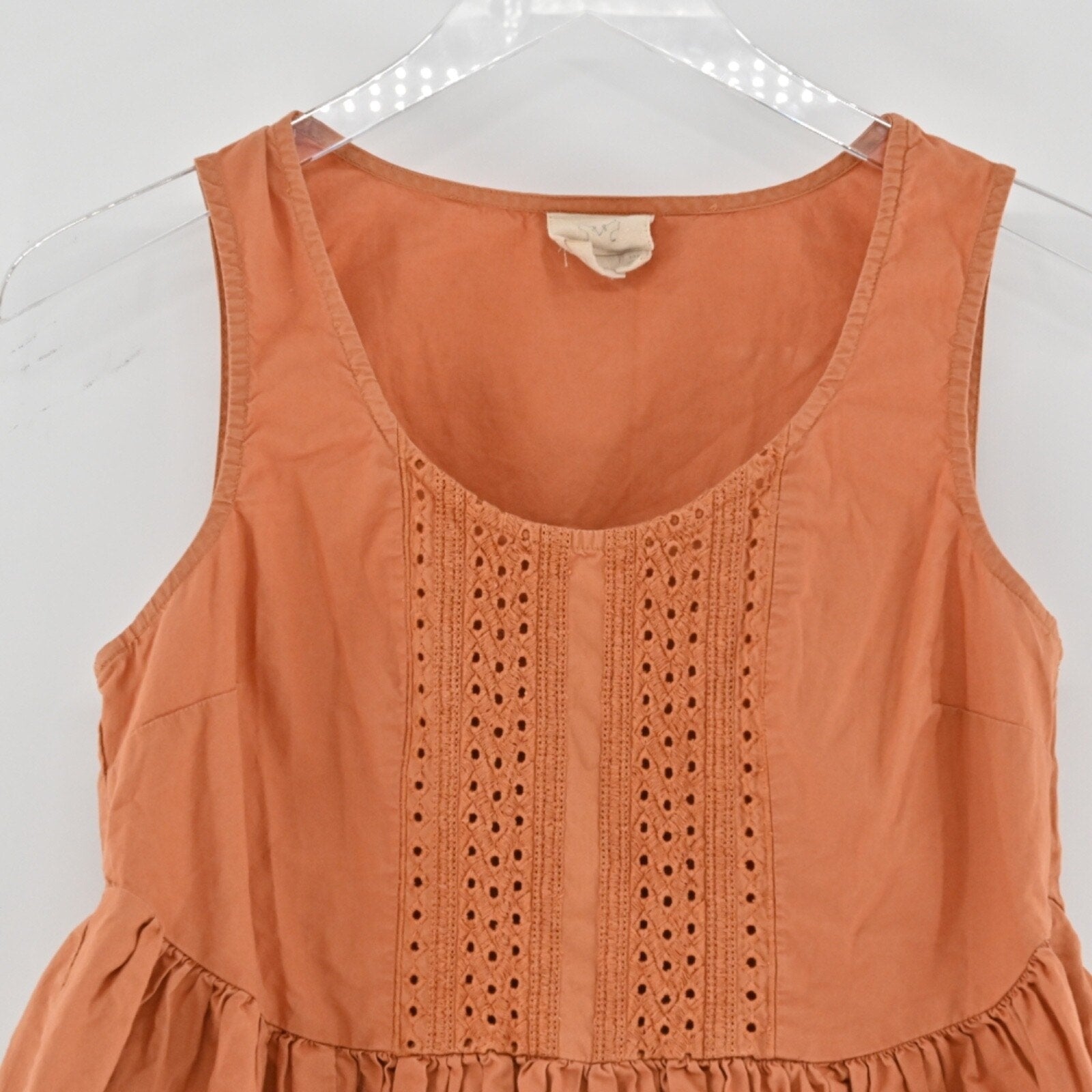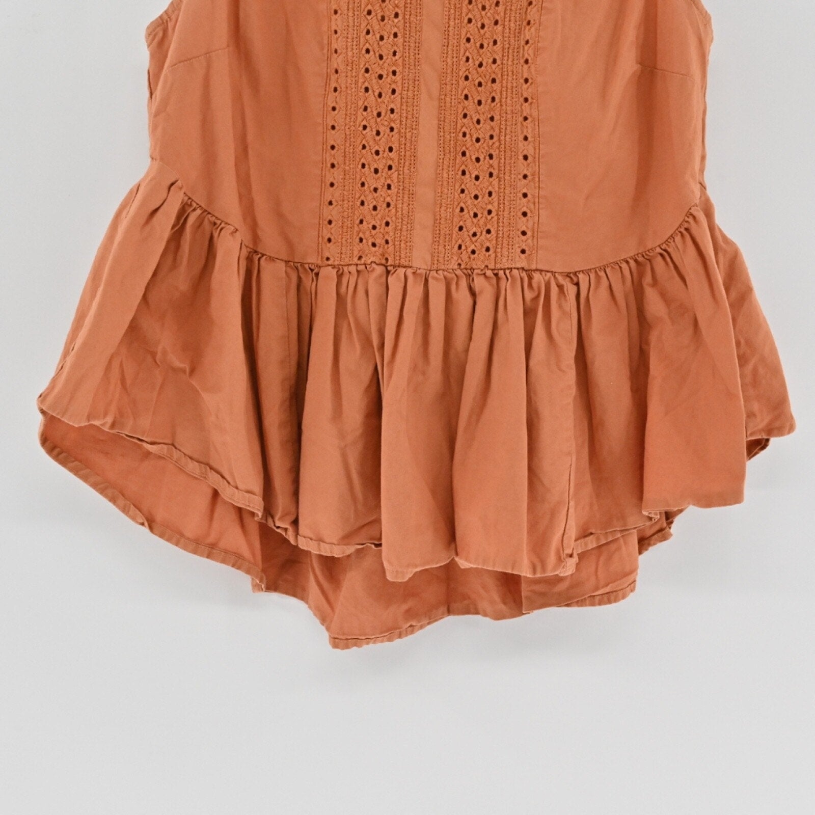 ANTHROPOLOGIE Womens Sienna Peplum Top Sz 2 Orange Boho Cotton Vanessa Virginia