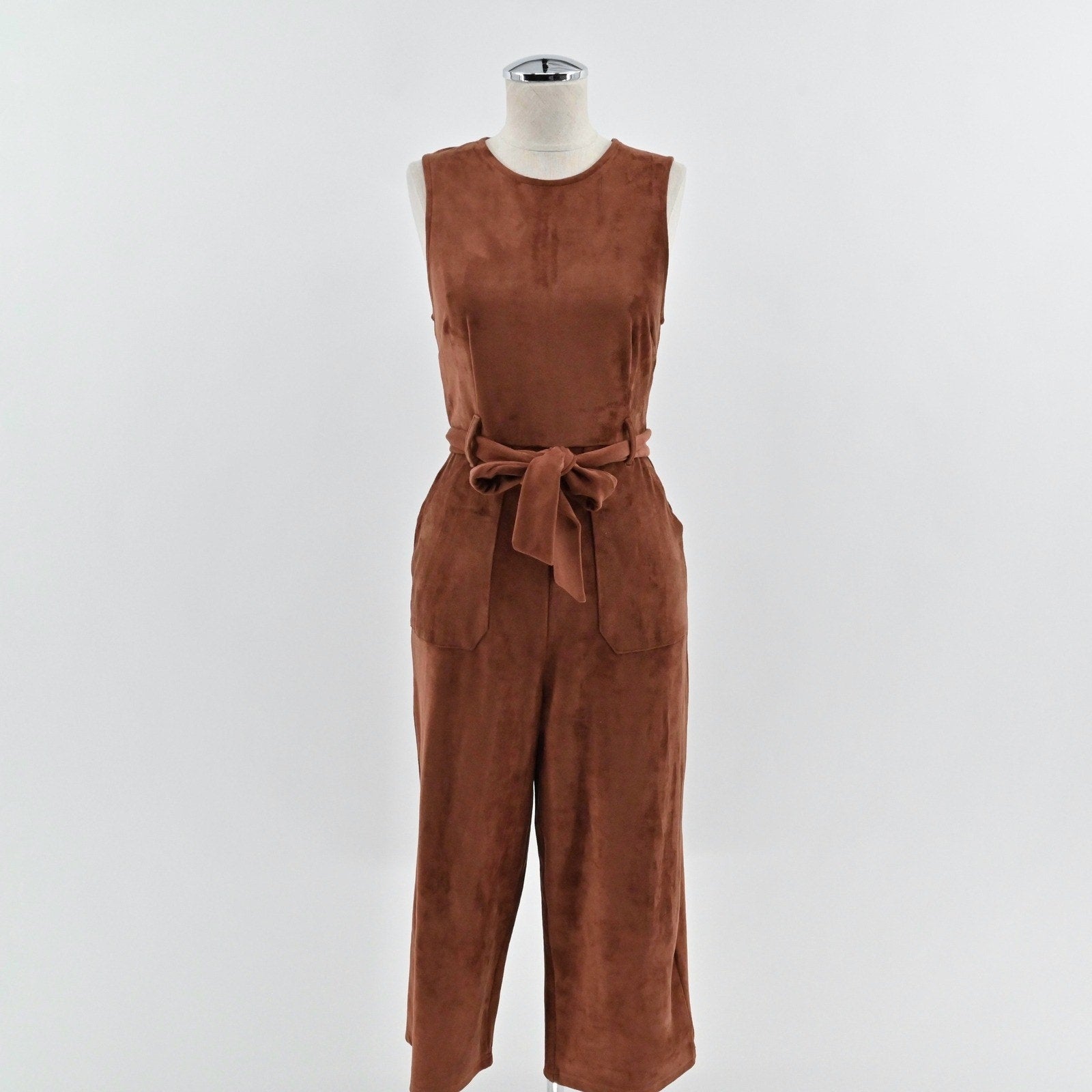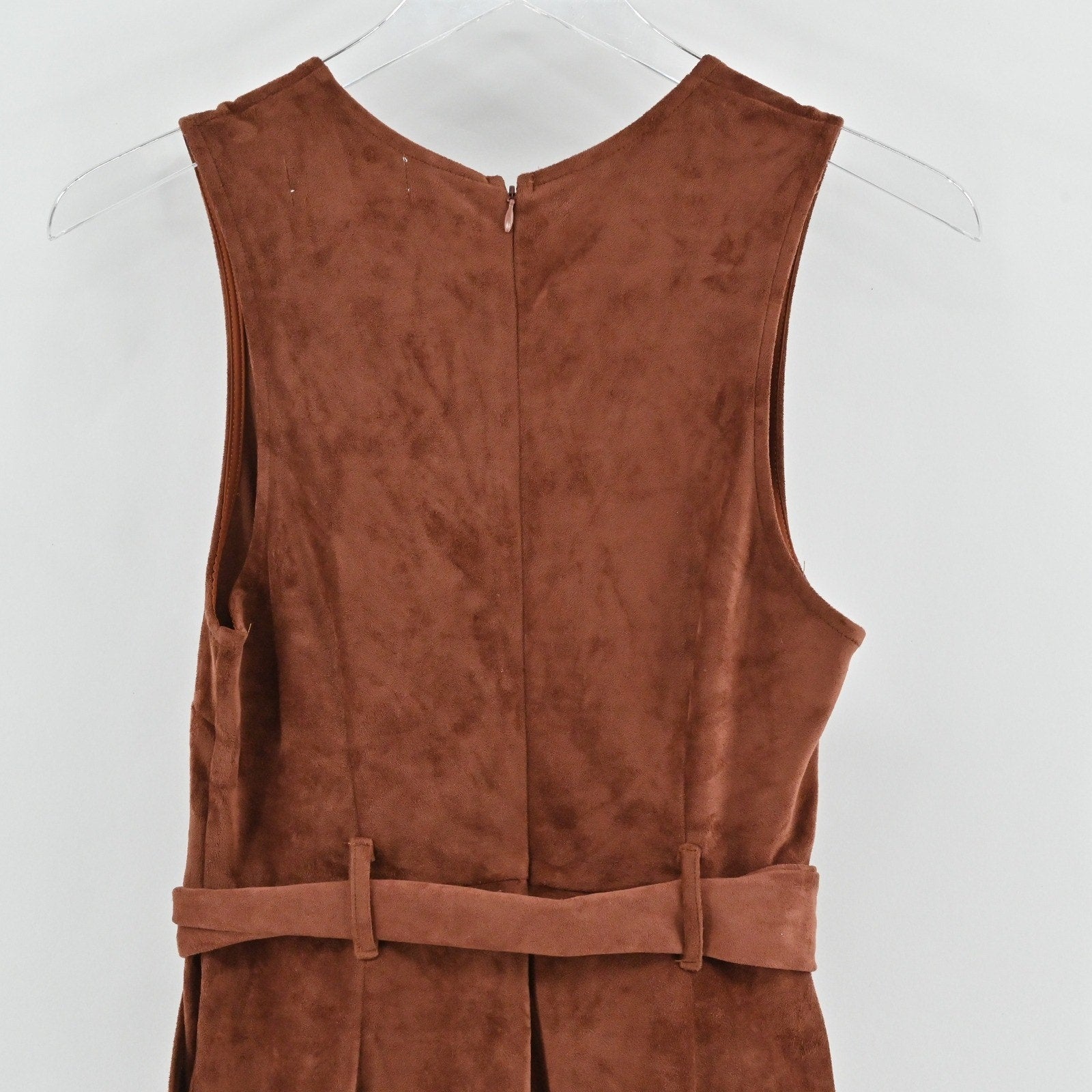 Anthropologie Womens Suede Jumpsuit Size XSP Brown Polished Sleeveless Belted