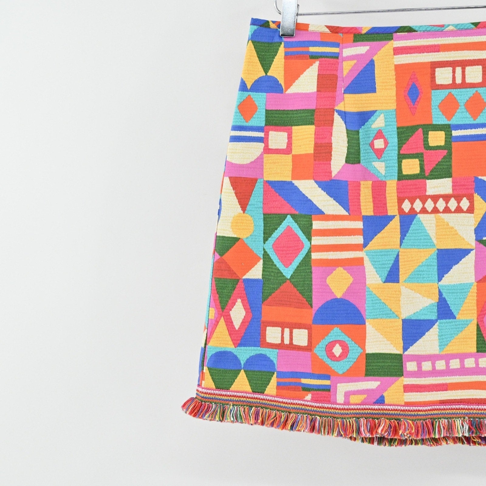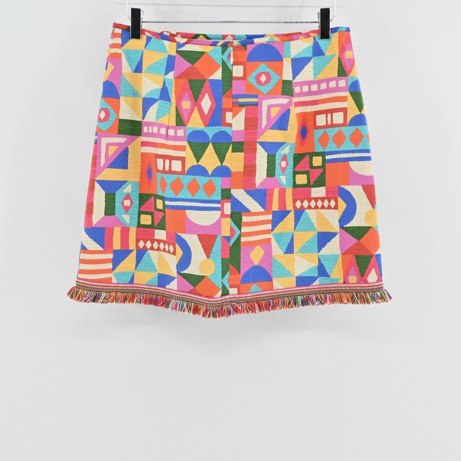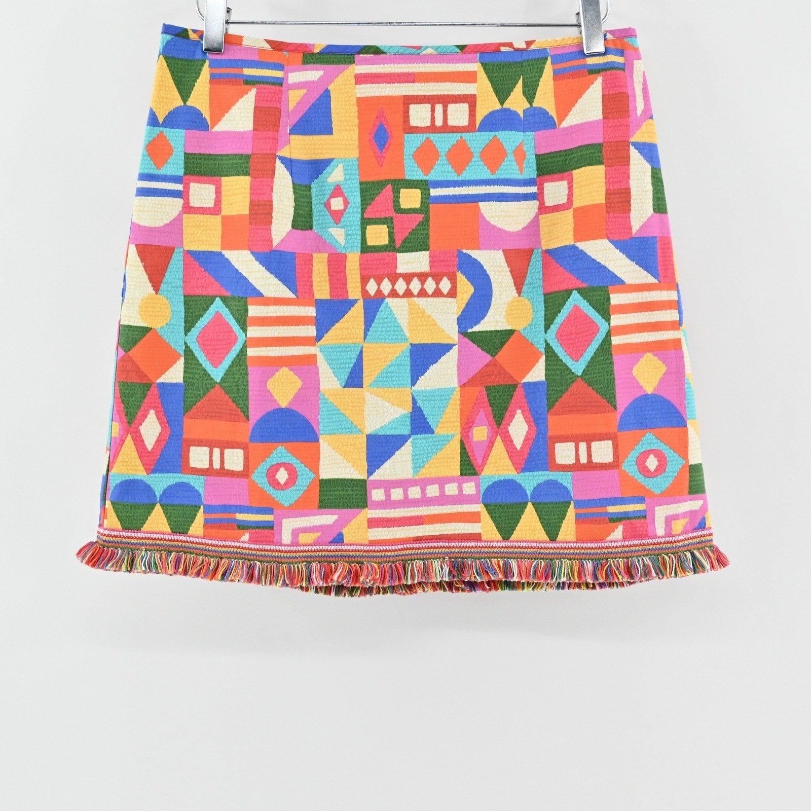 Antonio Melani Noa Geometric Skirt Size 8 Colorful Fringe Trim Dopamine Girl