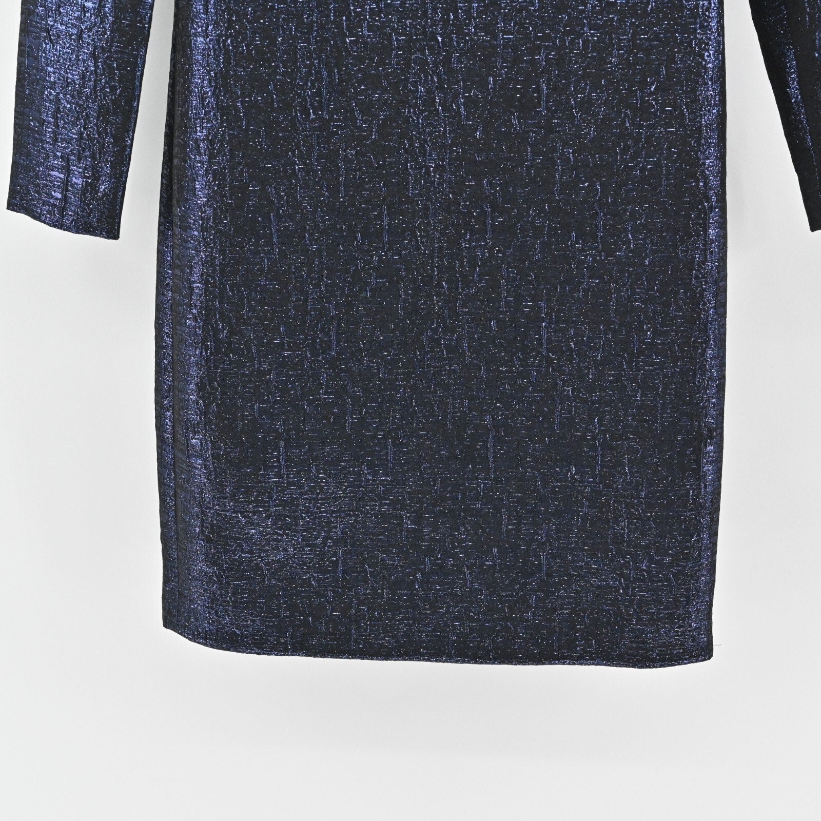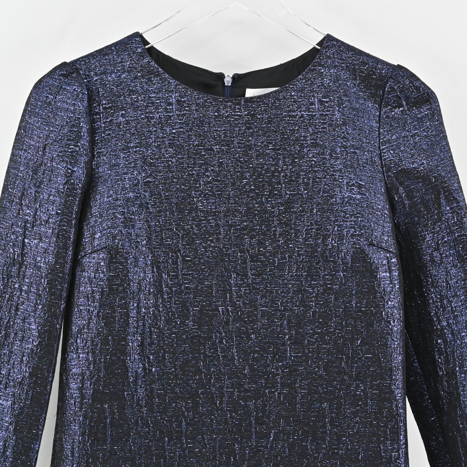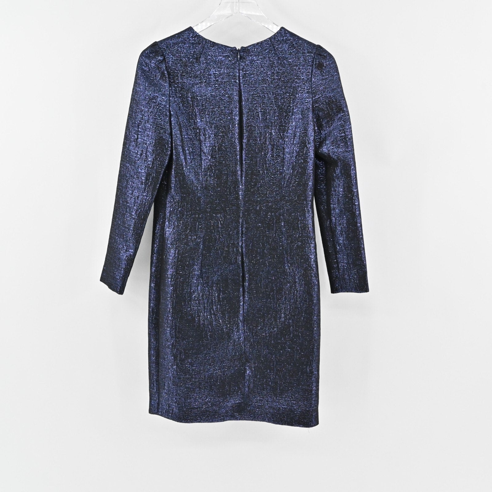 ARIANA ROCKEFELLER Dress Size 0 Silk Black Blue Metallic Long Sleeve Shift Silk