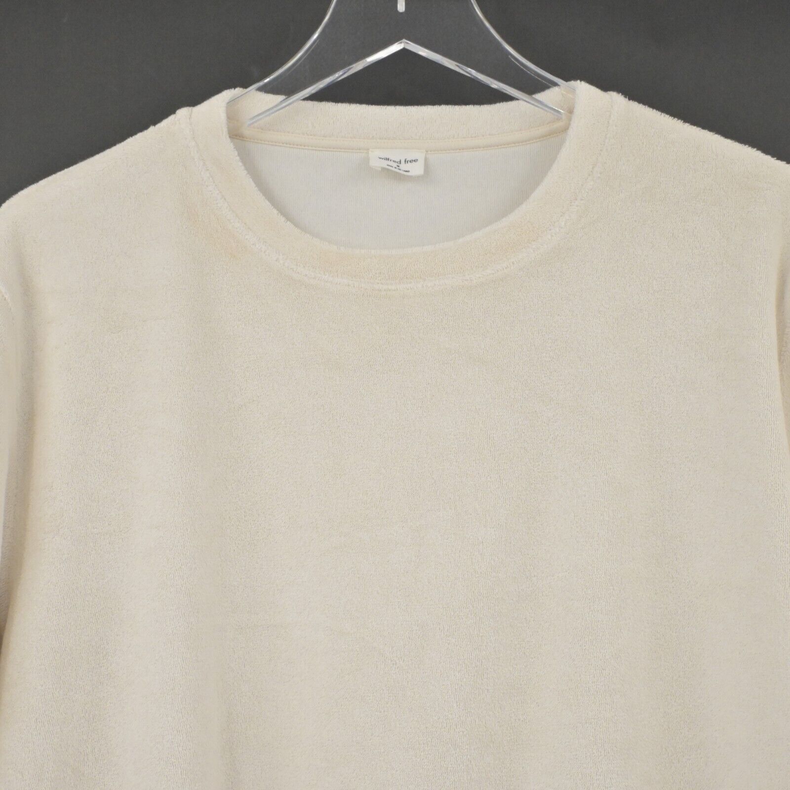 ARITZIA Top Womens Sz M WILFRED FREE Beige Terry Cloth Crop Short Sleeve Shirt