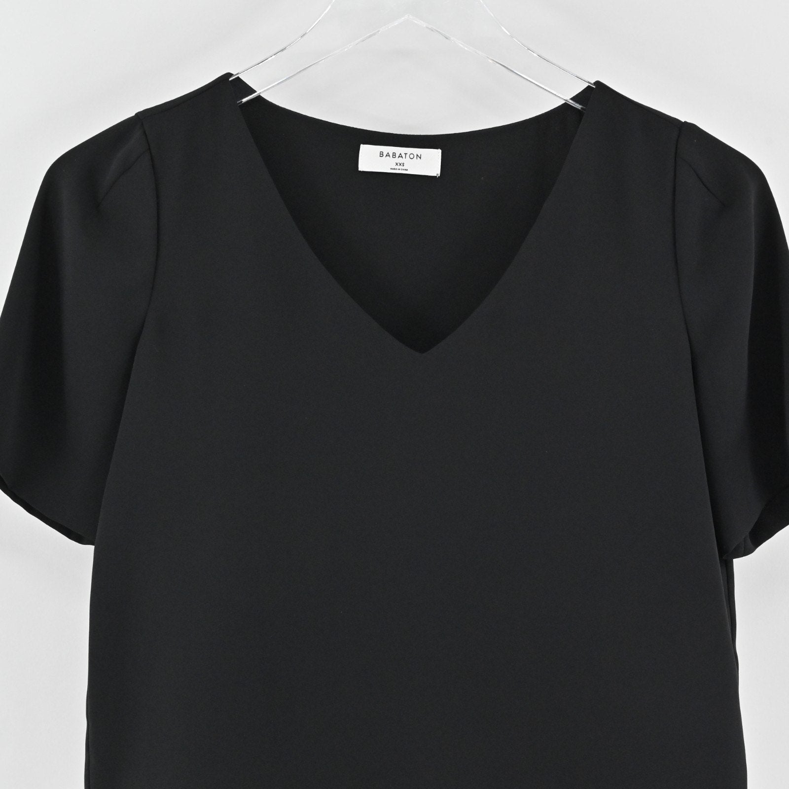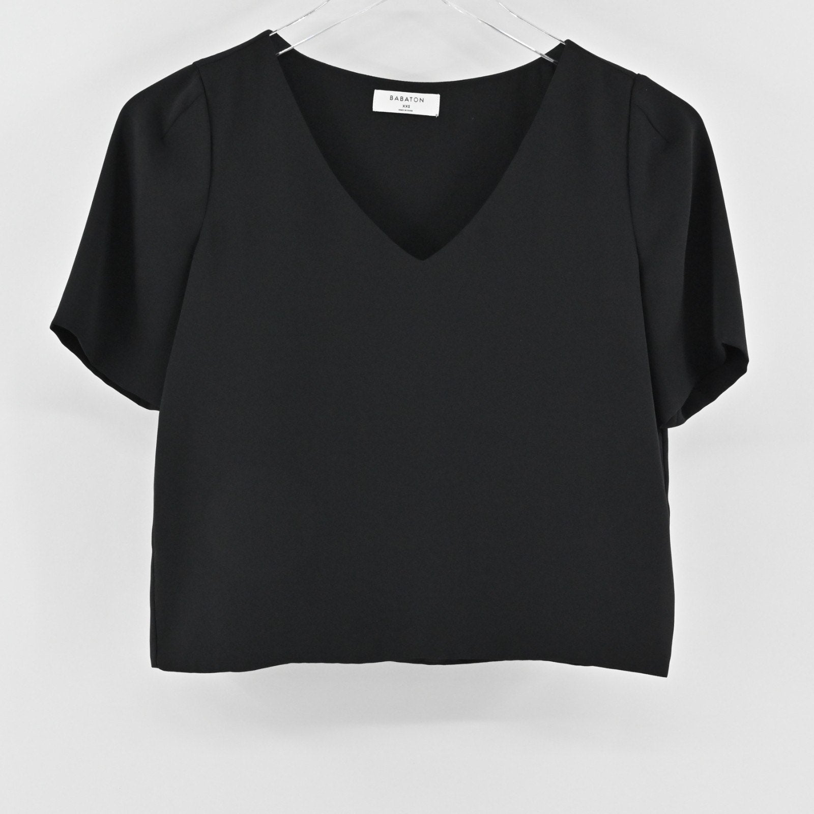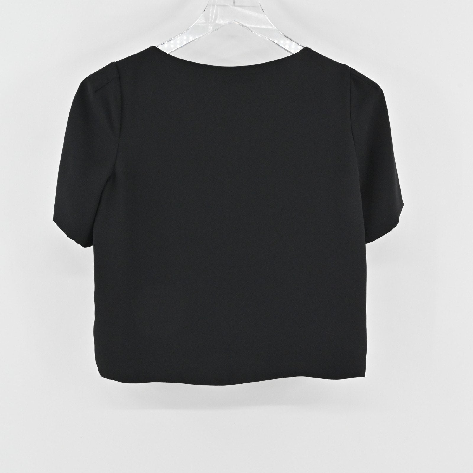 Aritzia Womens Babaton Black VNeck Crop Top Size XXS Solid Short Sleeve Blouse