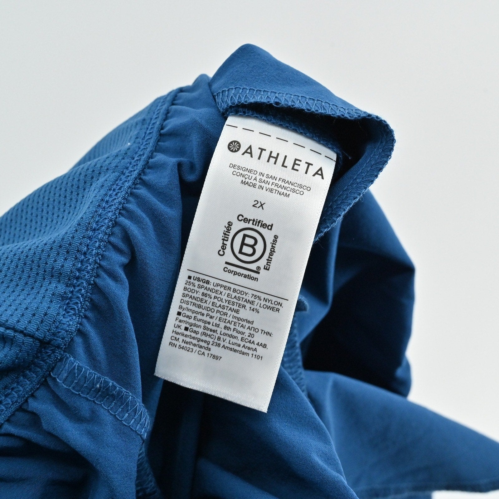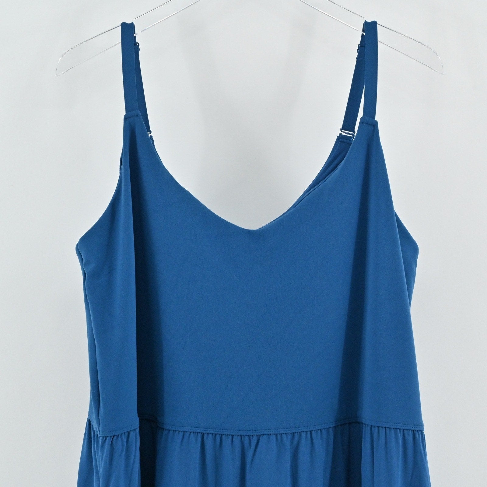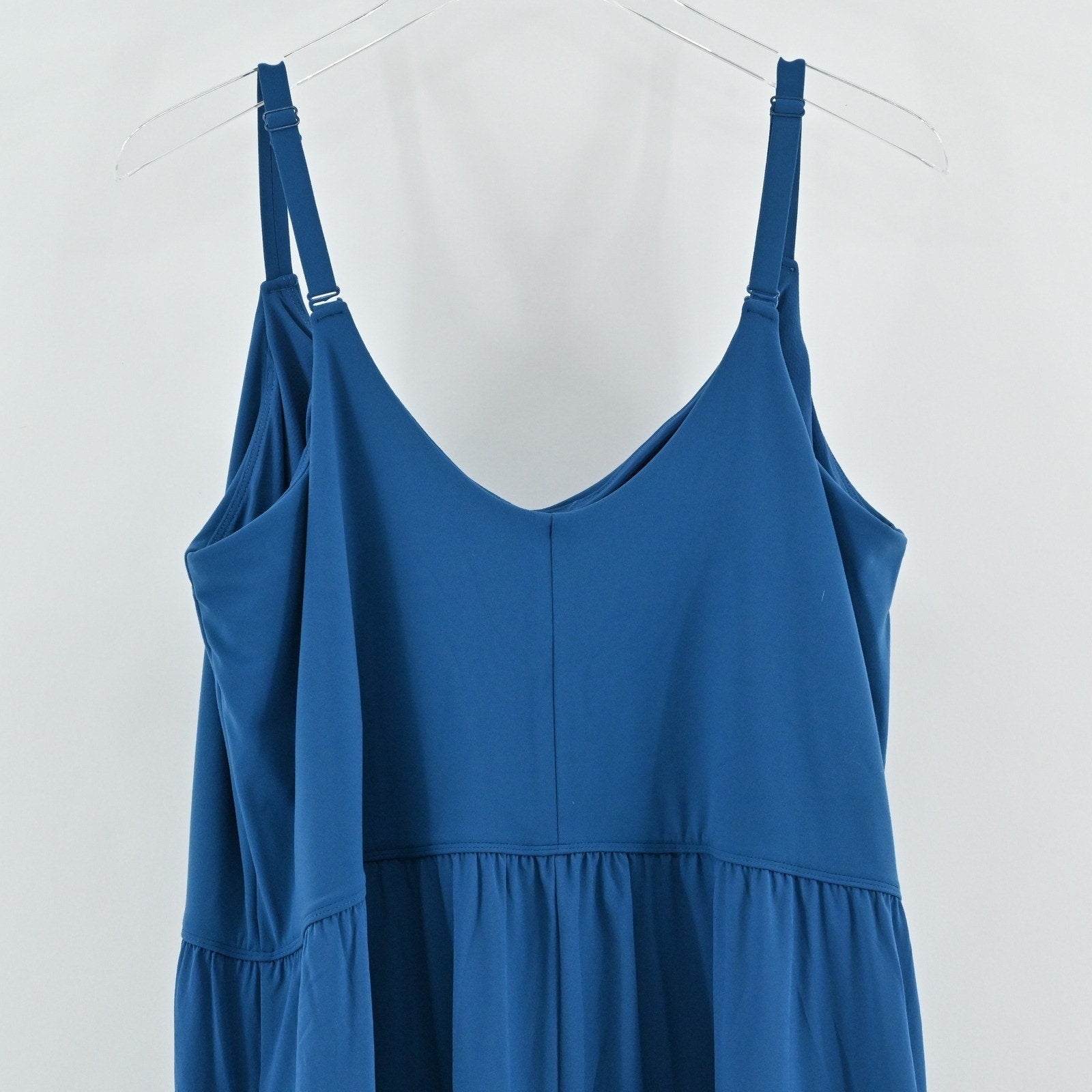 Athleta Elation Hybrid Midi Dress Size 2X Blue Spaghetti Strap Pocket Athleisure