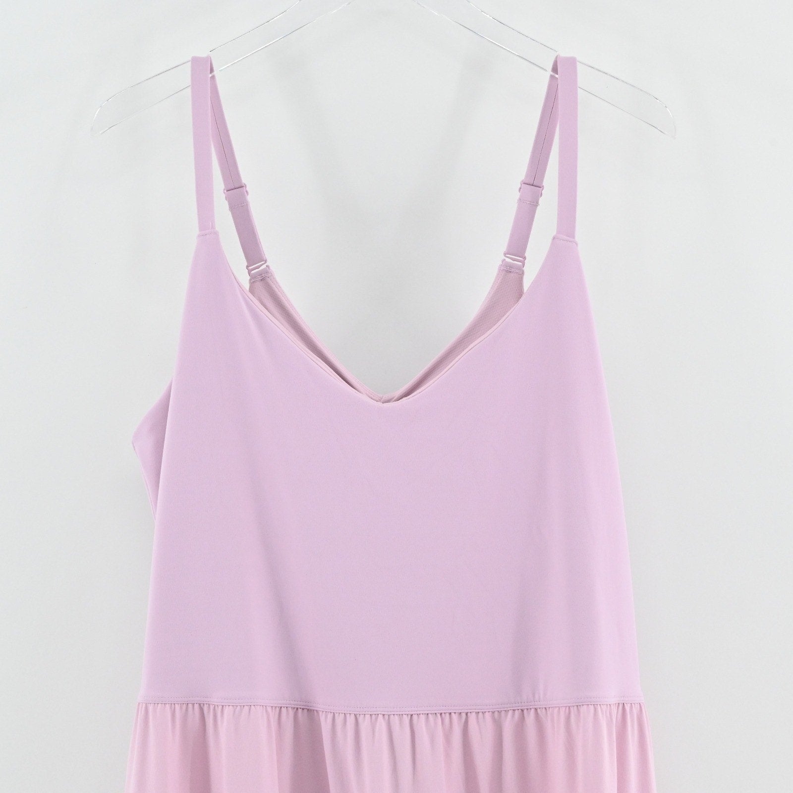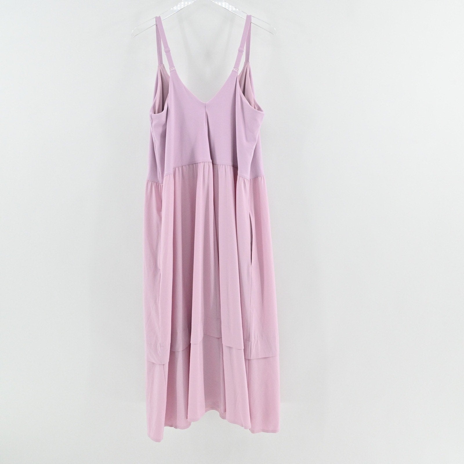 Athleta Elation Hybrid Midi Dress Size 2X Pink Spaghetti Strap Pocket Athleisure