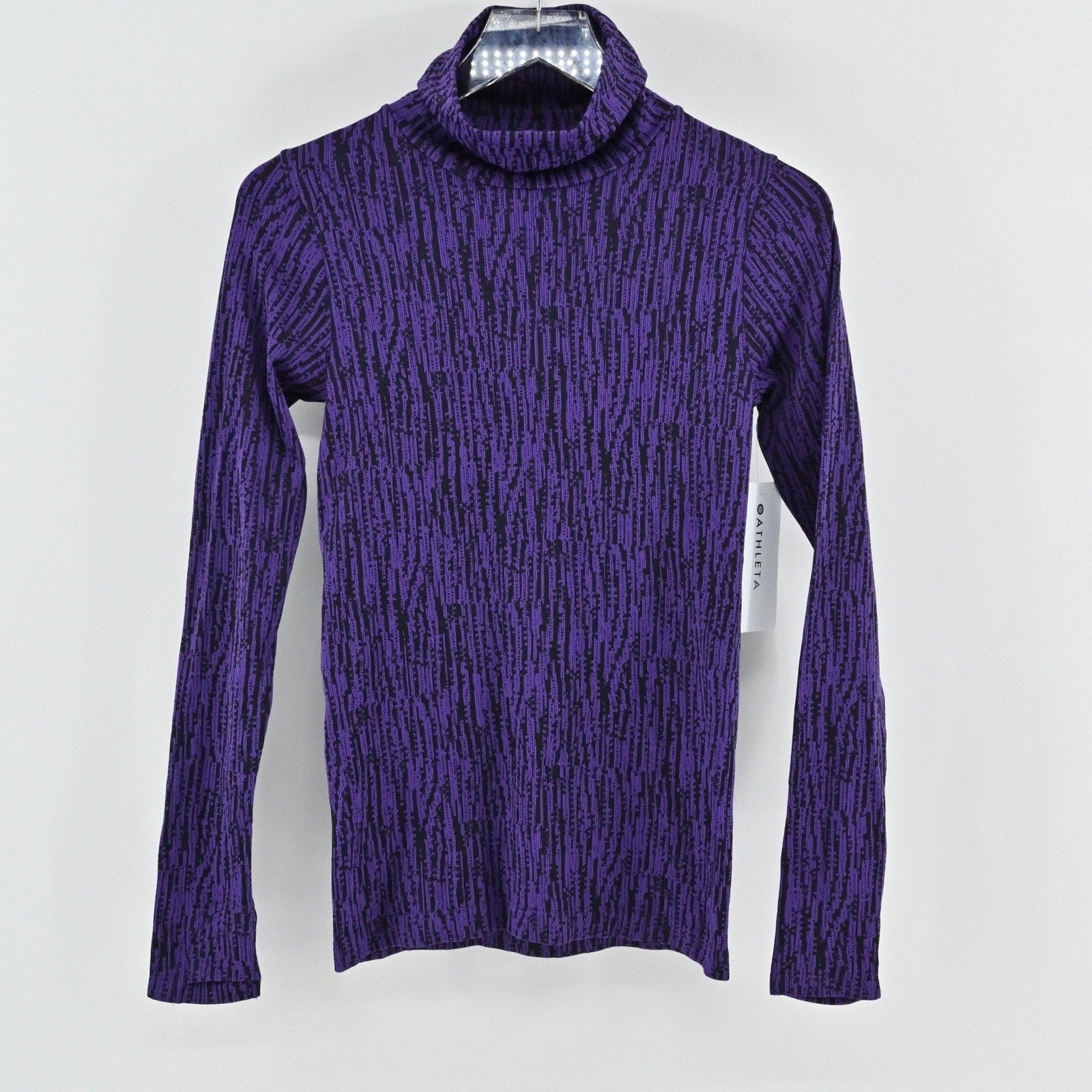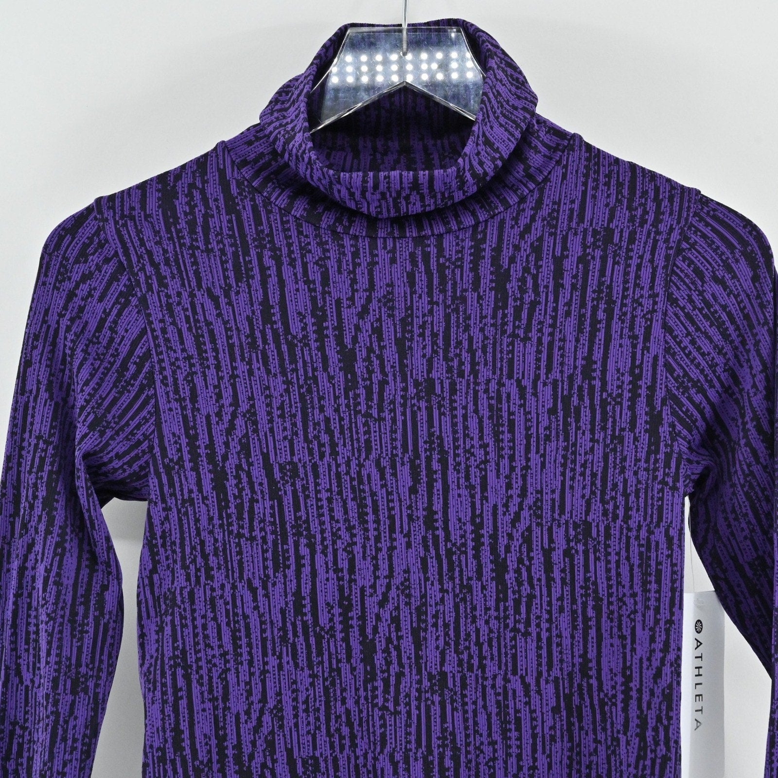Athleta Flurry Elemental Turtleneck Top Womens XS Purple Black Warm Long Sleeve