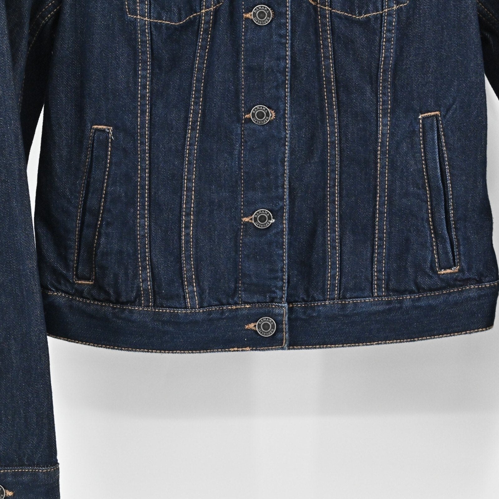 BANANA REPUBLIC Womens Embroidered Tiger Jacket Size XS Blue Denim Button Patch