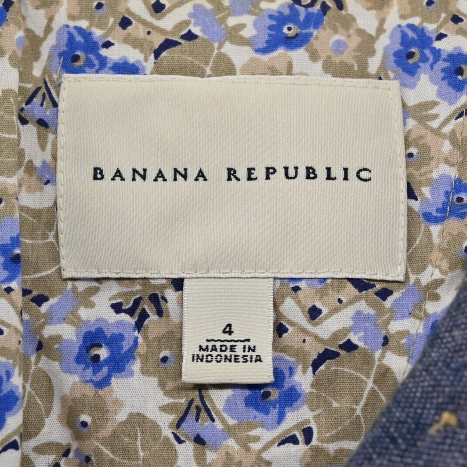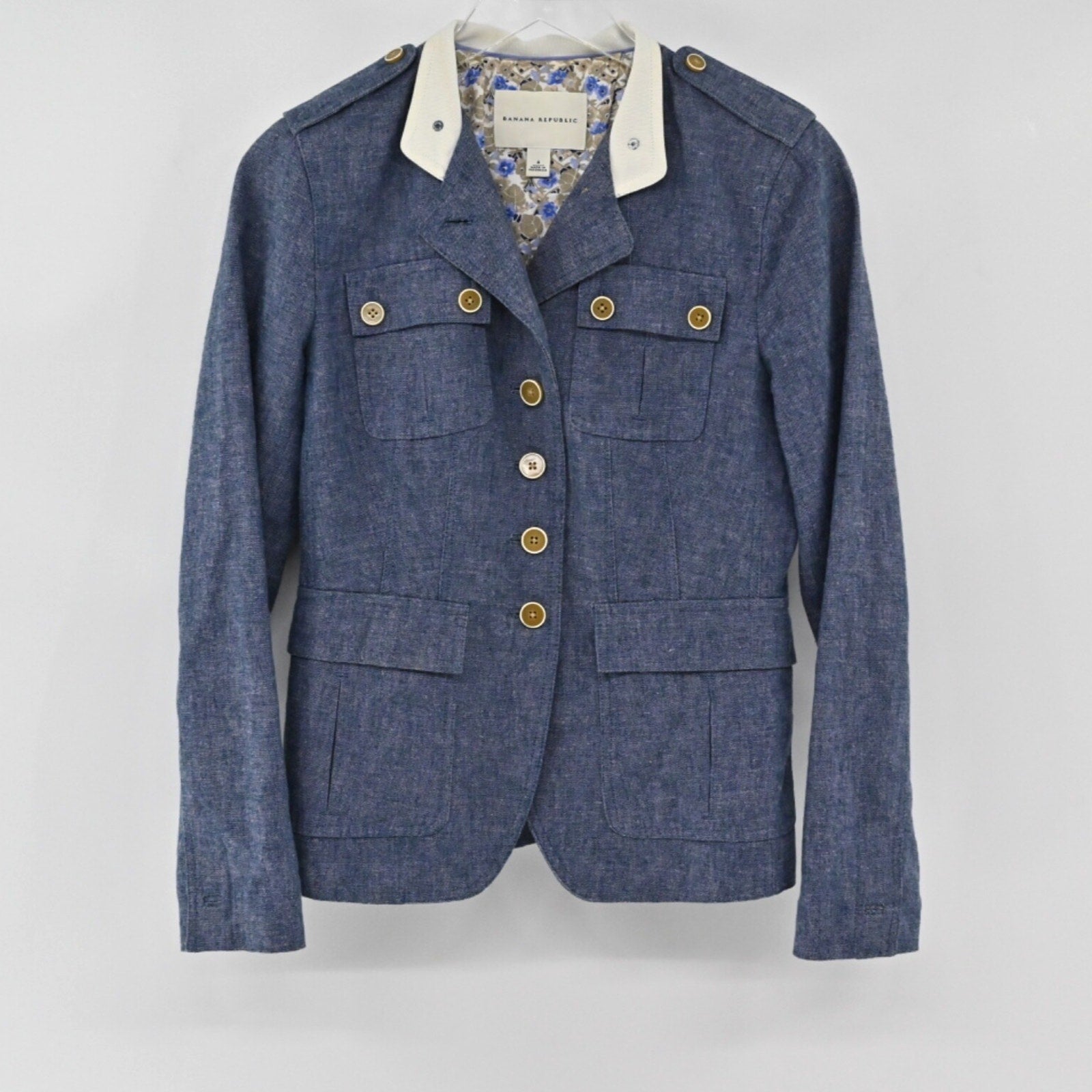 BANANA REPUBLIC Womens Military Jacket Size 4 Blue Preppy Linen Utility Button