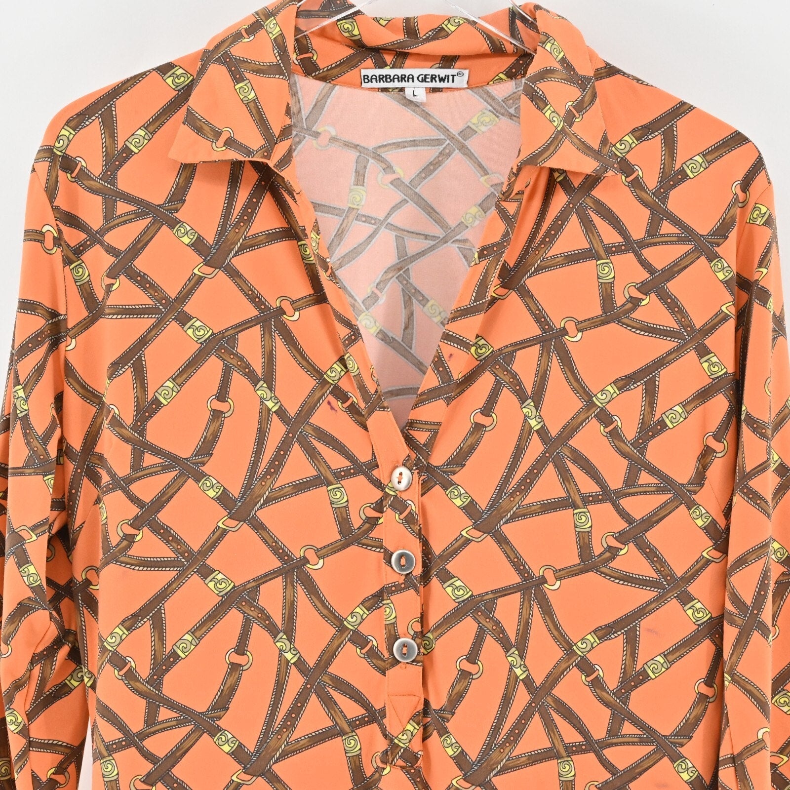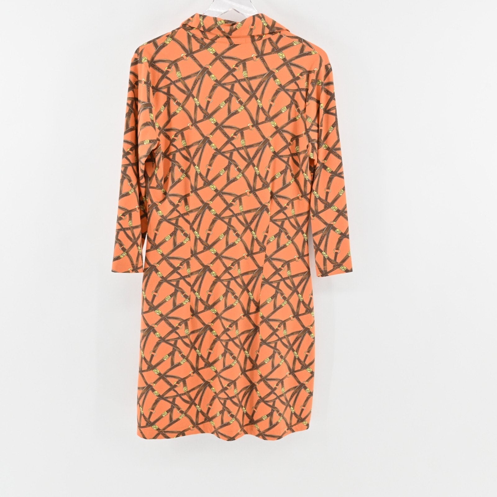 BARBARA GERWIT Bridle Dress Size L Orange Brown Belt Western Equestrian Shift