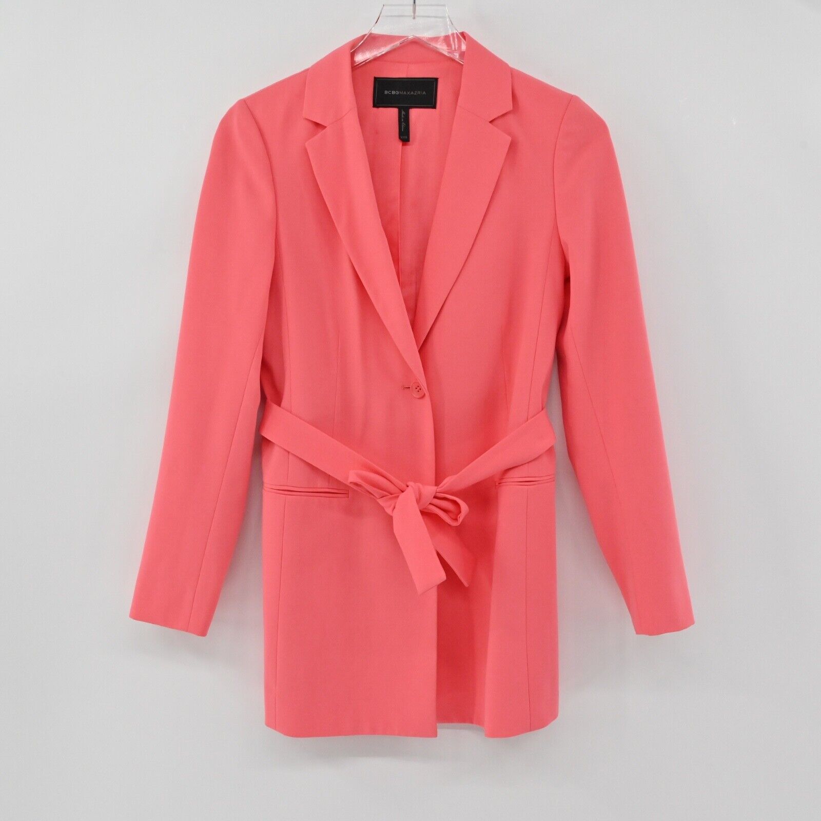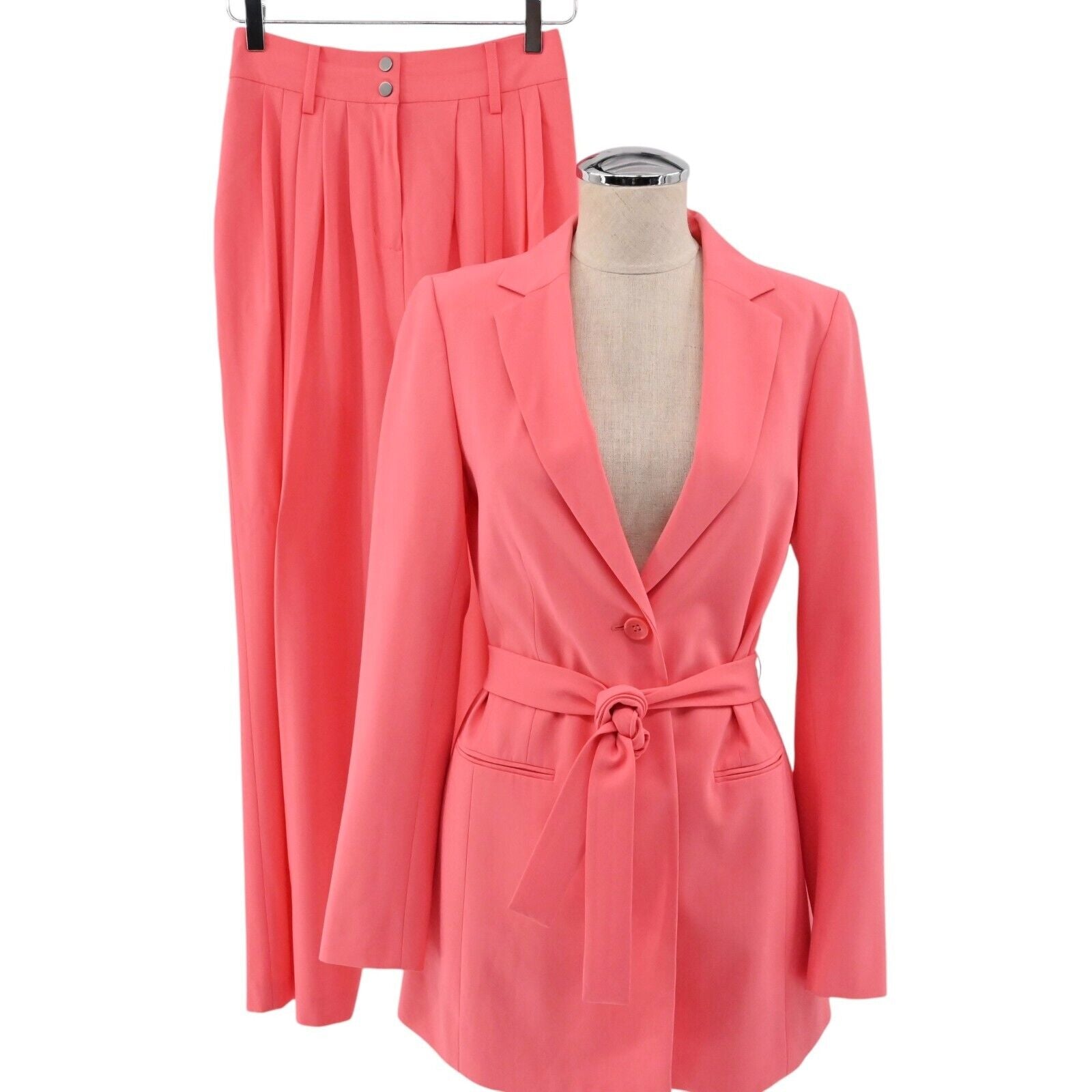 BCBGMAXAZRIA Pant Suit Womens Sz 2XS Coral Belted Jacket High Rise Pleated Retro