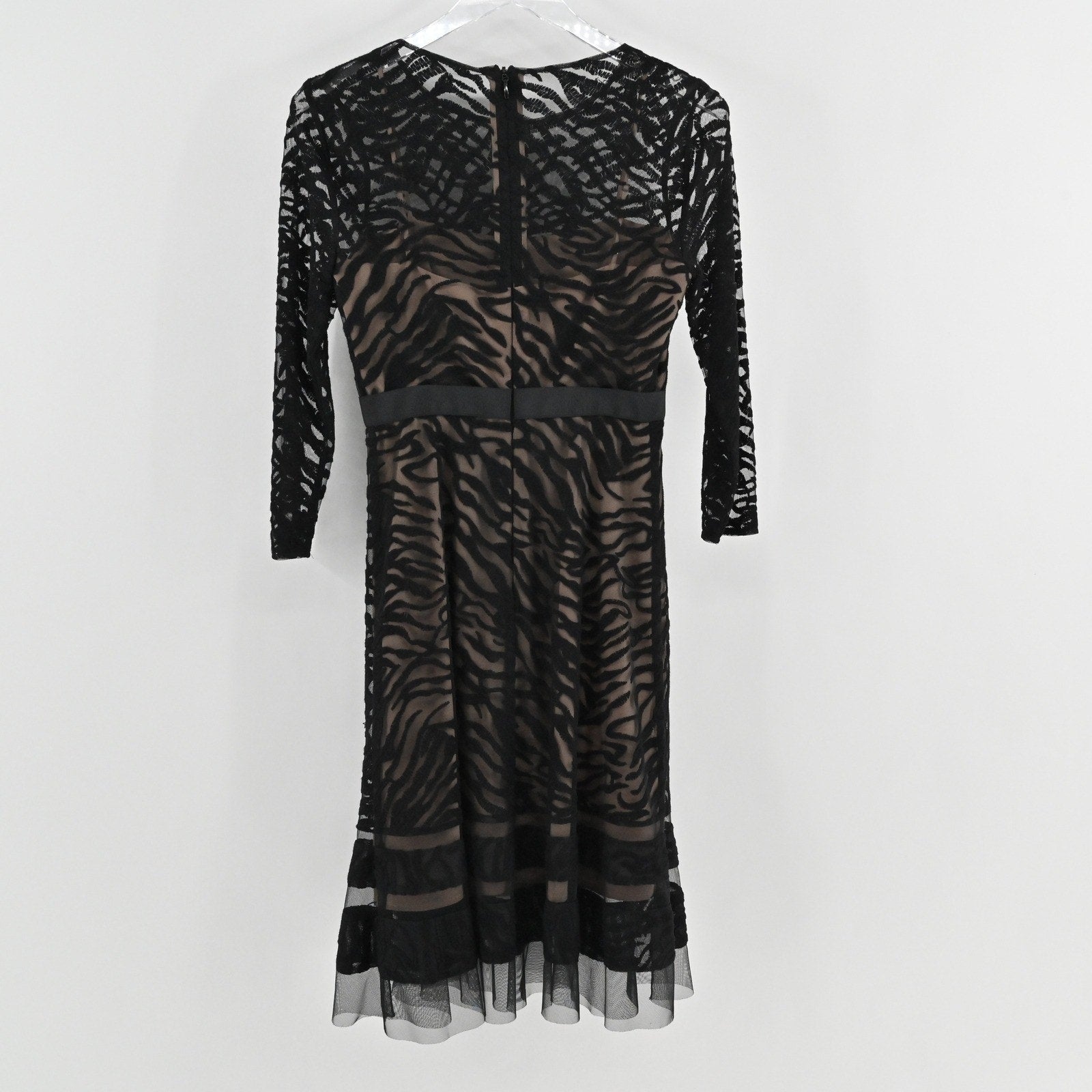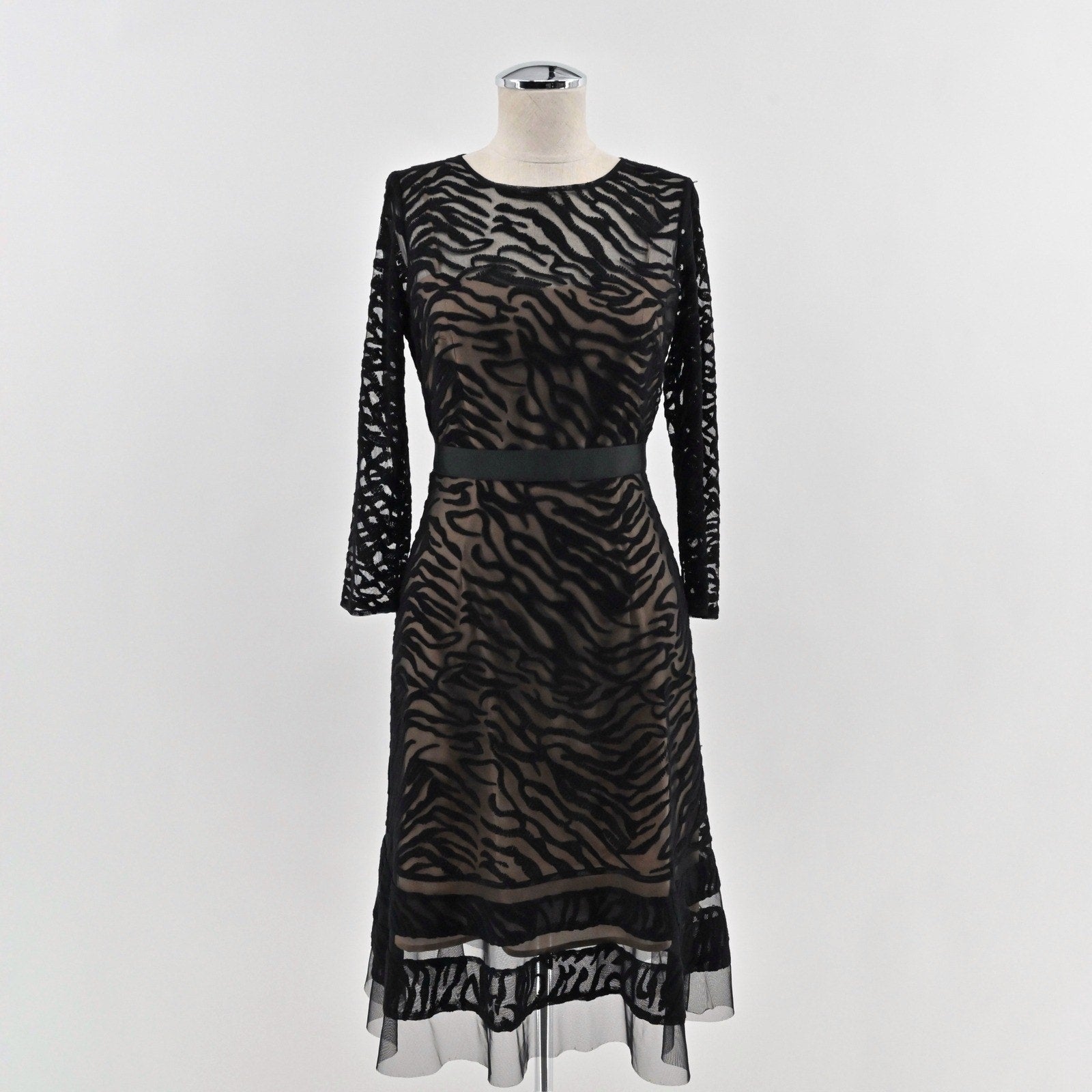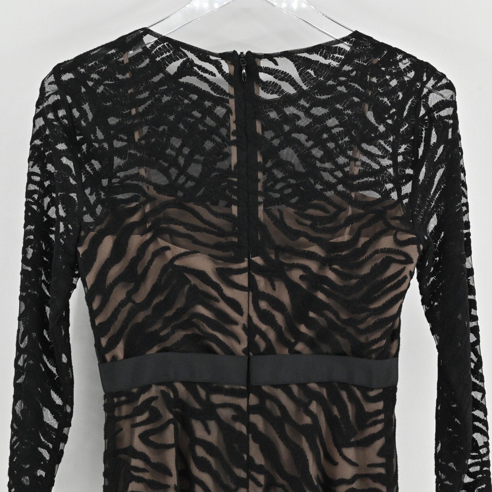 BCBGMAXAZRIA Velvet Burnout Midi Dress Sz 0 Zebra Black Lace Cocktail Whimsical
