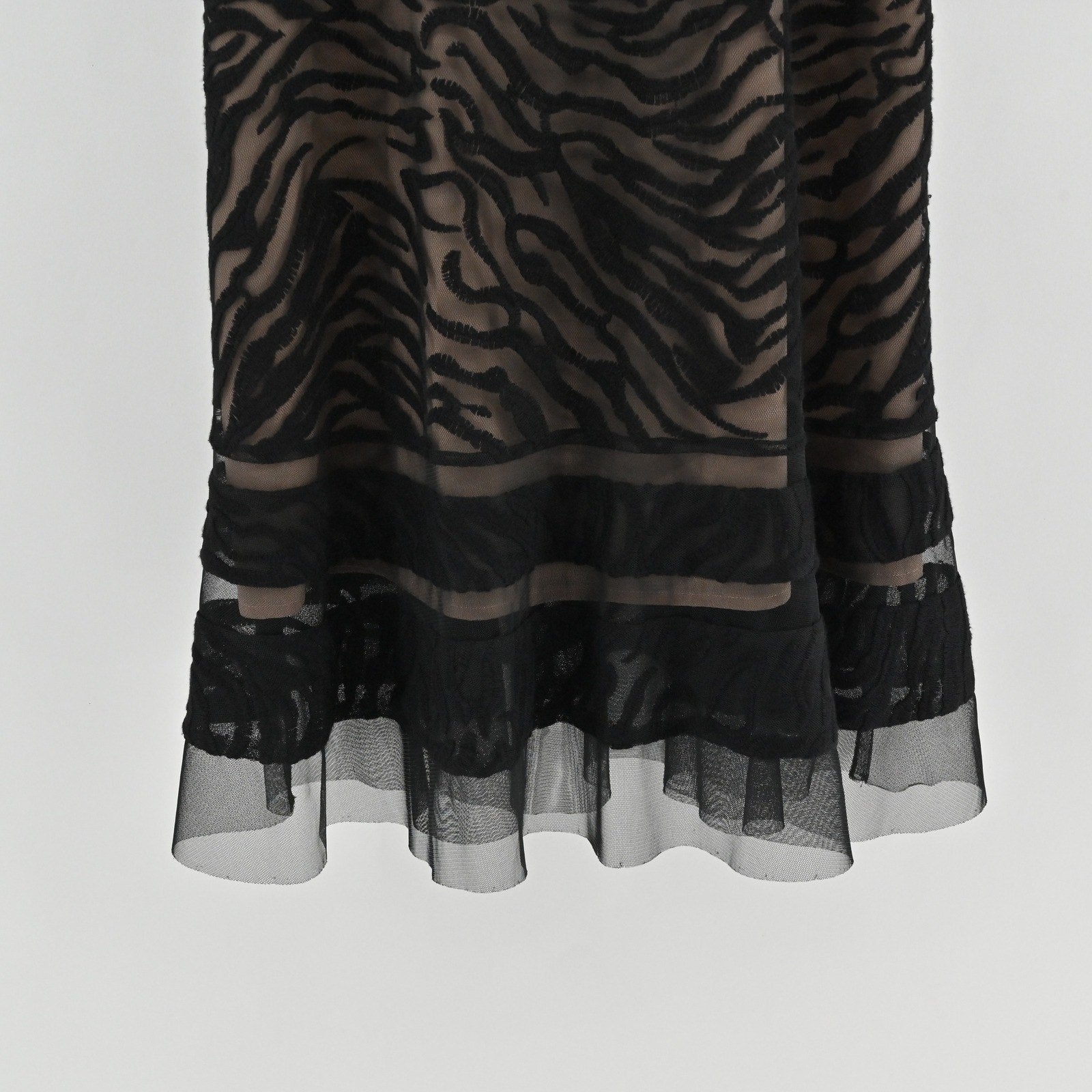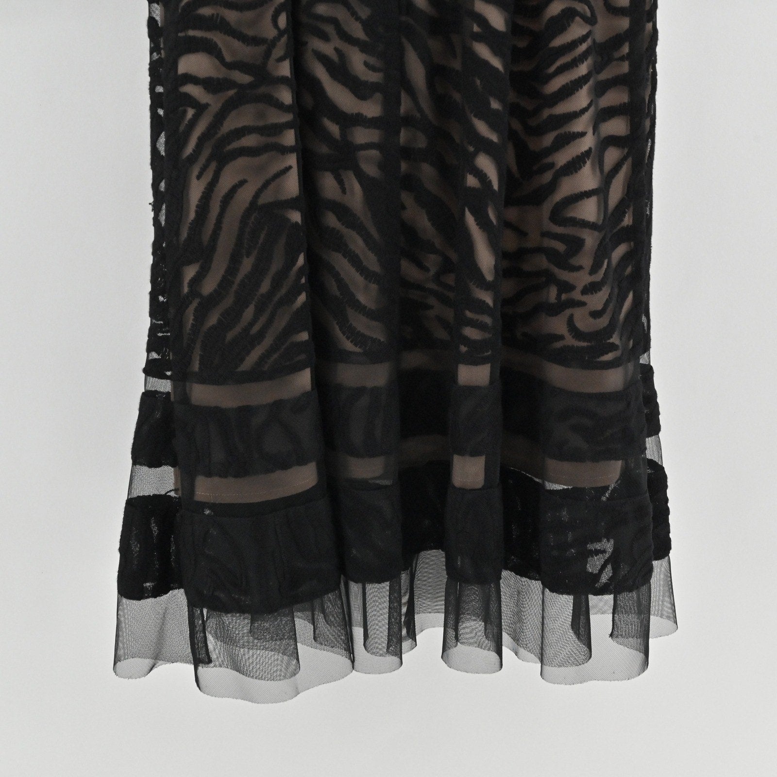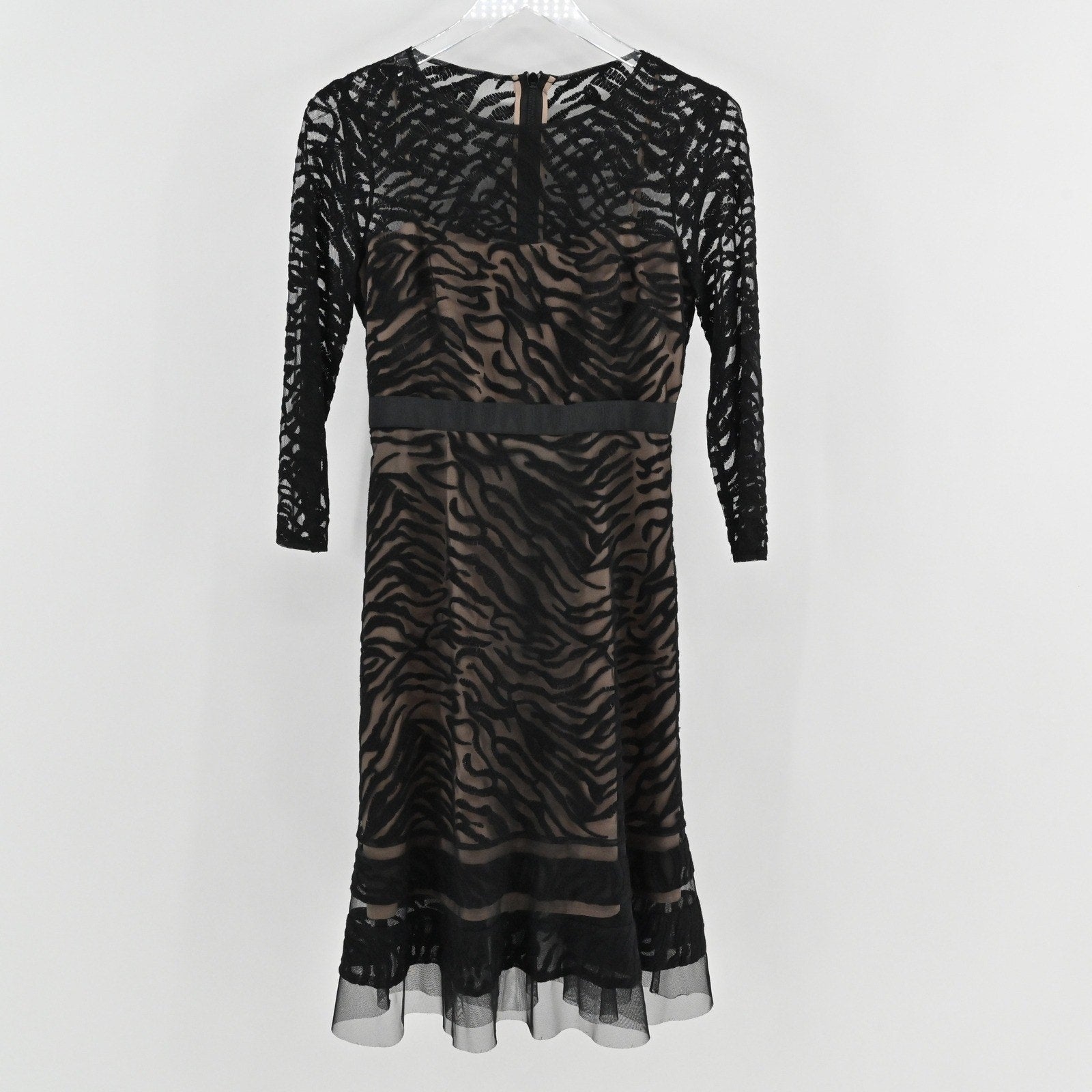 BCBGMAXAZRIA Velvet Burnout Midi Dress Sz 0 Zebra Black Lace Cocktail Whimsical