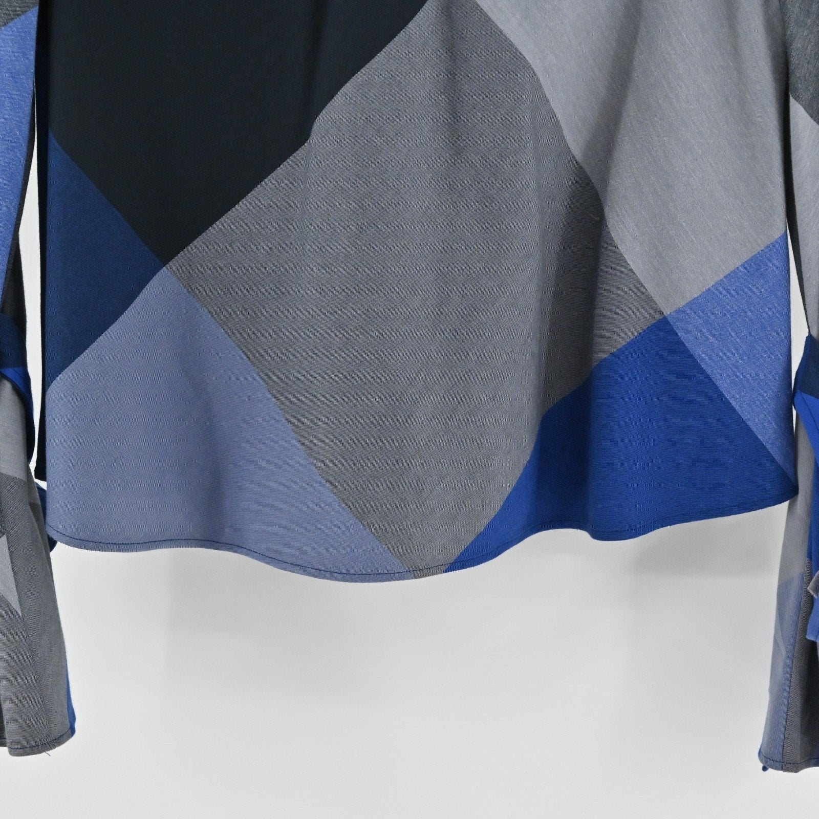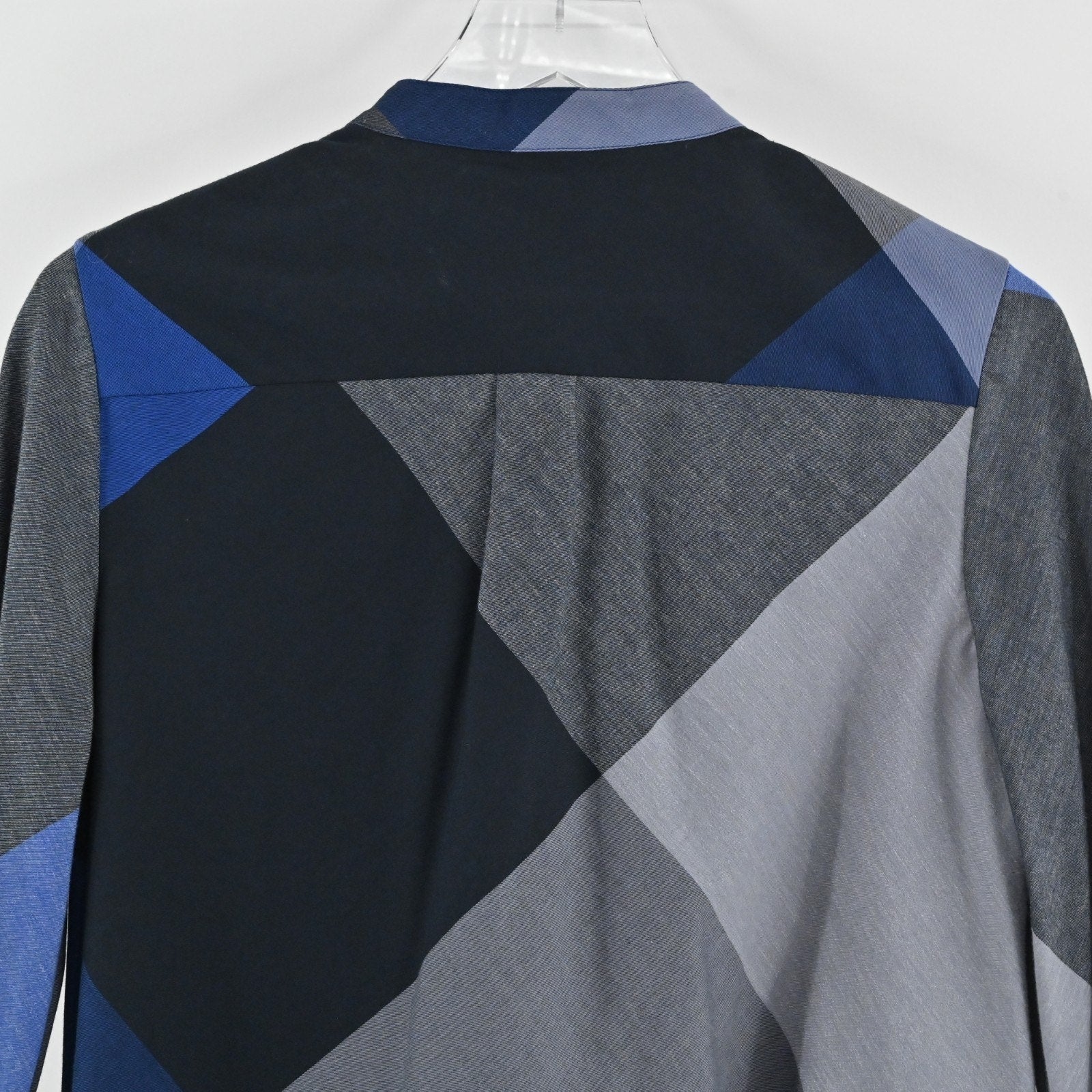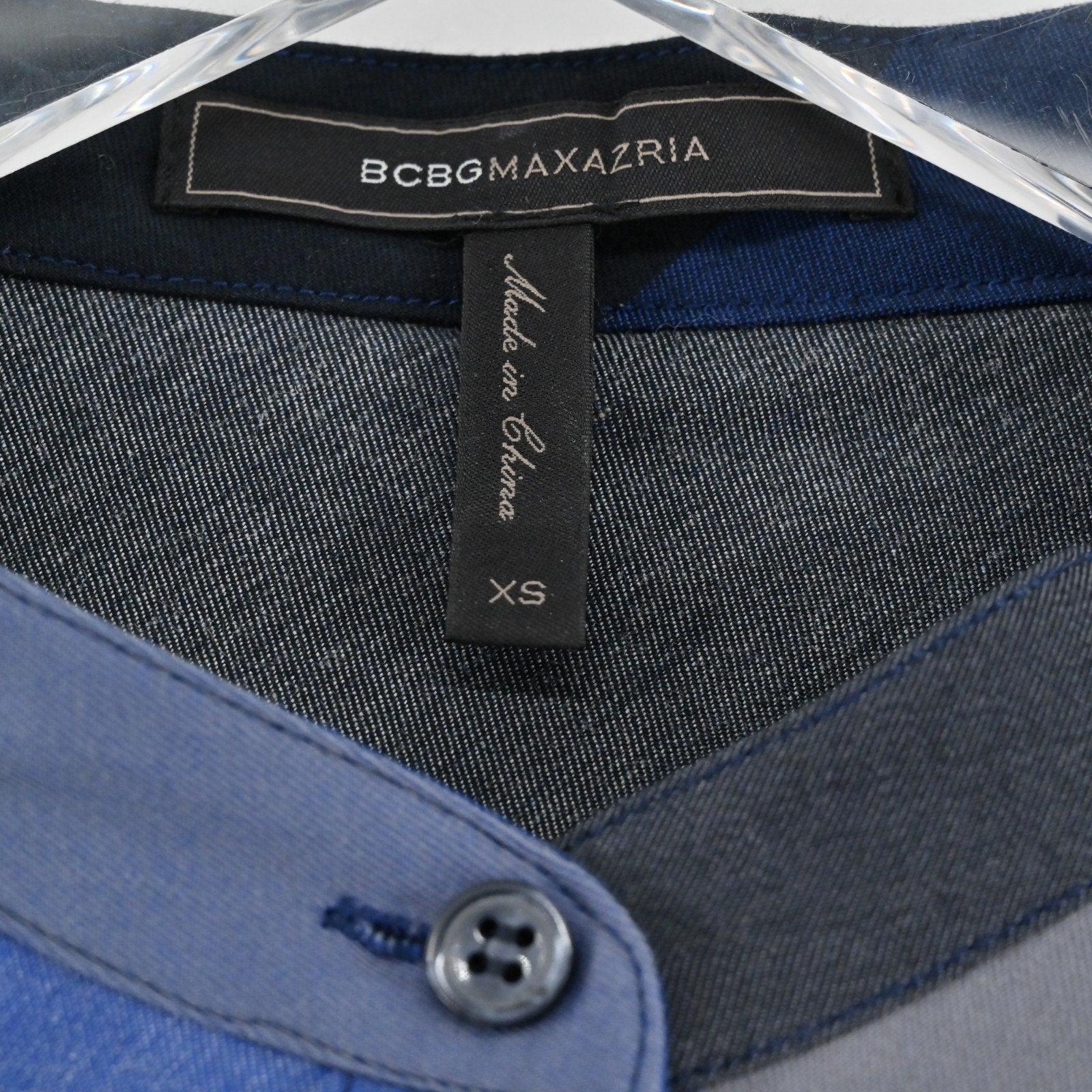 BCBGMaxAzria Womens Blue Colorblock Button Front Top Size XS Tie Wrist Blouse