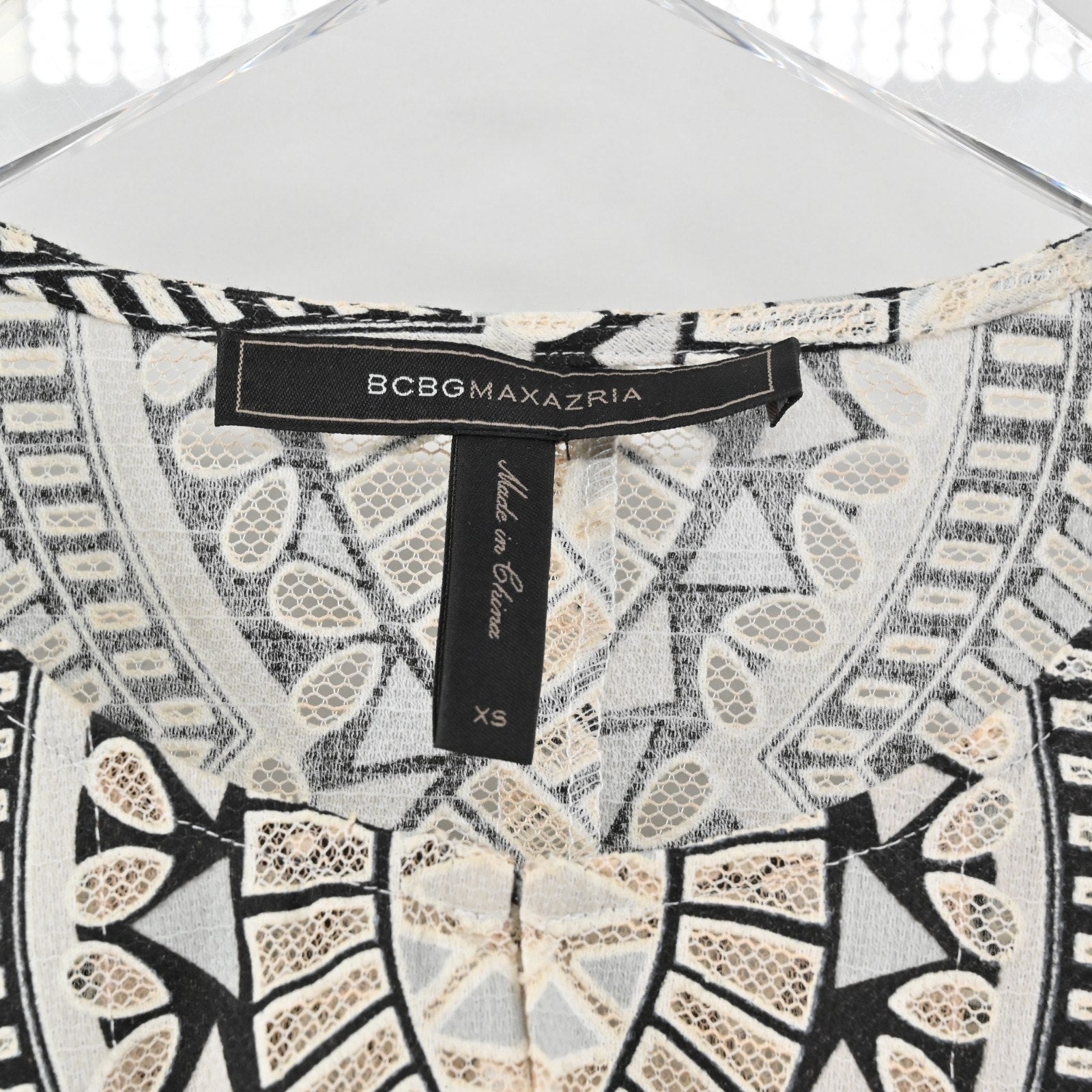 BCBGMaxAzria Womens Kyndal Top Size XS Black Beige Print Long Sleeve Blouse