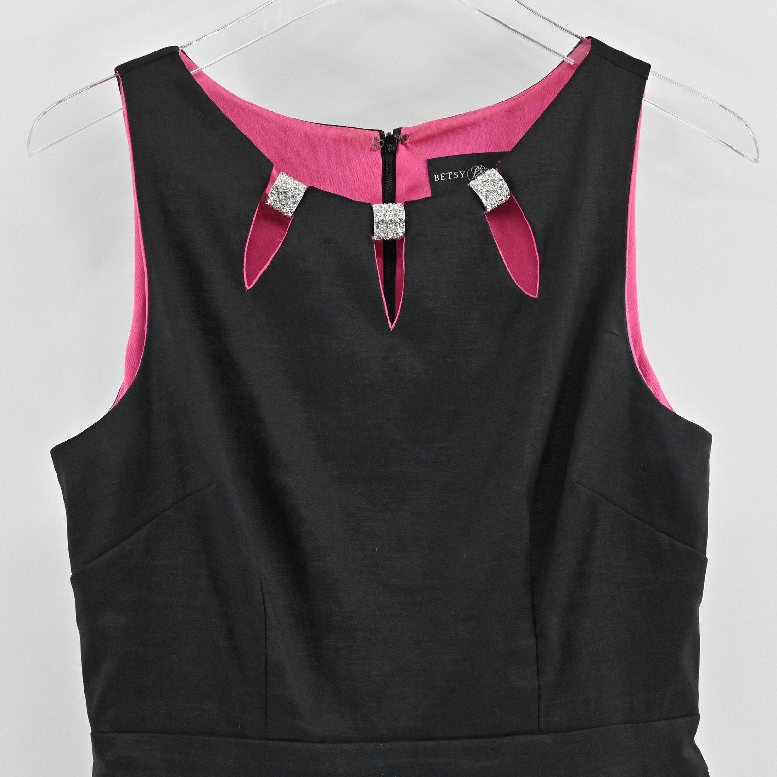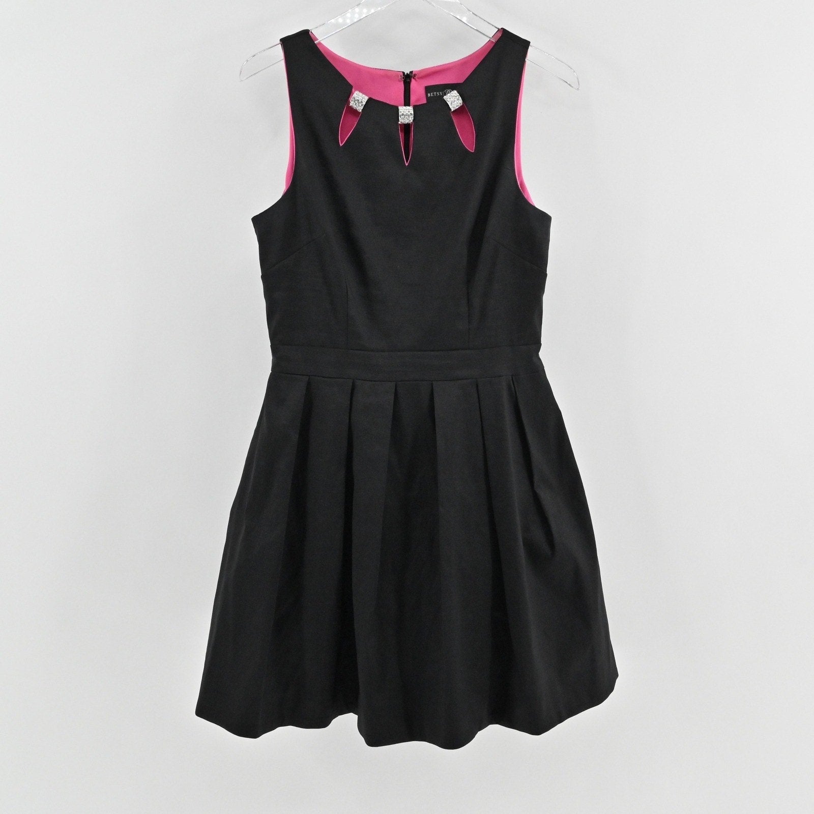 Betsy Adam Fit Flare Dress Size 12 Black Embellished Whimsigoth Cocktail Party