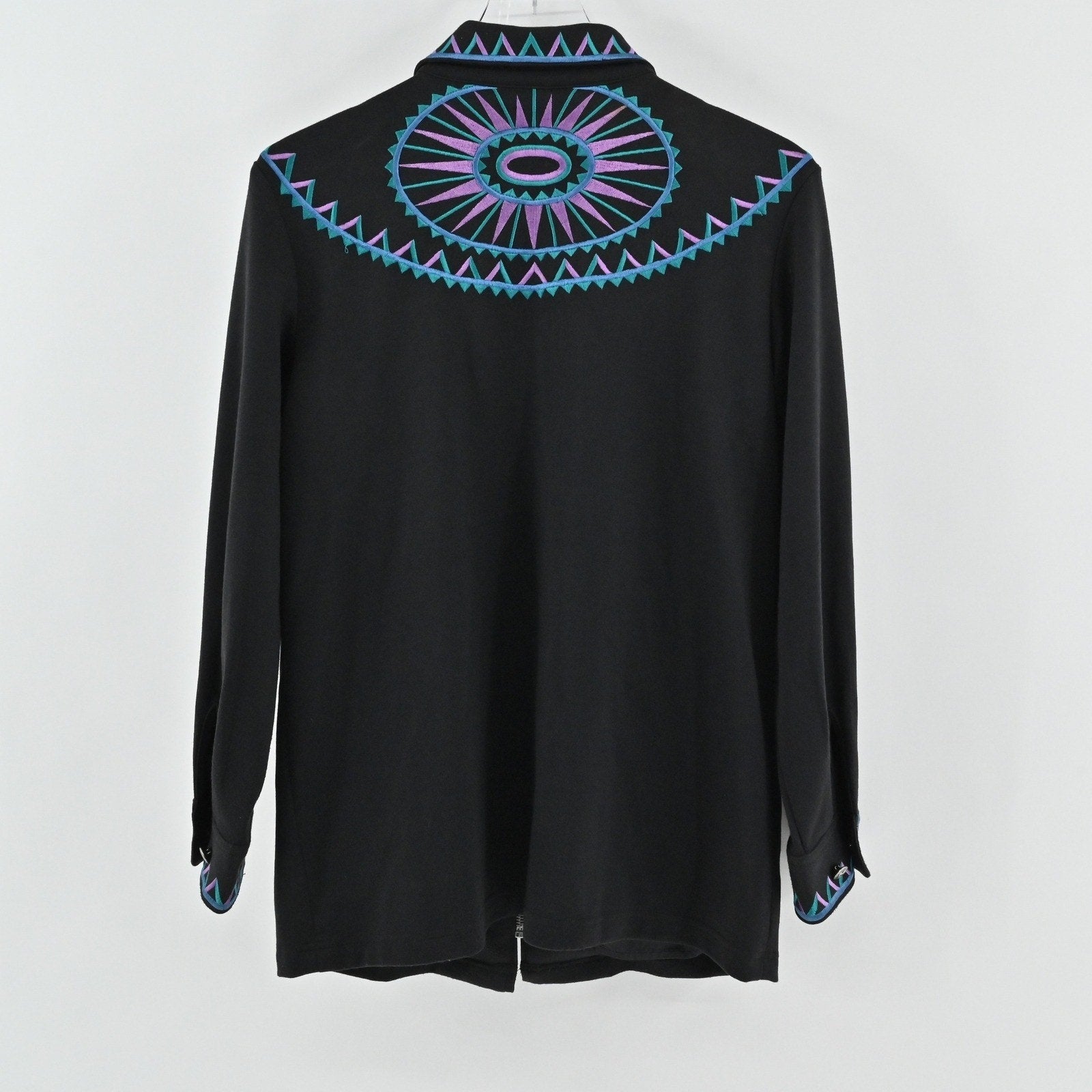 Bob Mackie Womens Embroidered Jacket Size M Black Zip Up Western Wearable Art