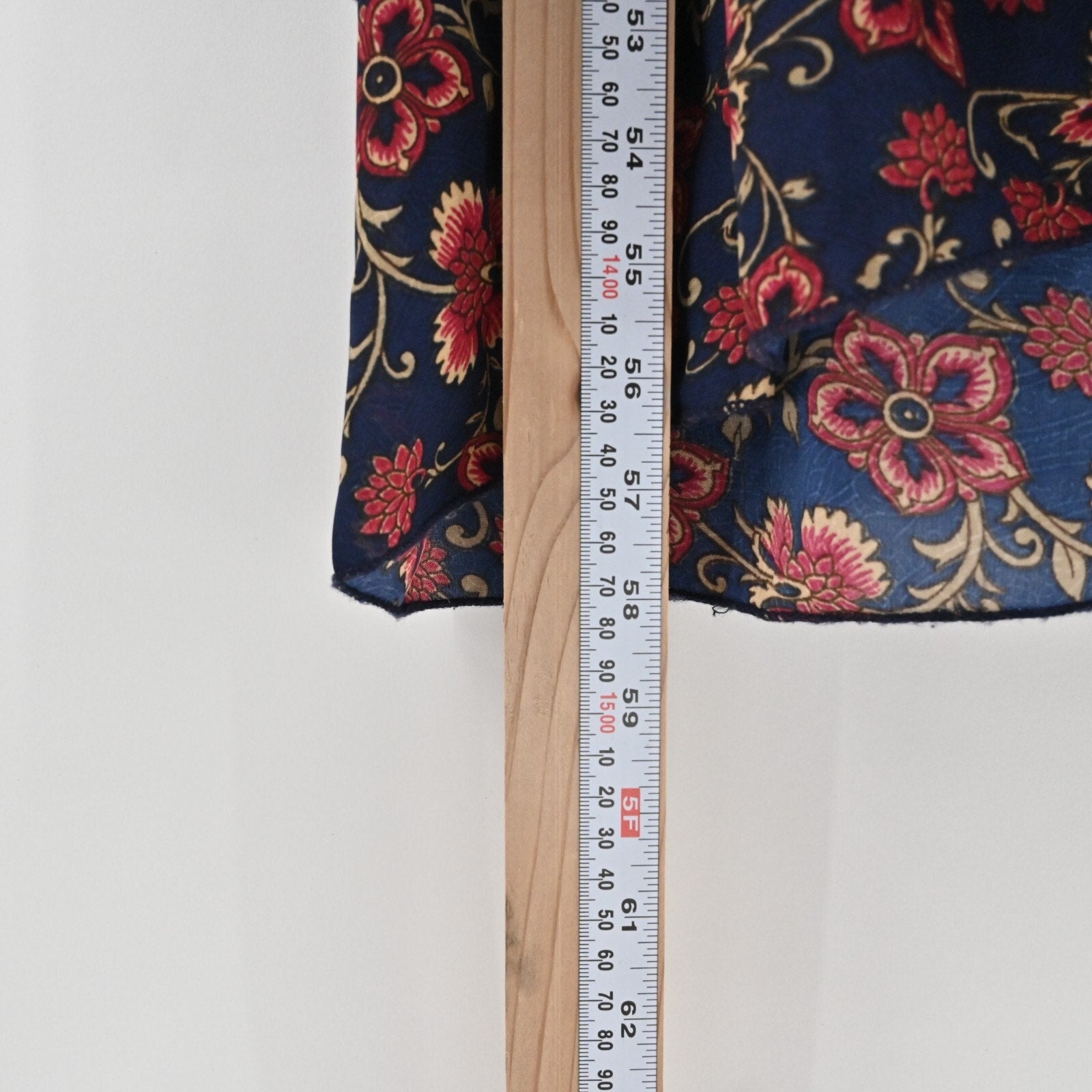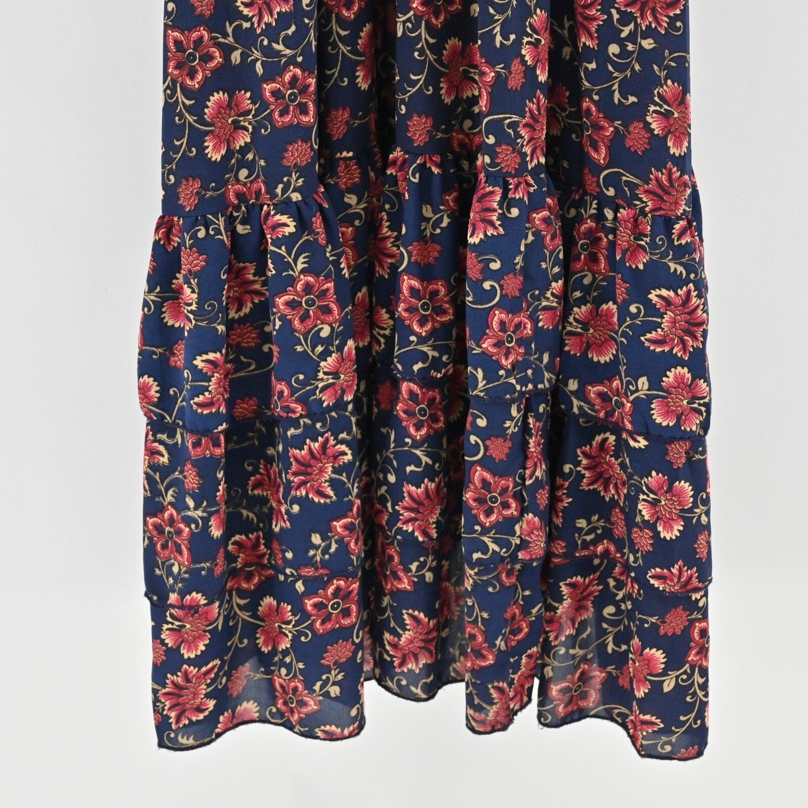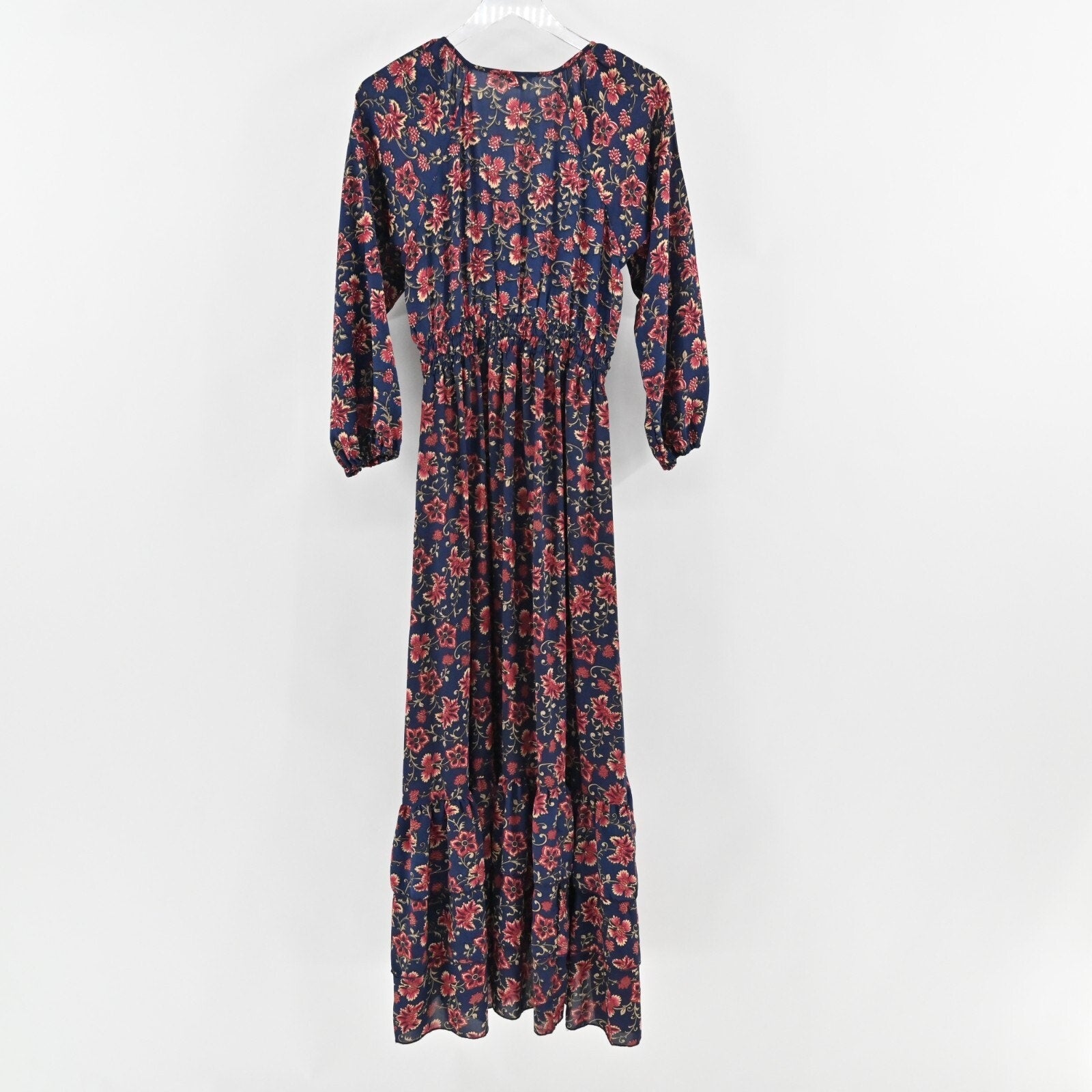 BOEMO Dress Size LP Navy Red Long Sleeve VNeck Tie Waist Floral Print Boho Maxi