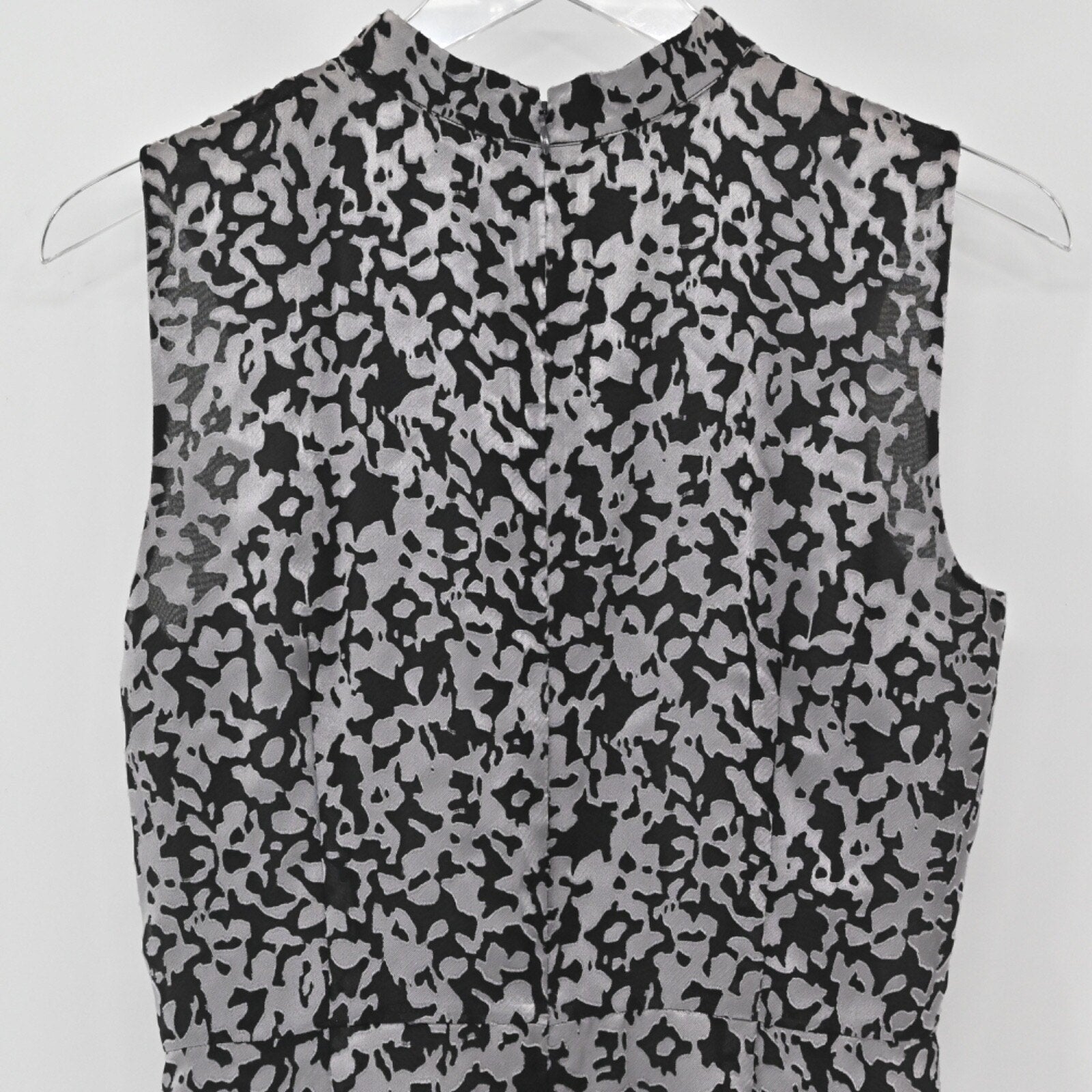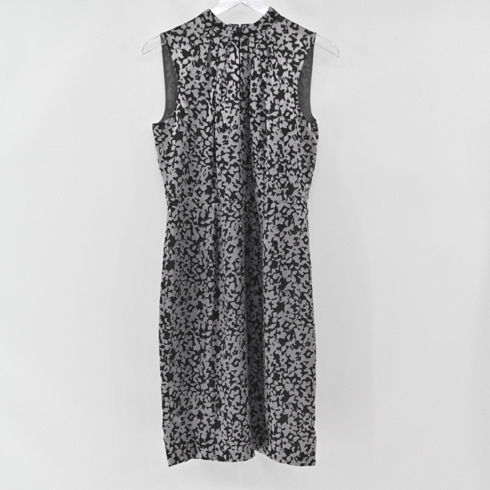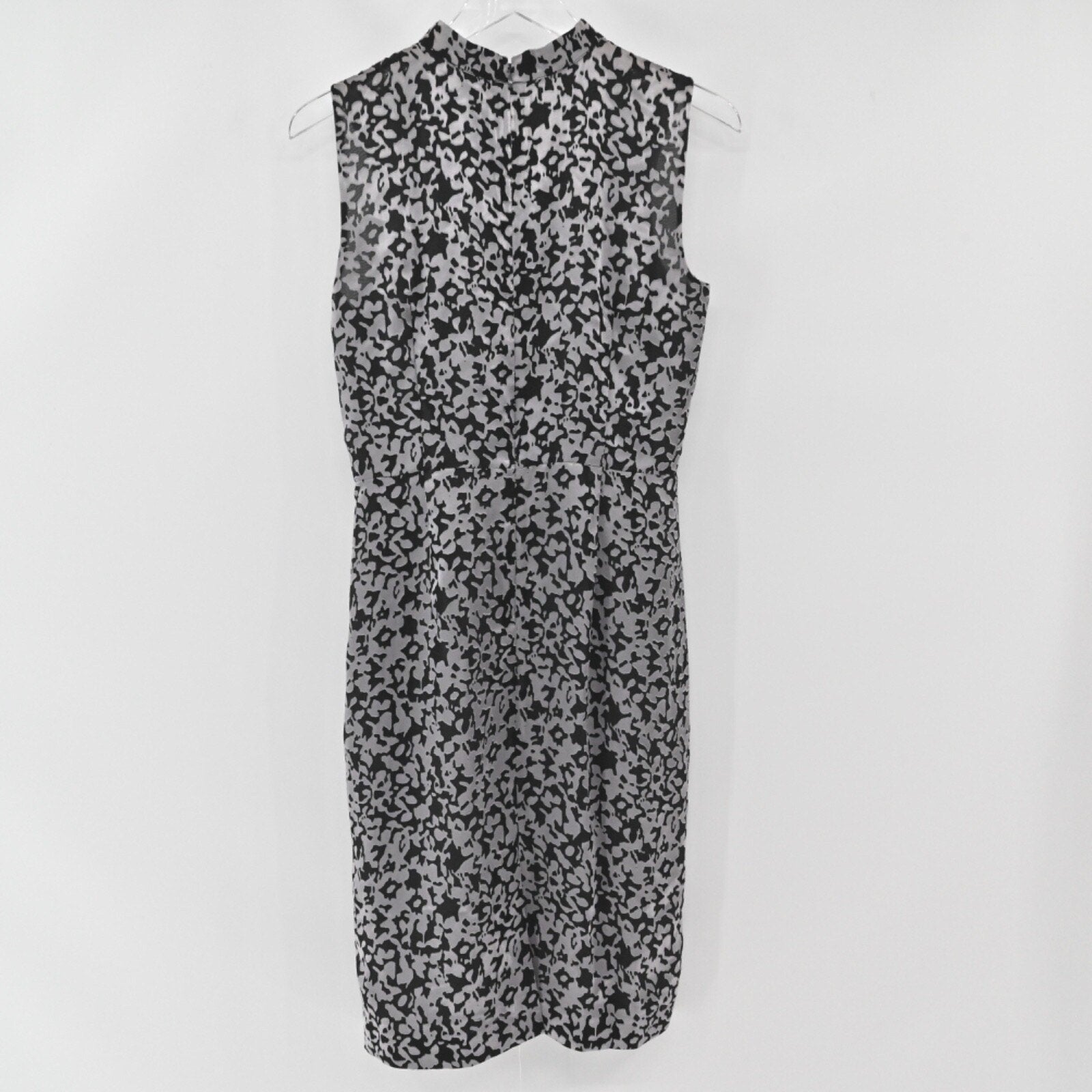 Brooks Brothers Floral Sheath Dress Sz 6 Black Gray Sleeveless Mock Neck Burnout