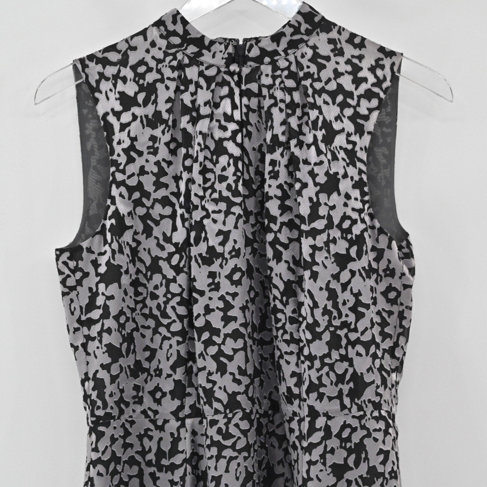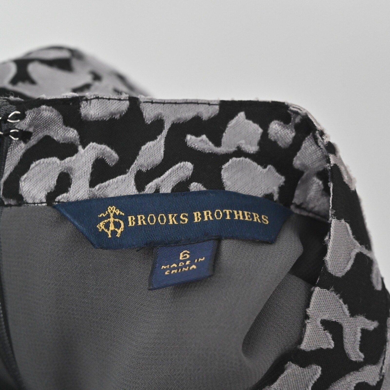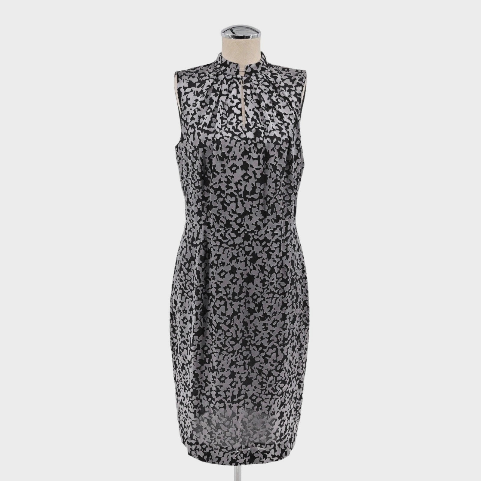 Brooks Brothers Floral Sheath Dress Sz 6 Black Gray Sleeveless Mock Neck Burnout