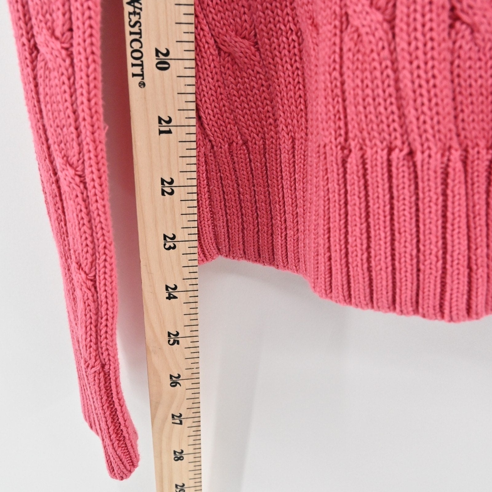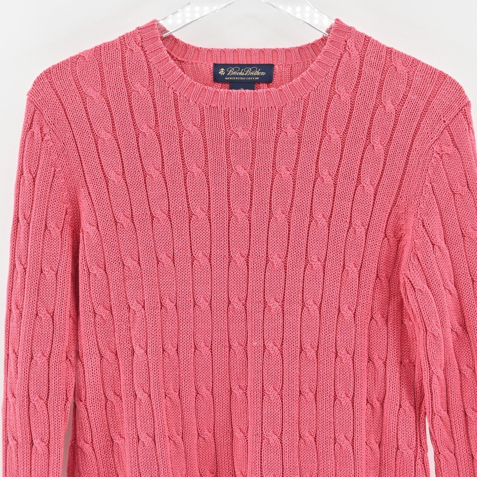 Brooks Brothers Womens Sweater Size M Pink Cable Knit Crewneck Pullover Classic