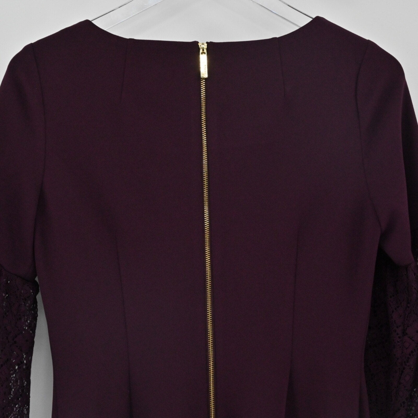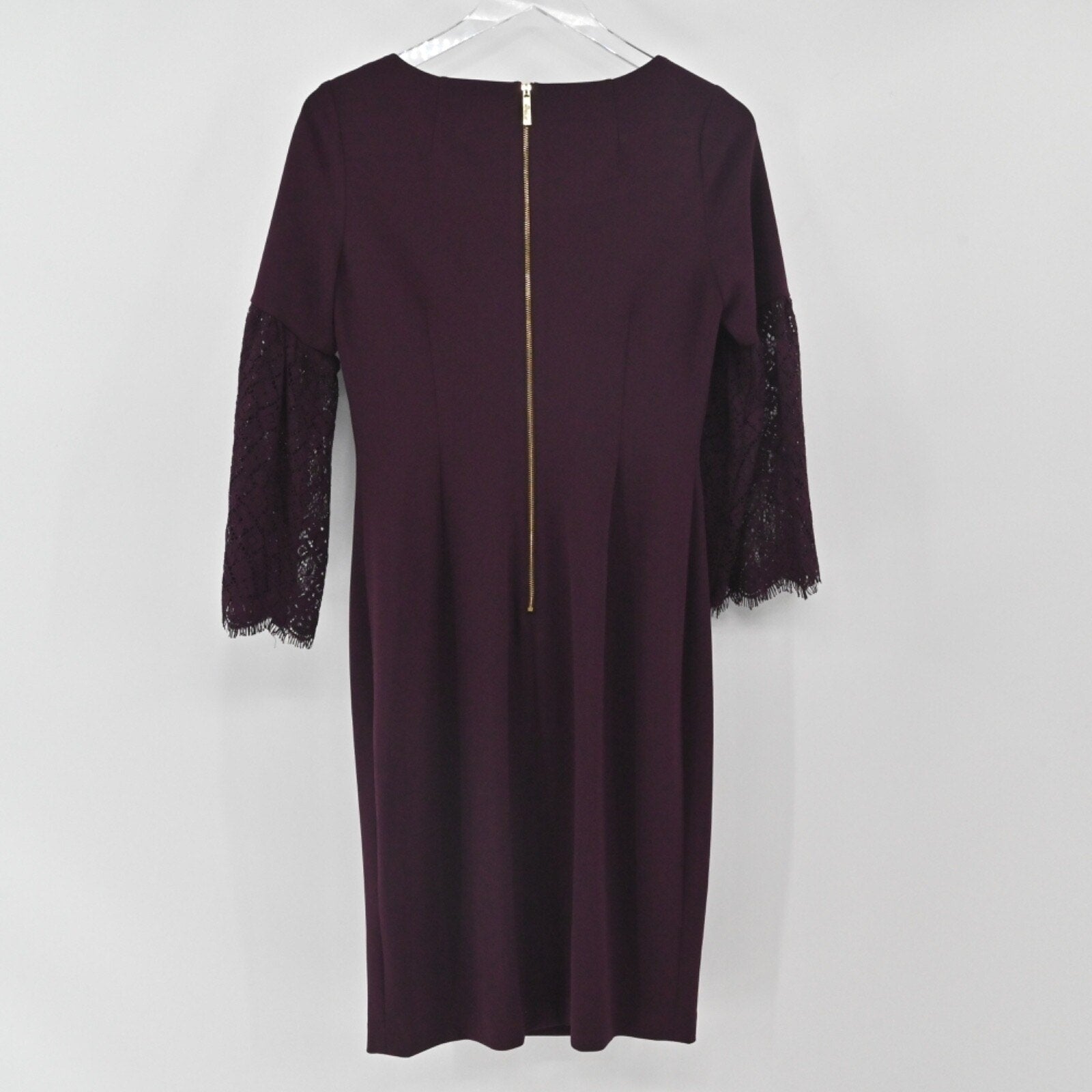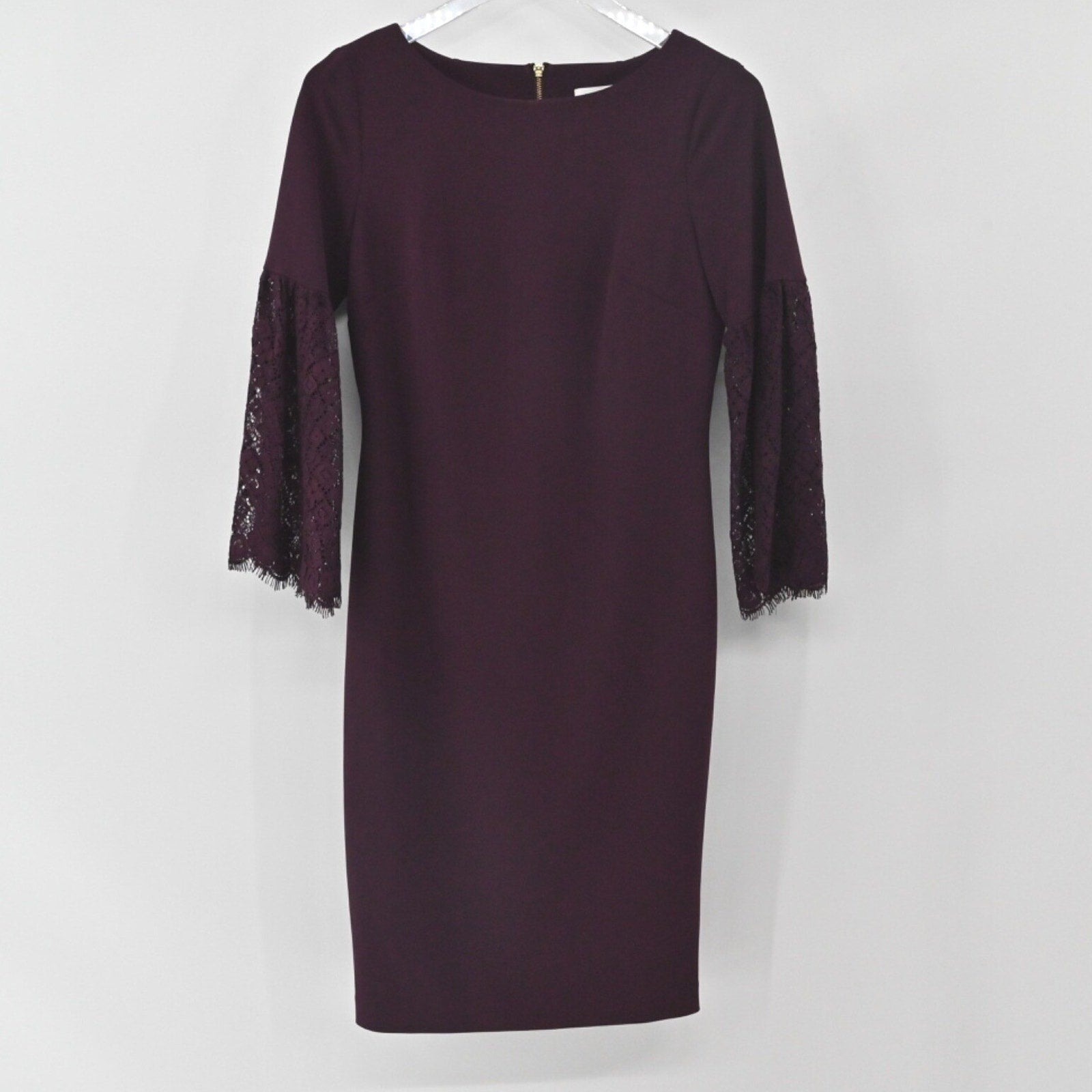 Calvin Klein Burgundy Sheath Dress Size 4 Lace Bell Sleeve Sheath Moody Romantic