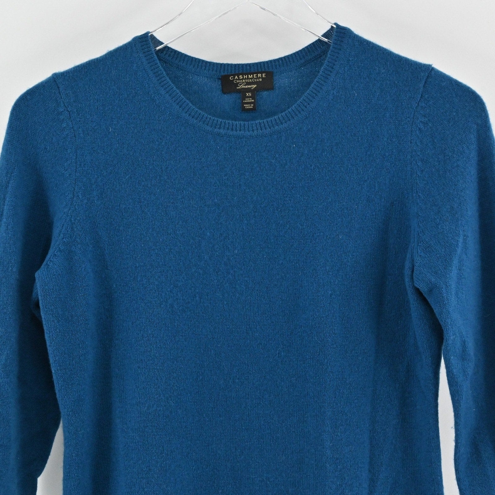 Charter Club Womens Cashmere Sweater Sz XS Teal Blue Crew Neck Cozy Quiet Luxury
