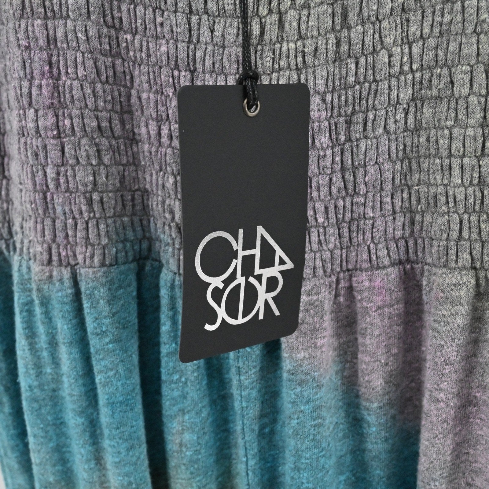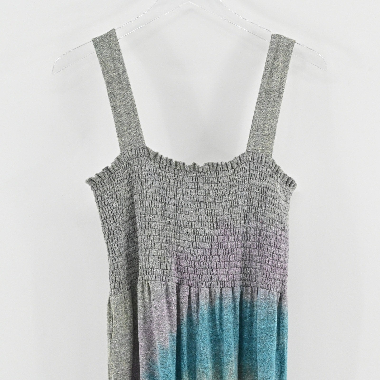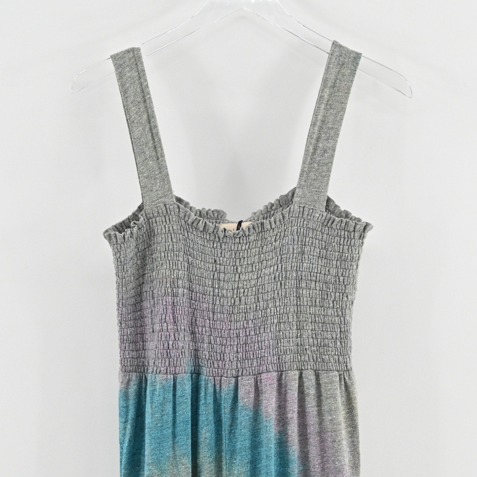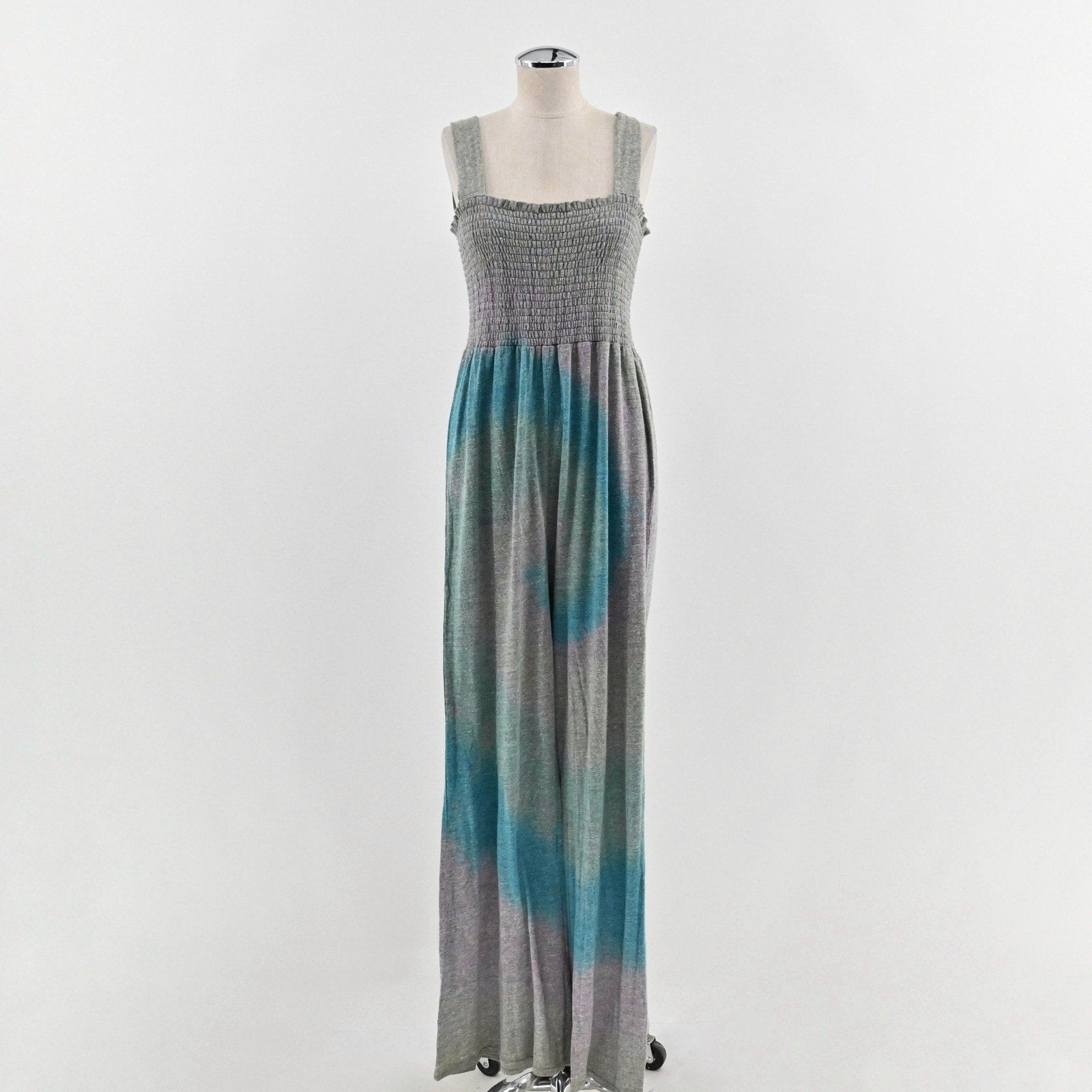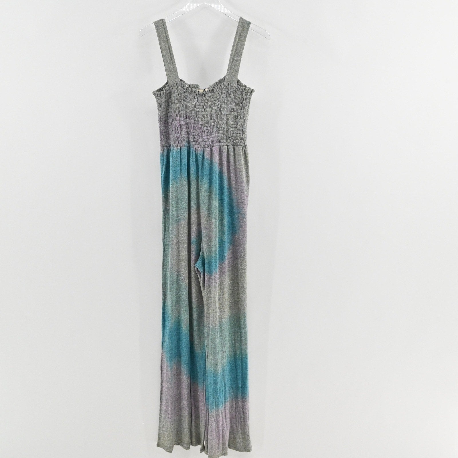 CHASER Womens Smocked Tie Dye Jumpsuit Size L Gray Blue Wide Leg Comfy Hippie