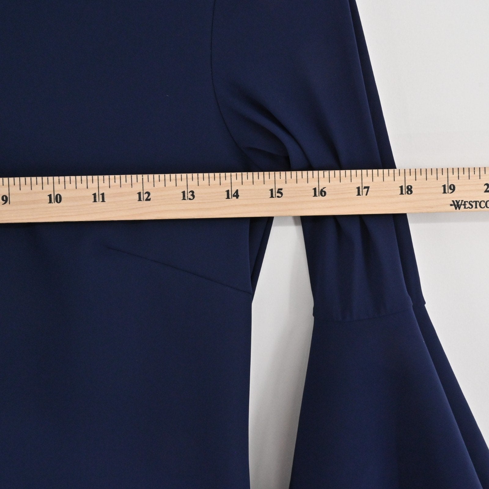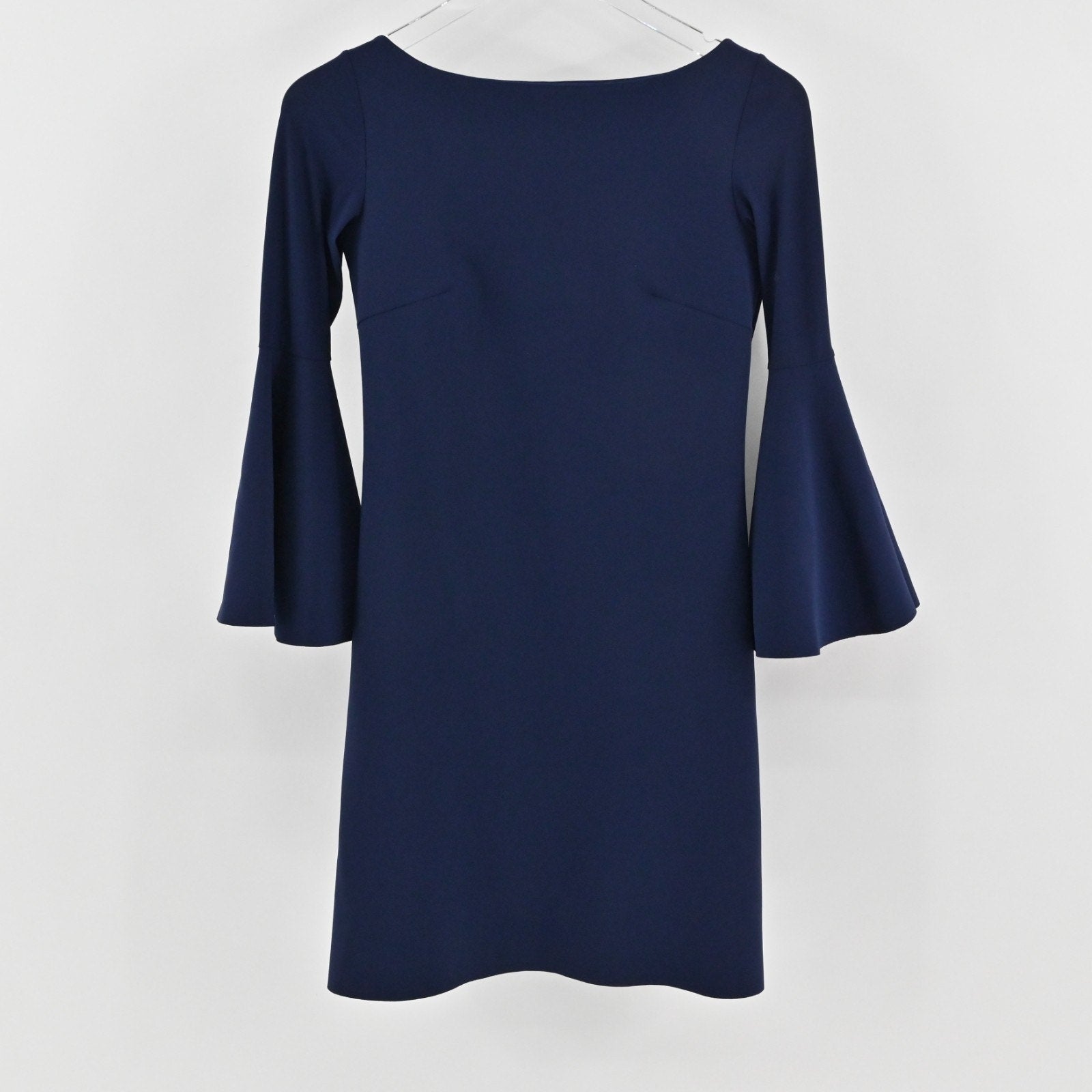 Chiara Boni Natalia Navy Blue Dress Size 38 Bell Sleeve Bateau Neck Stretch