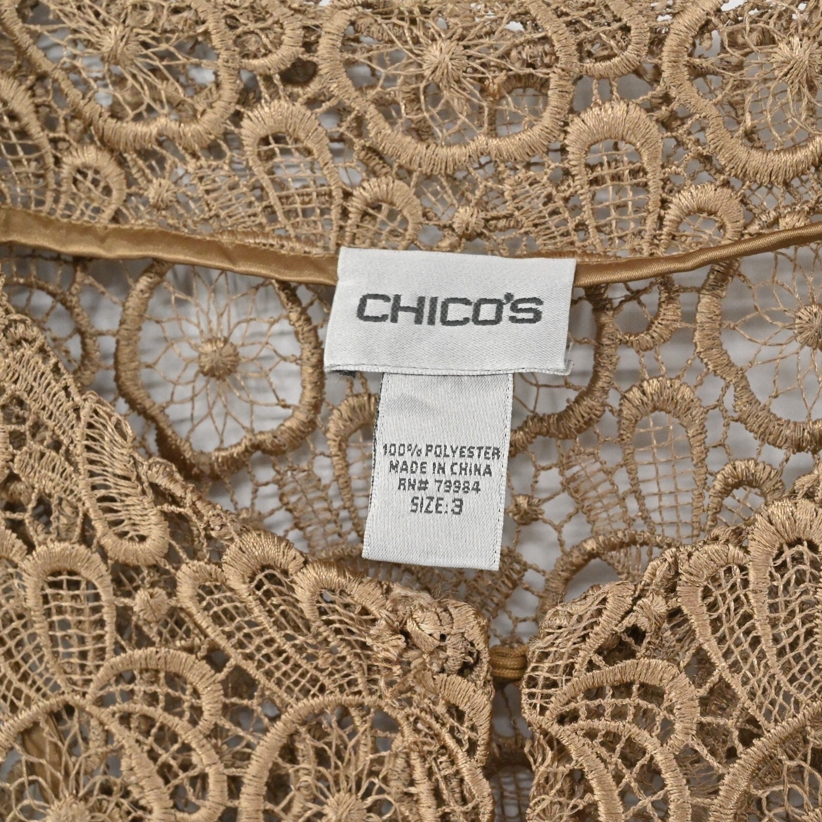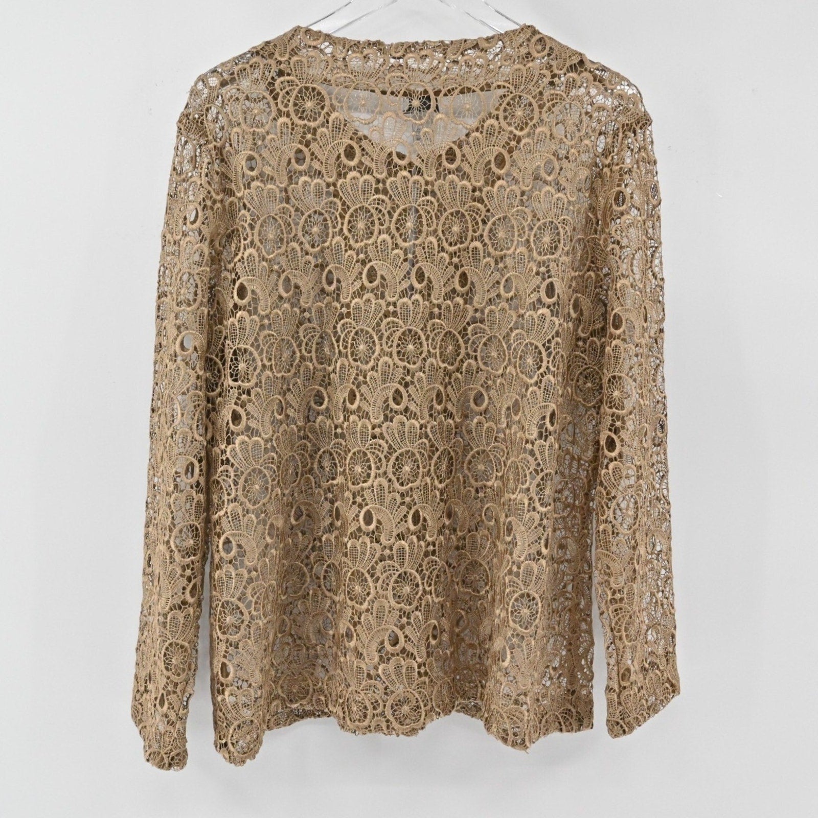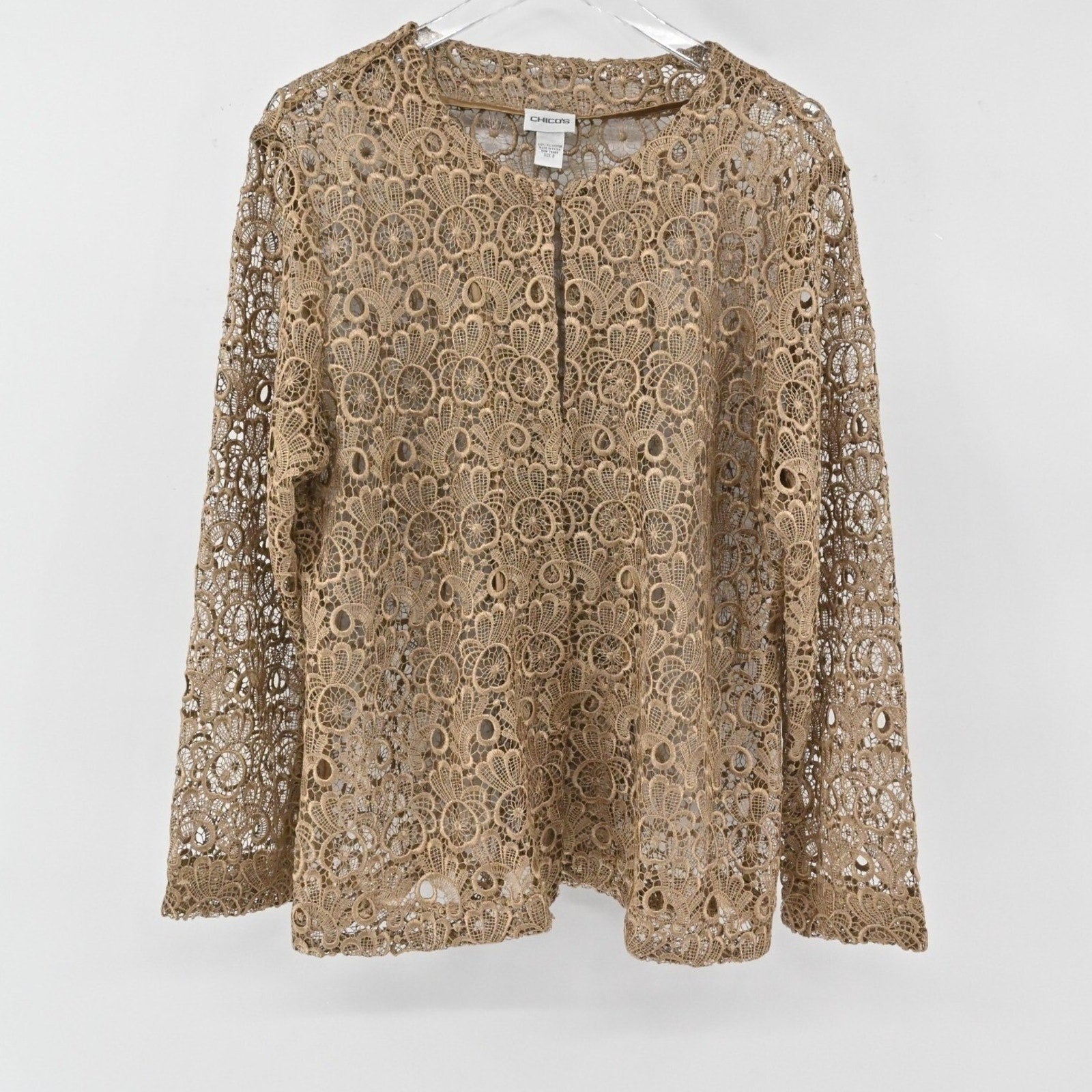 CHICHOS Womens Crochet Jacket Size 3 / XL Tan Lace Floral Blazer Dainty Feminine