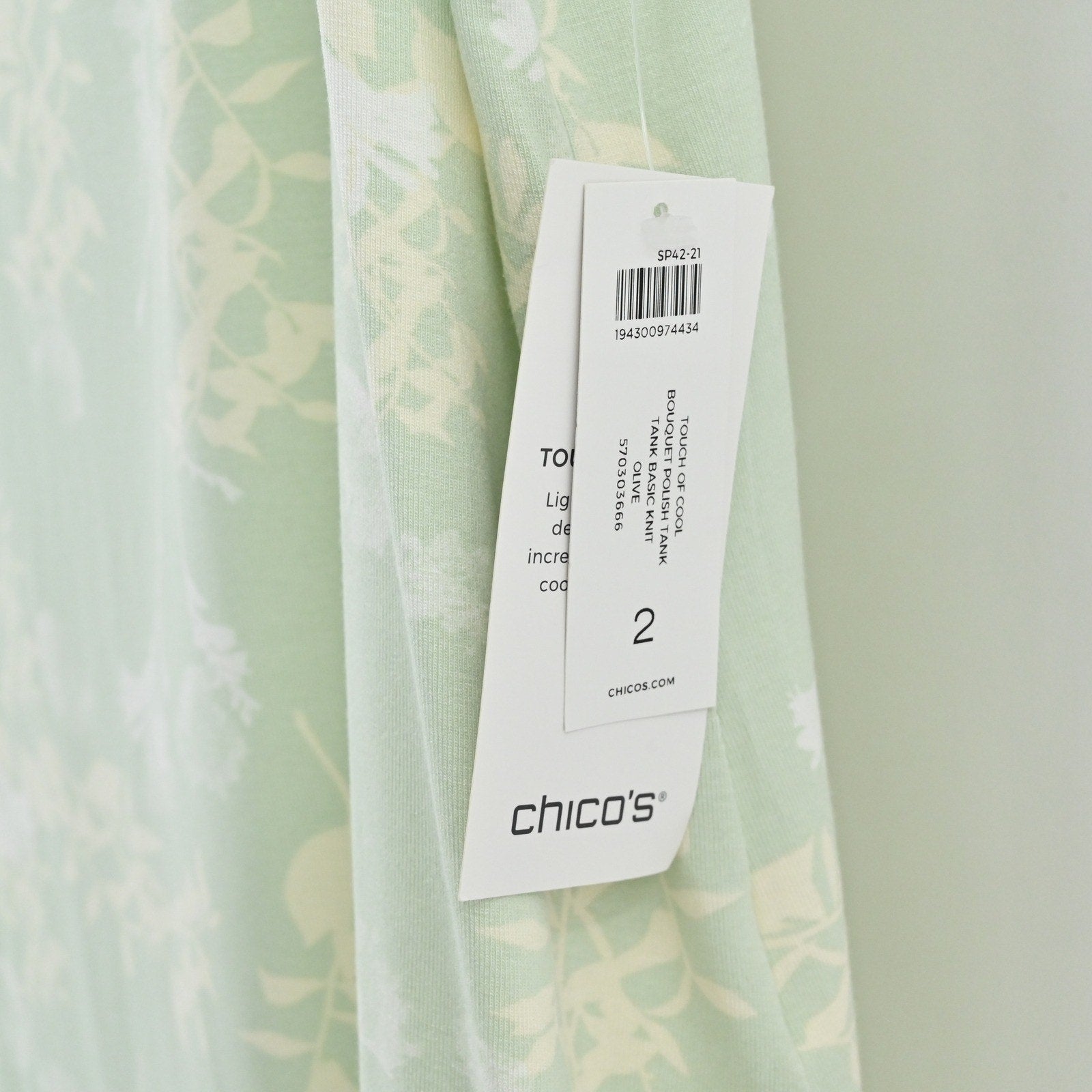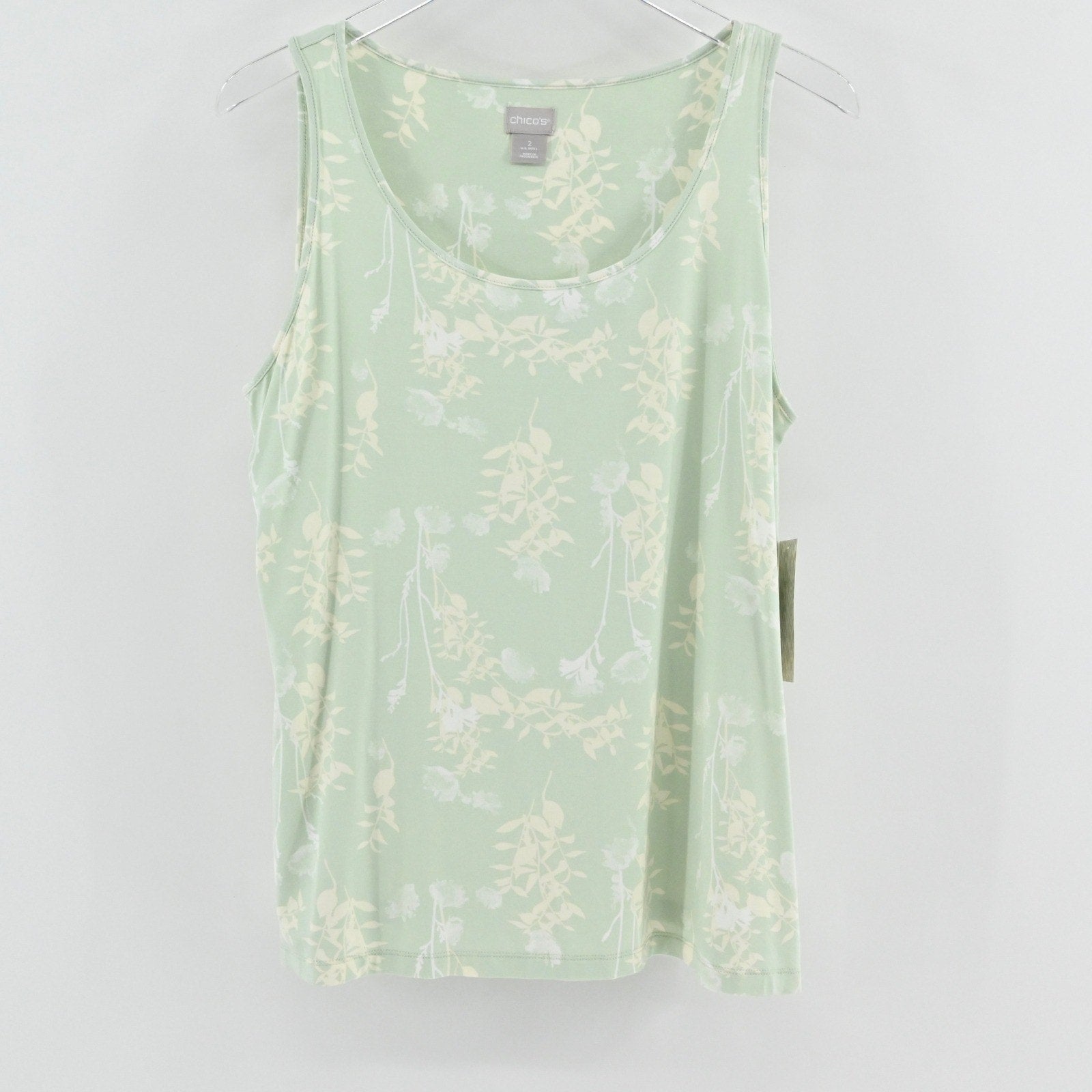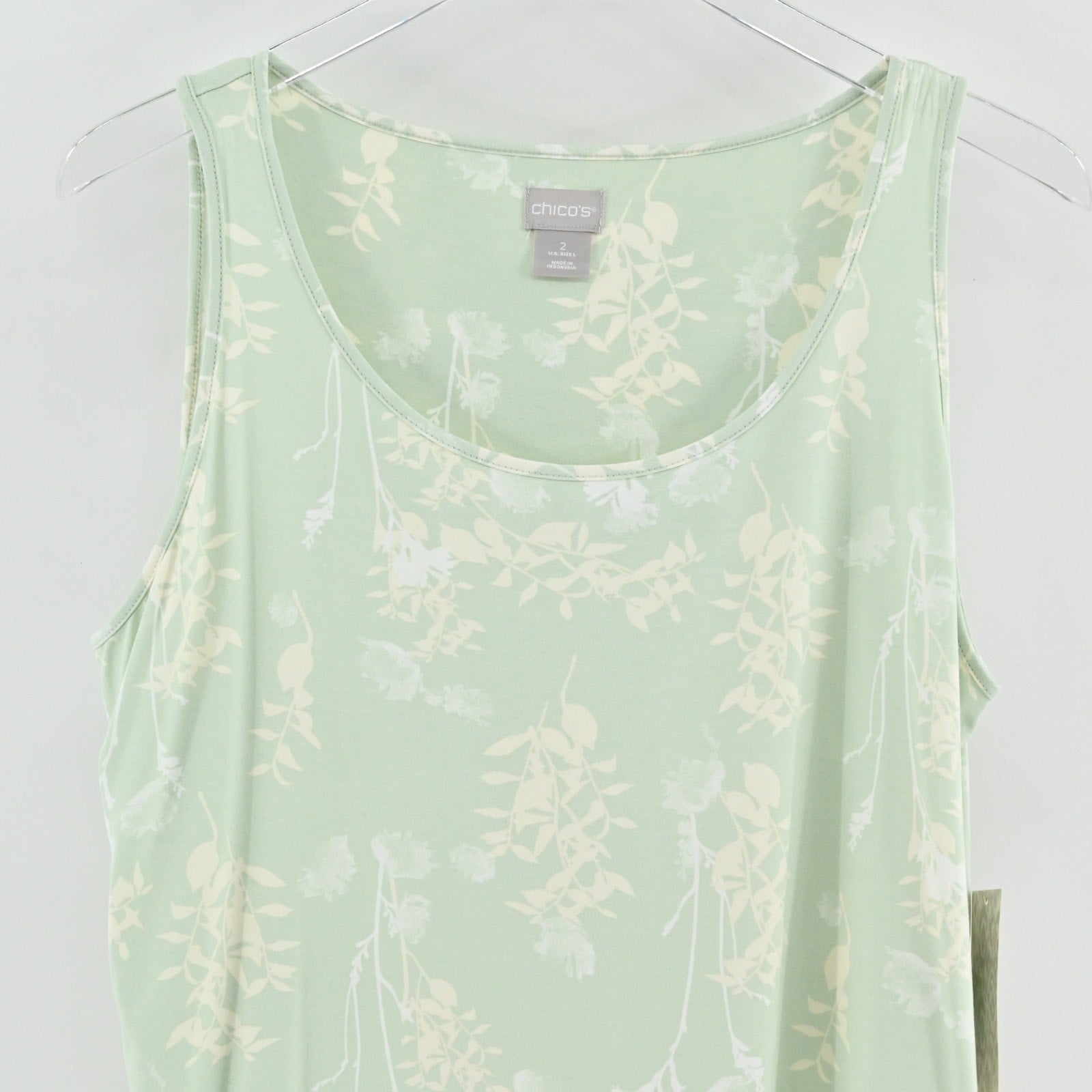 Chicos Bouquet Polish Knit Tank Top Size L Floral Sleeveless Green