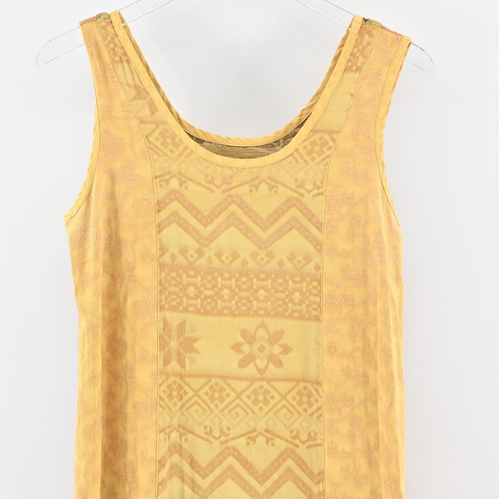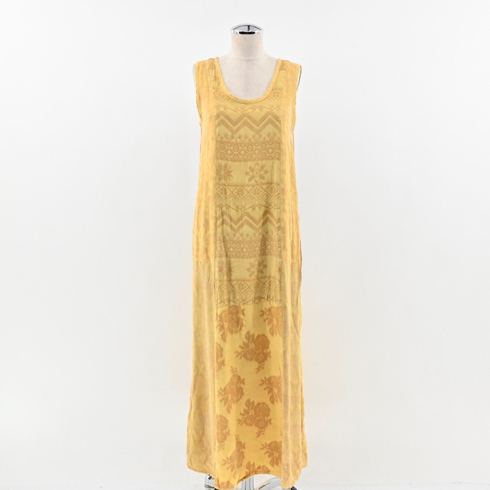 CITRON Bohemian Dress Size M Mixed Print Jacquard Sleeveless Yellow Maxi Shift
