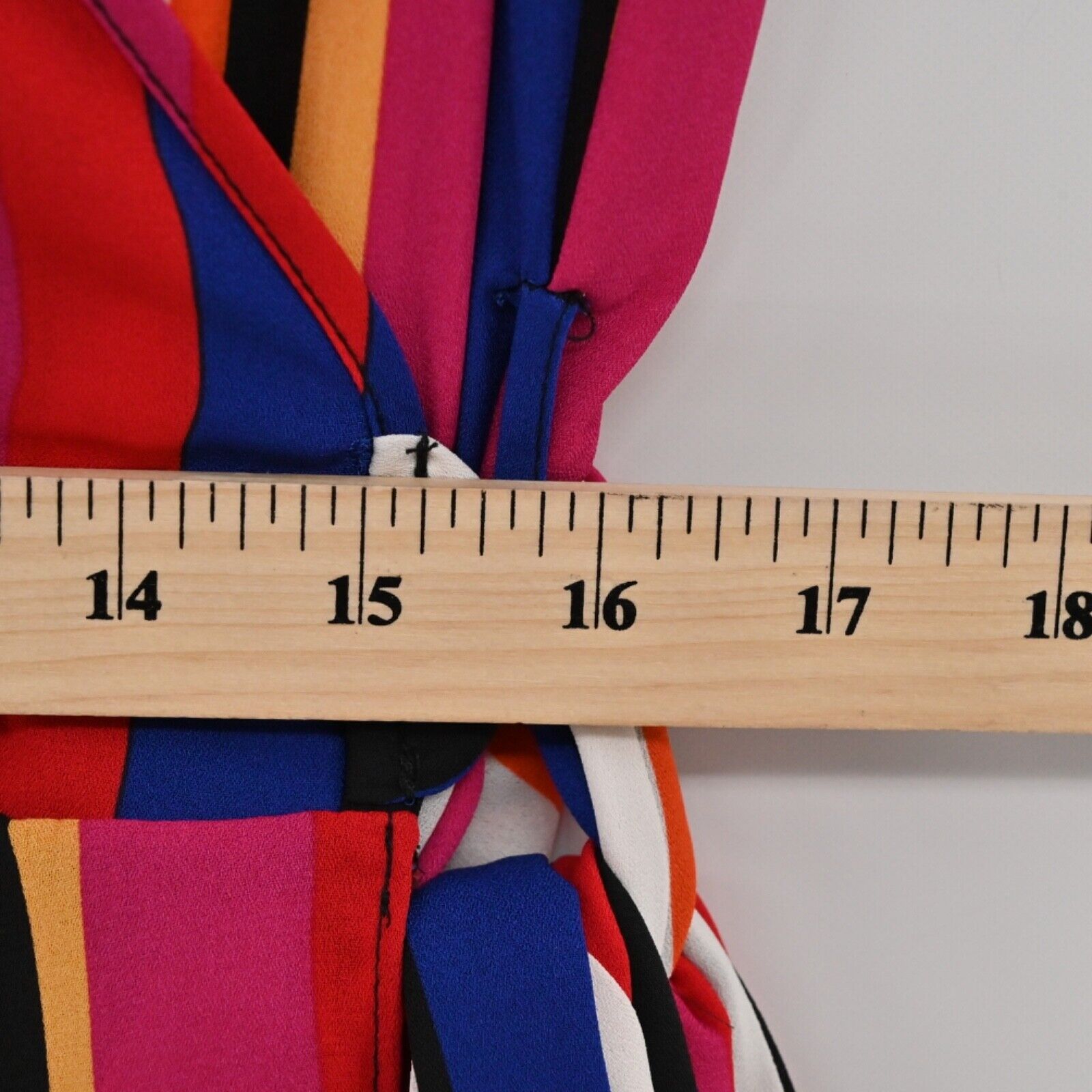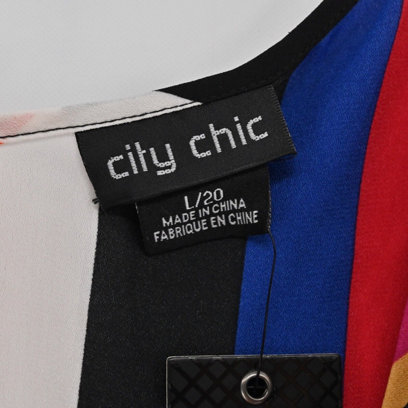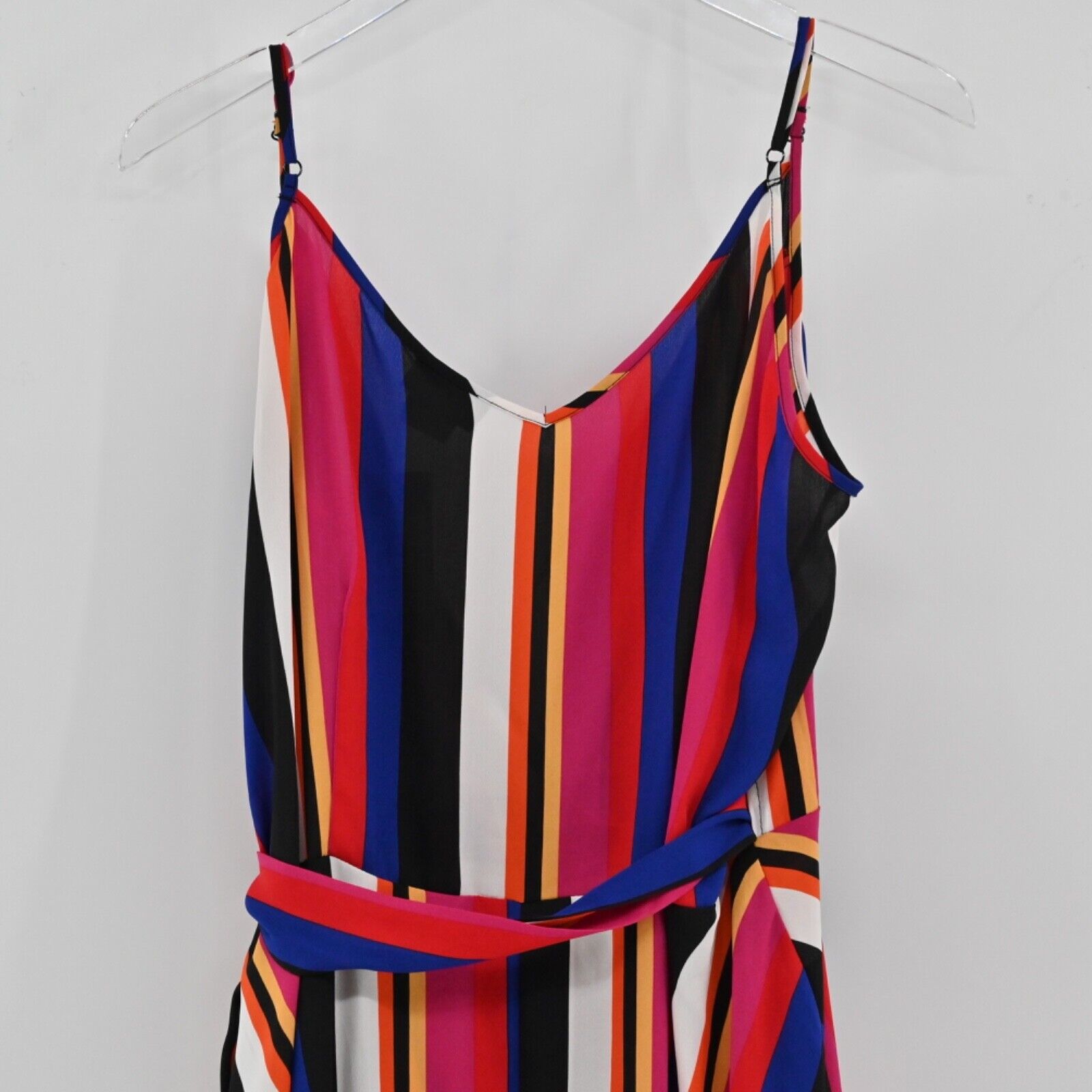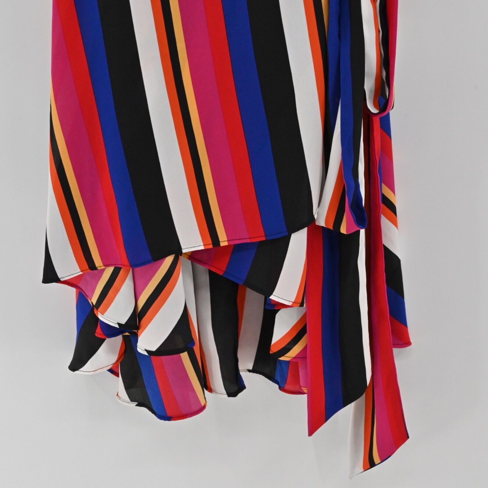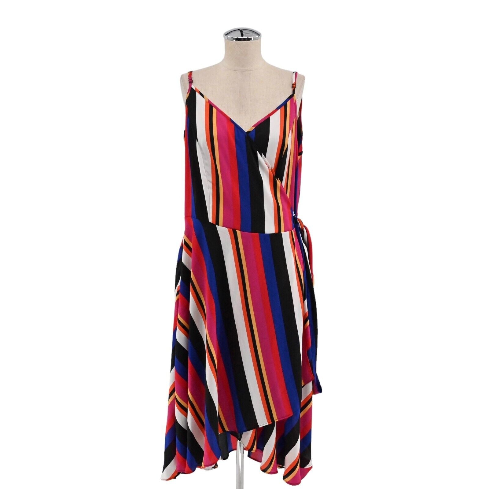 CITY CHIC Dress Women’s Size L/20 Fuchsia Multicolor Stripe V-neck Adjustable Spaghetti Straps Hi-Low Hem Embracing Wrap Tie Closure NWT Retro Beach Vacation