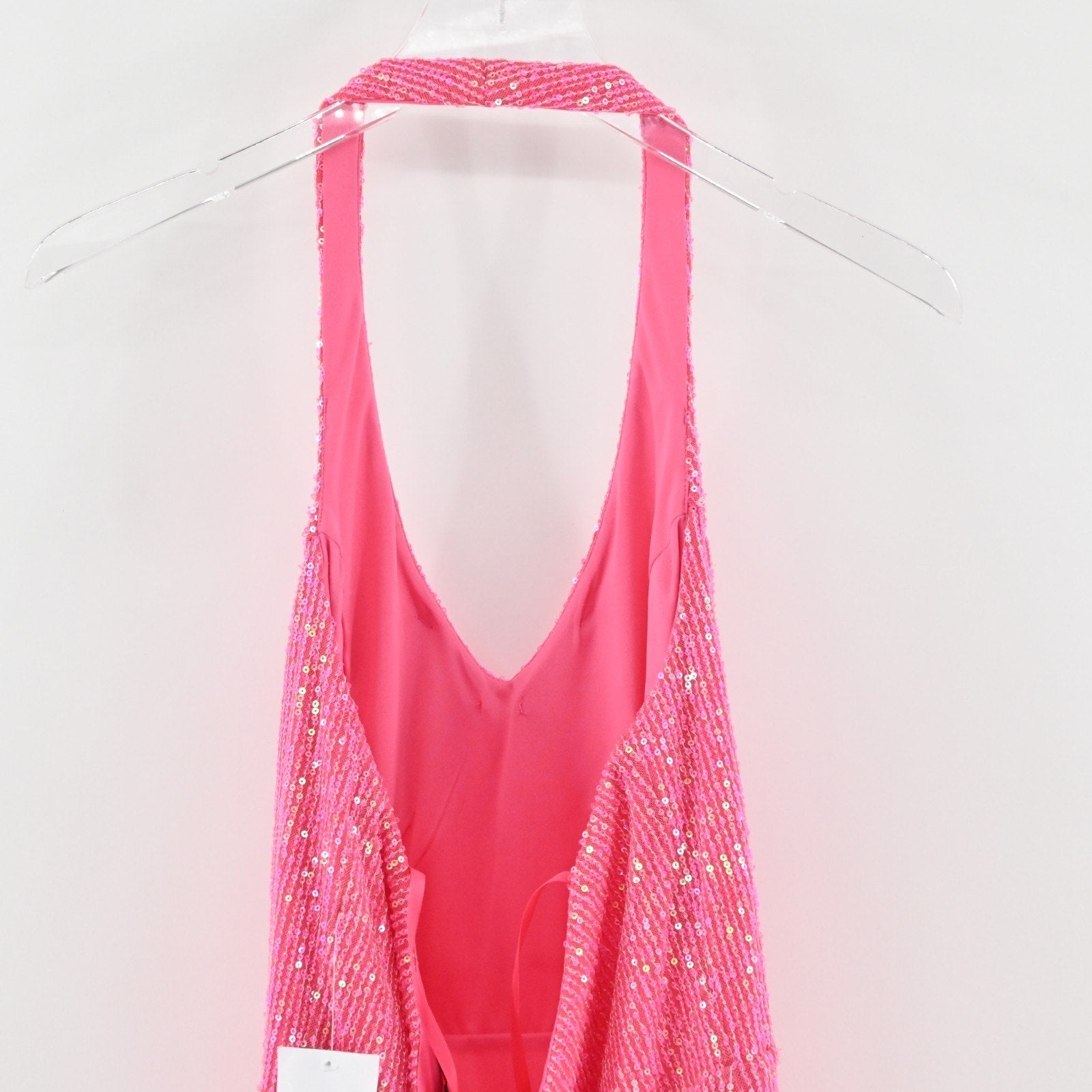 City Vibe Pink Sequin Dress Size 11 Sleeveless VNeck Mini Halter Sexy Barbie NEW